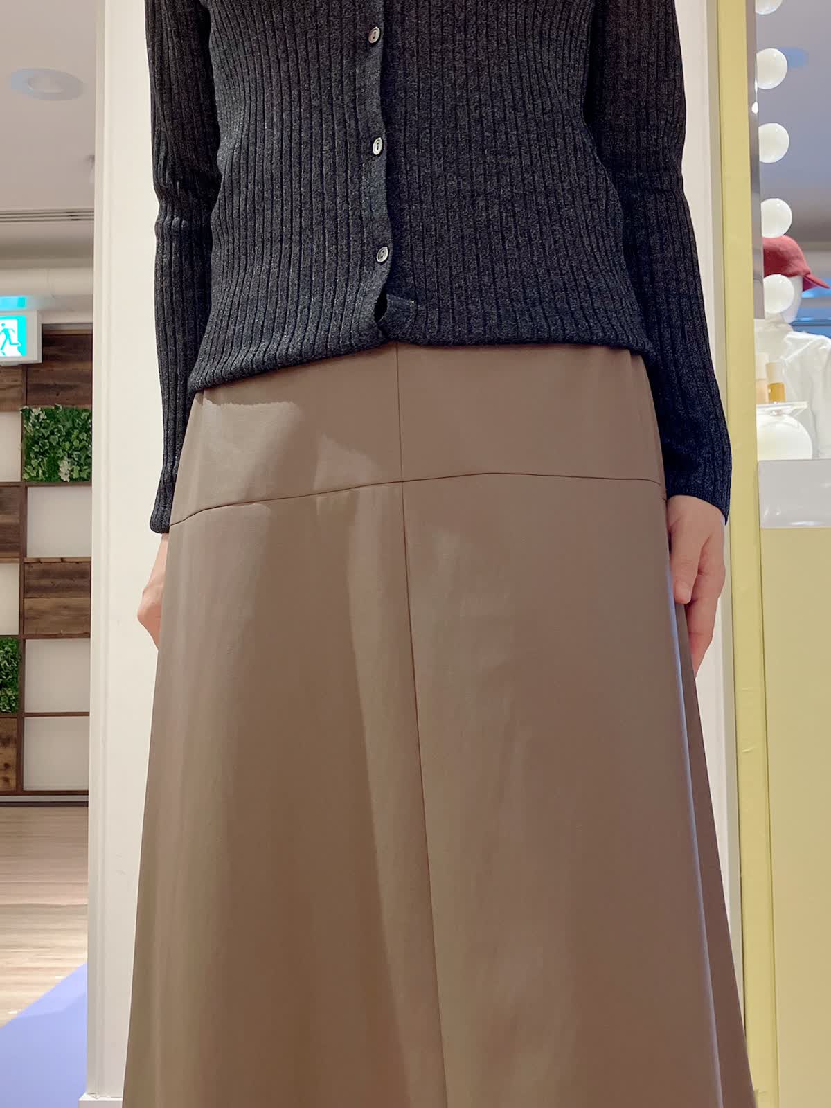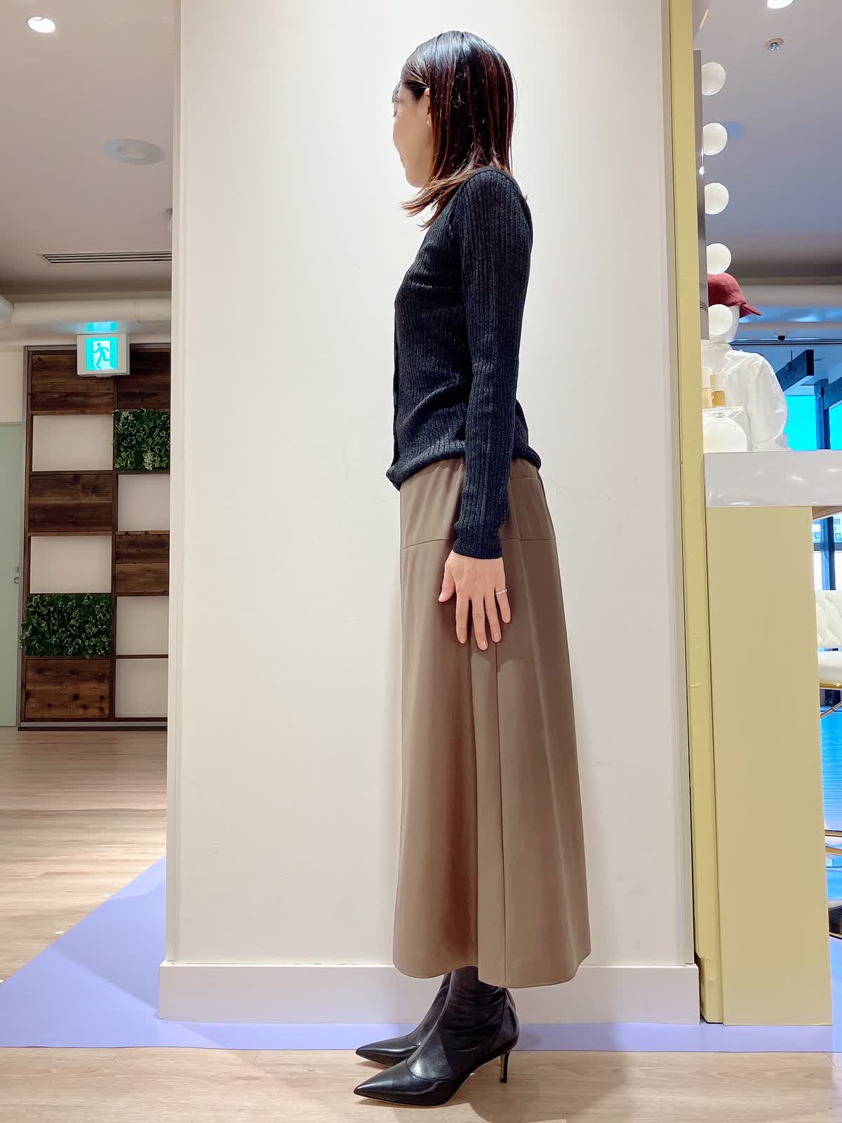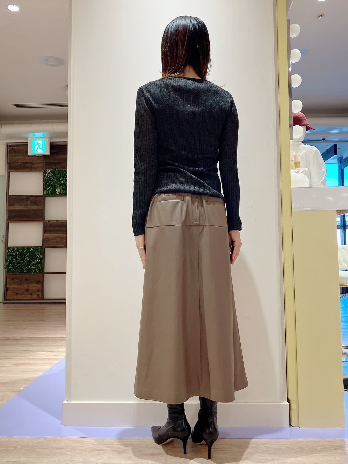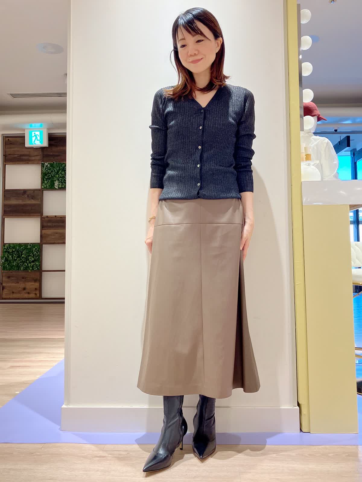 【着用サイズ】カーディガン:9号 スカート:7号 【着用カラー】カーディガン:ブラック スカート:ブラウン コーディネートのテーマは秋の通勤スタイリングです。 リブのカーディガンをプルオーバー風に着こなして、程よくラメ感があり、程よいVネックが女性らしい1枚です。フェイクレザーのフレアスカートを合わせて一気に秋らしさ投入。大きめのバッグと合わせて通勤におすすめのコーディネートです。