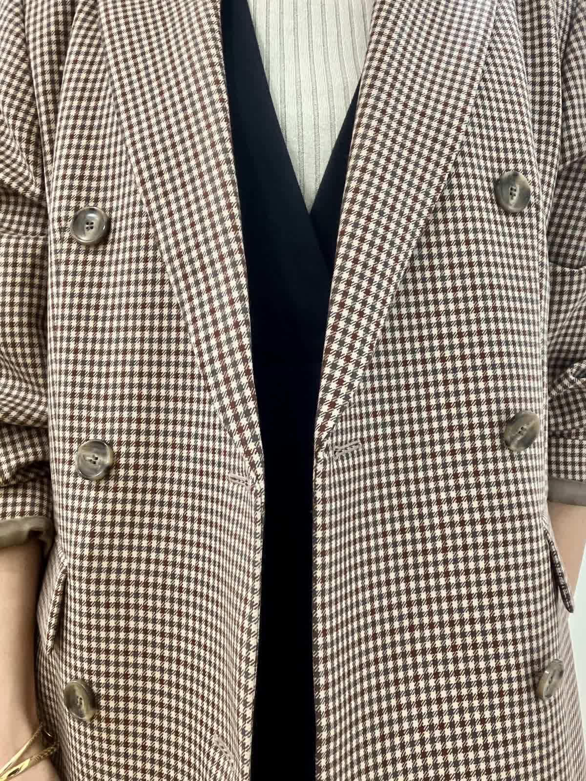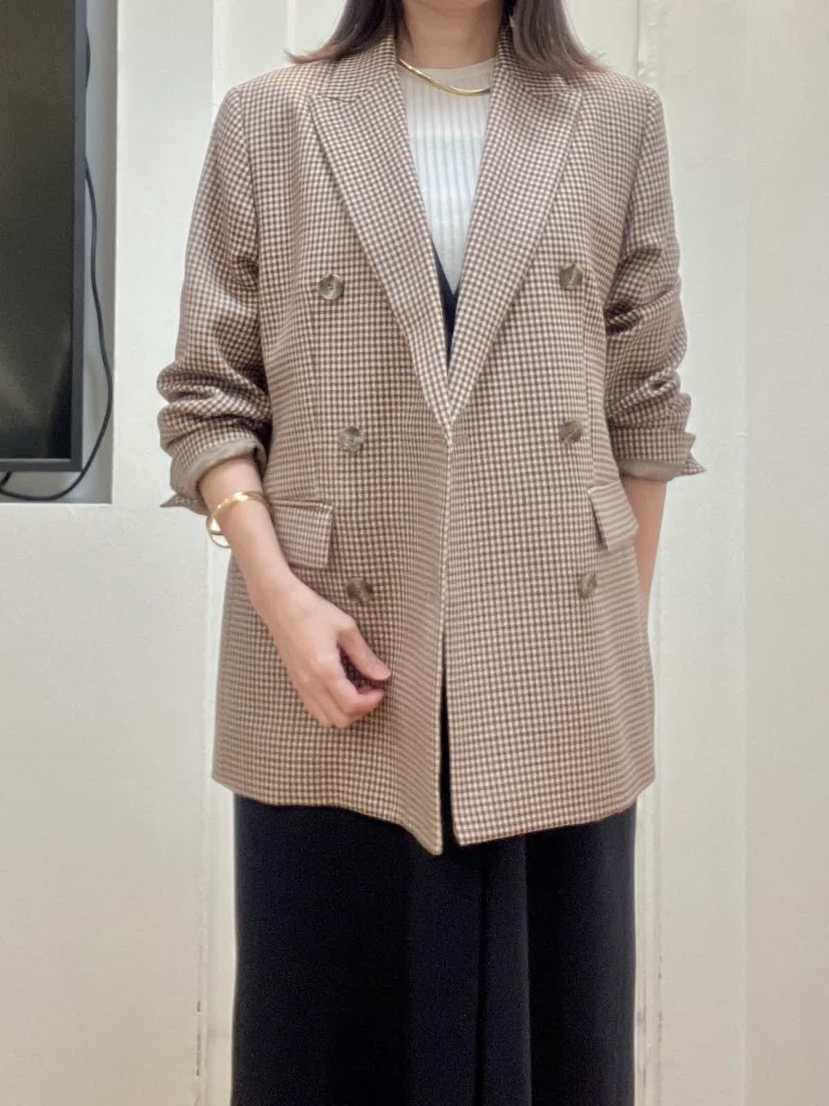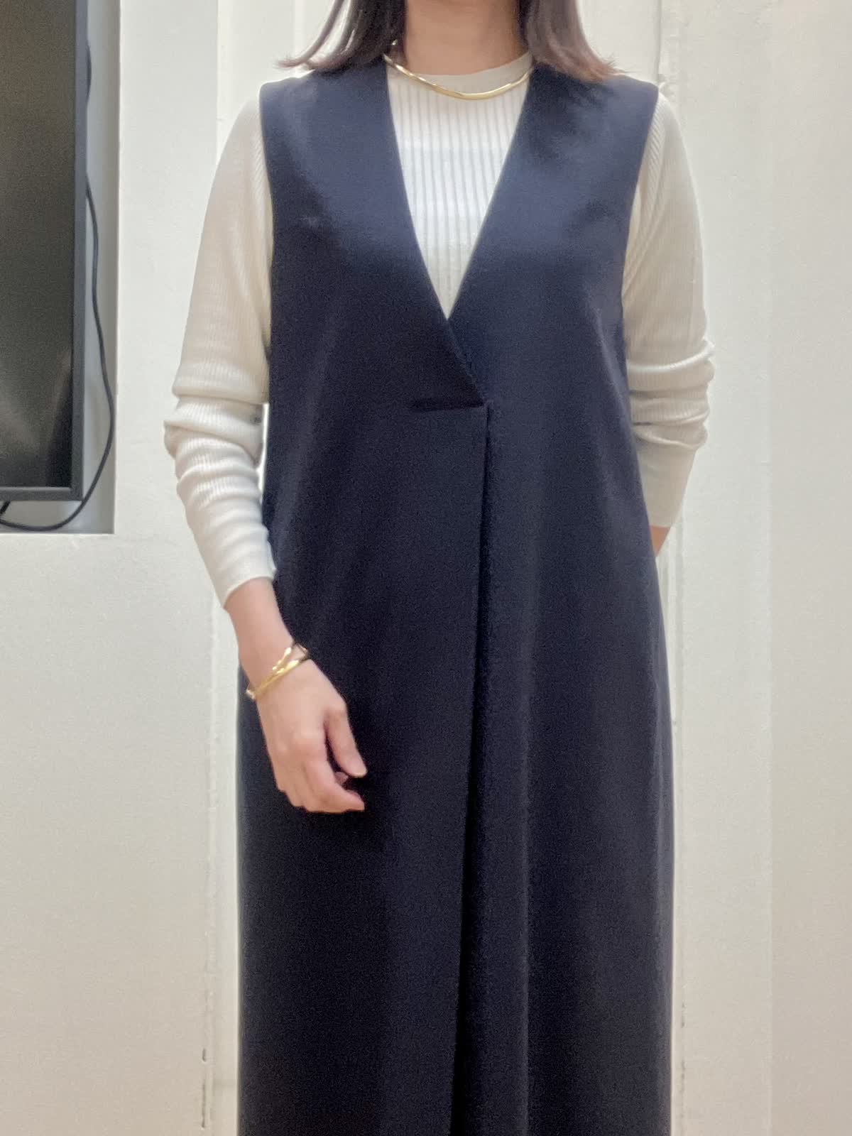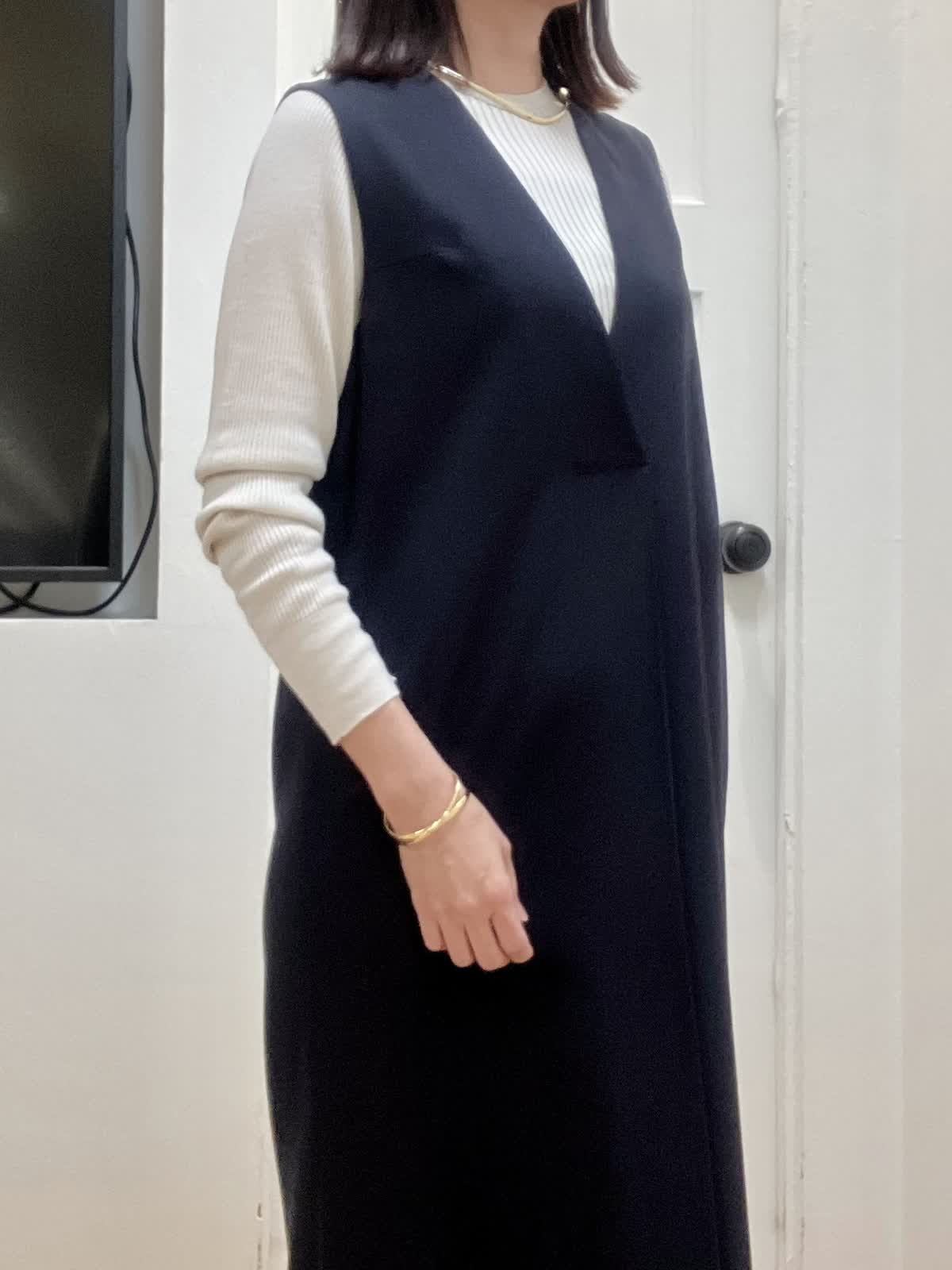 【着用サイズ】全て9号 【着用カラー】ジャケット: 柄小 ニット:グレーベージュ ワンピース:ネイビー 《三尋木さんコラボ》ジャケットはオーバーサイズなシルエットが今っぽく、とにかく軽くて着心地抜群です! ジャンパースカートは女性らしい深いVネックとゆるやかなコクーンシルエット。 チェックジャケットを羽織るだけで旬コーデが完成します。