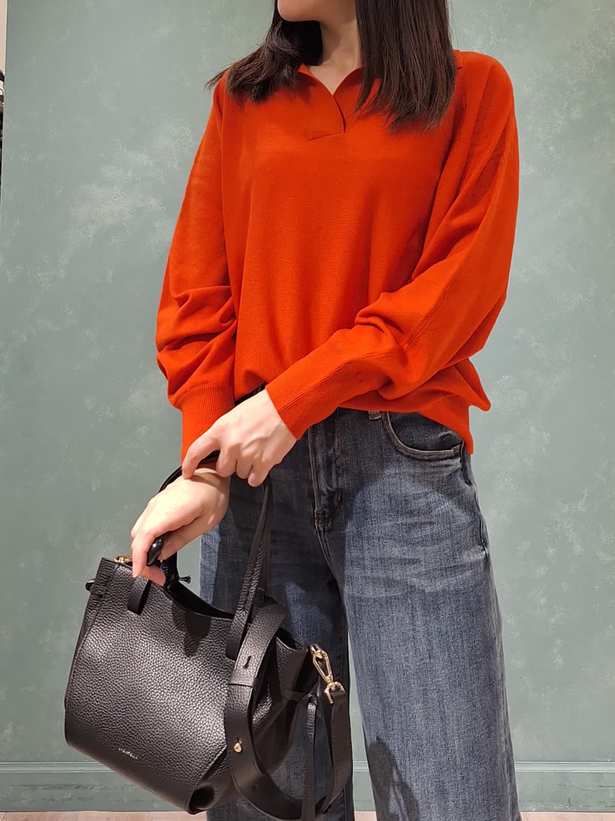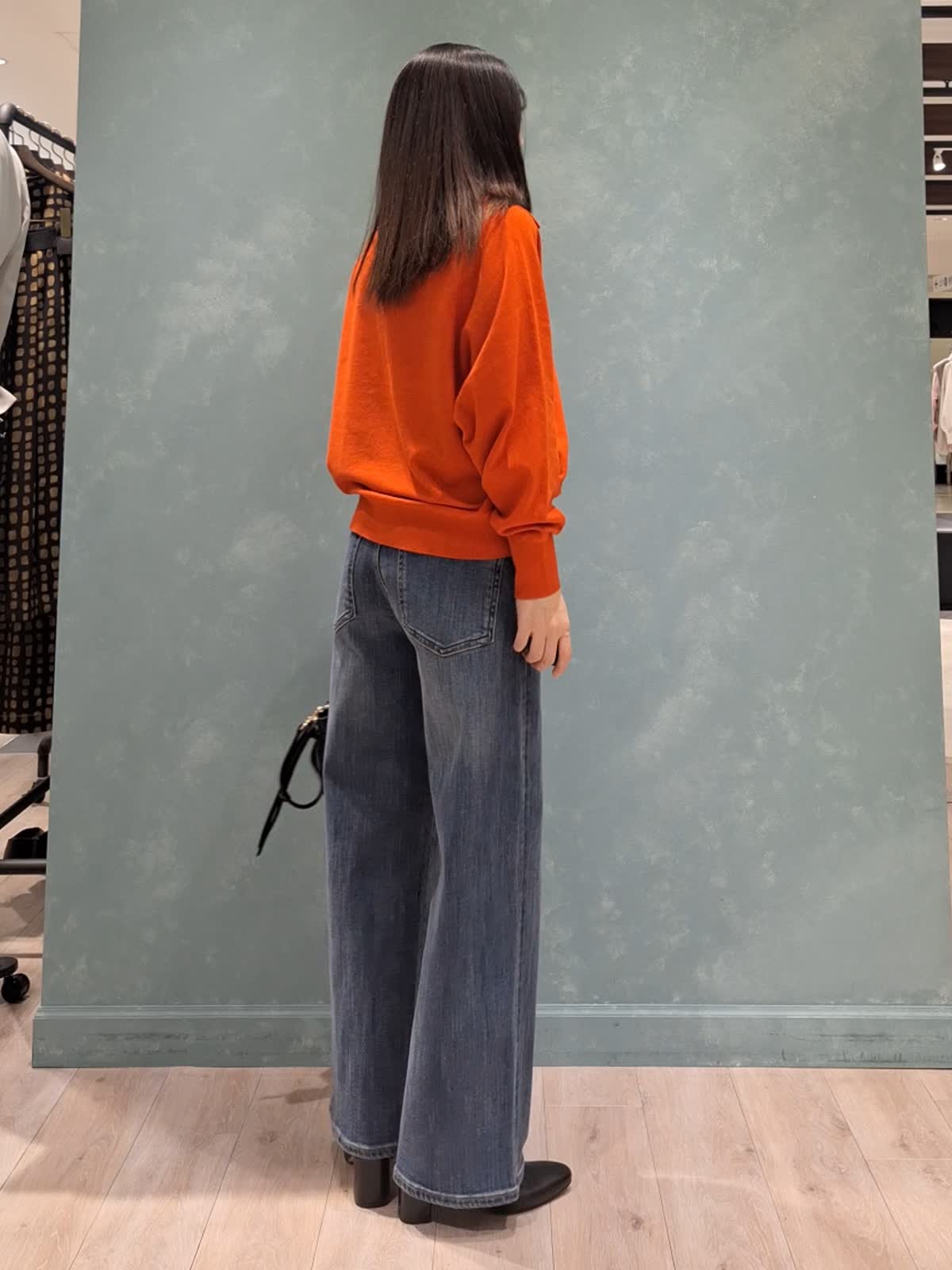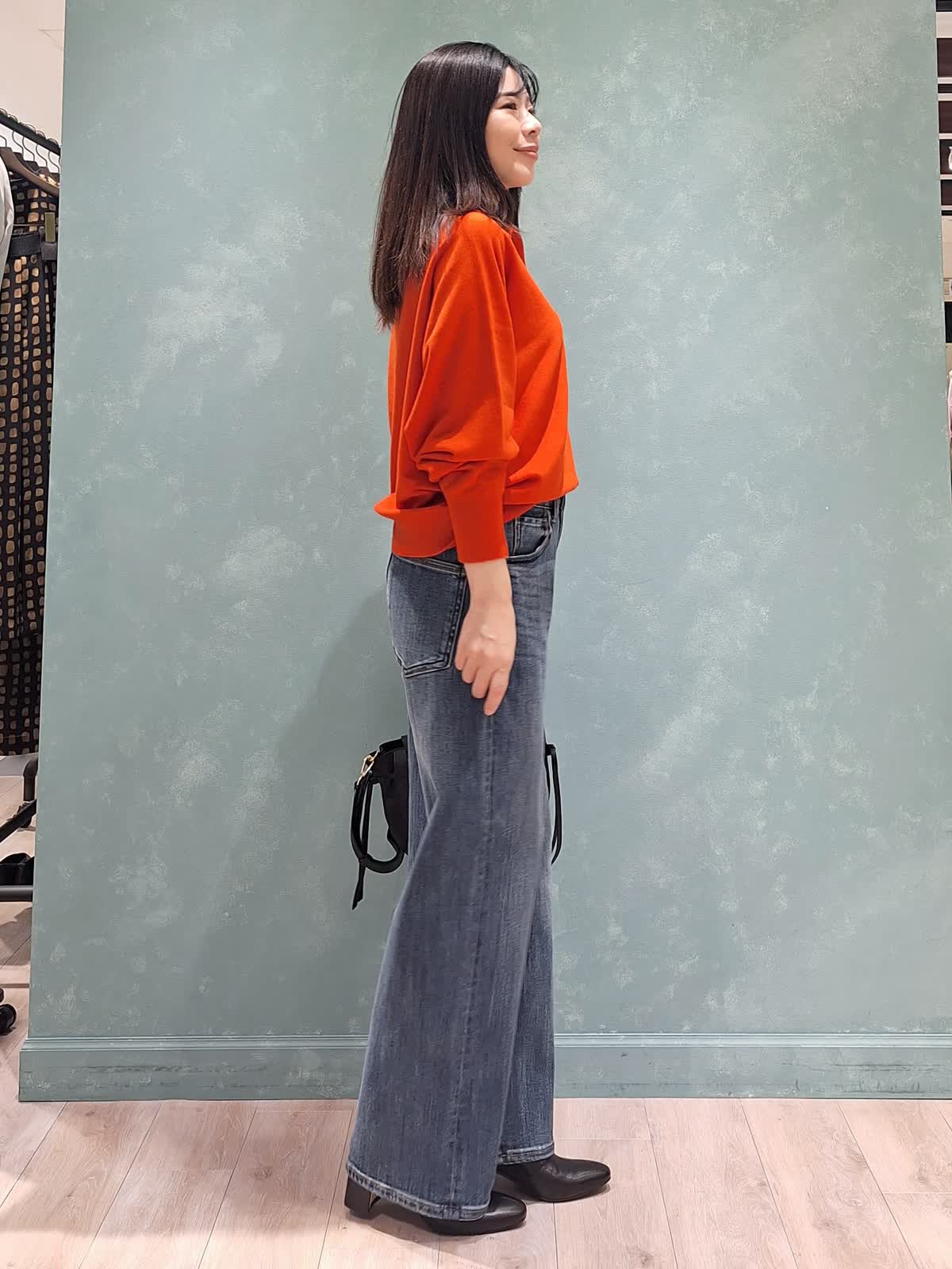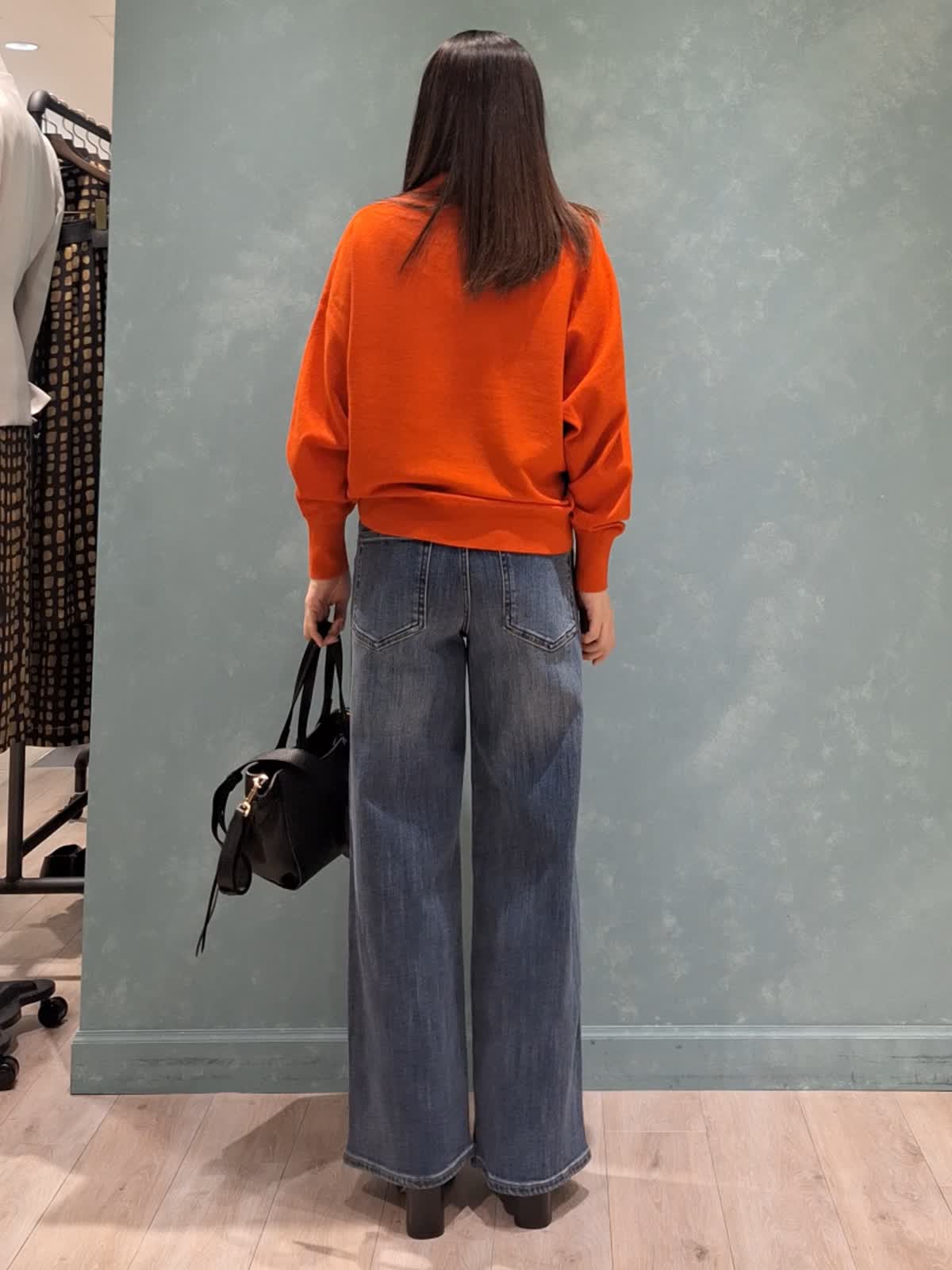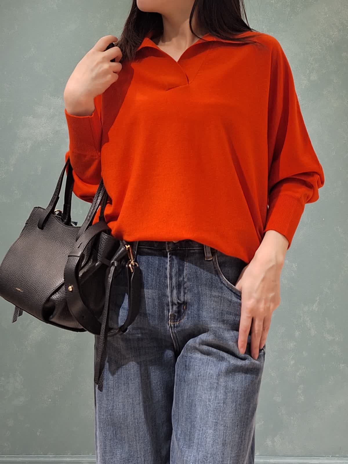 【着用サイズ、カラー】ニット:9号、シュイロ パンツ:7号、インディゴ 《休日カジュアルスタイル》ポロ襟ニットは、ドルマンスリーブでアームはゆったり、着丈は短すぎず、長すぎずの合わせやすい着丈です。素材はトップレベルのオーストラリアウールで、柔らかくて優しい肌触りで着心地◎ワイドデニムパンツは、腰回りスッキリ。着丈が長すぎないので小柄な方にお勧め!抜群のストレッチ性で動きやすいです。
