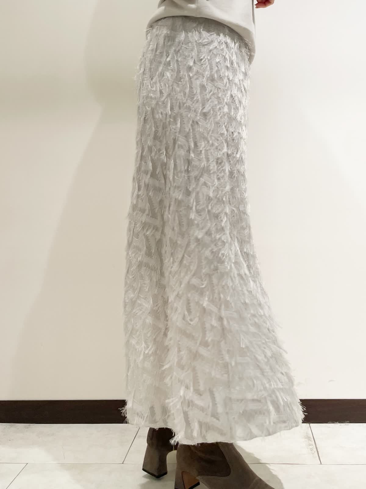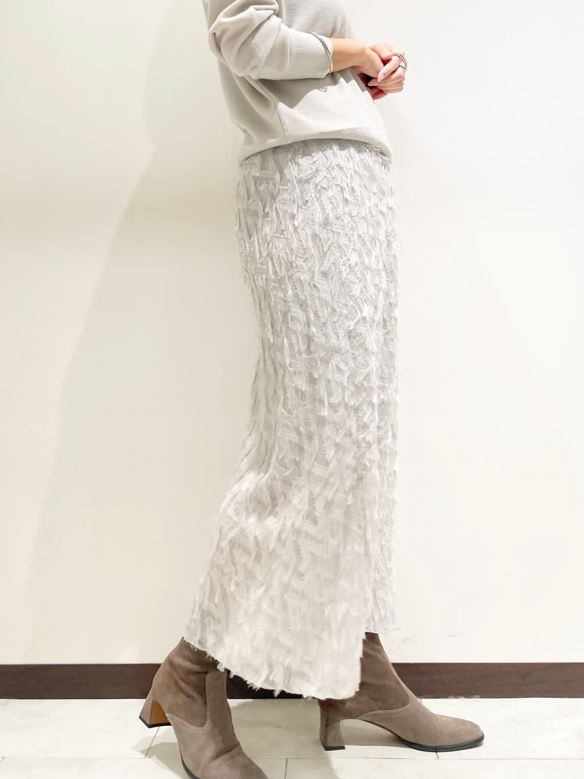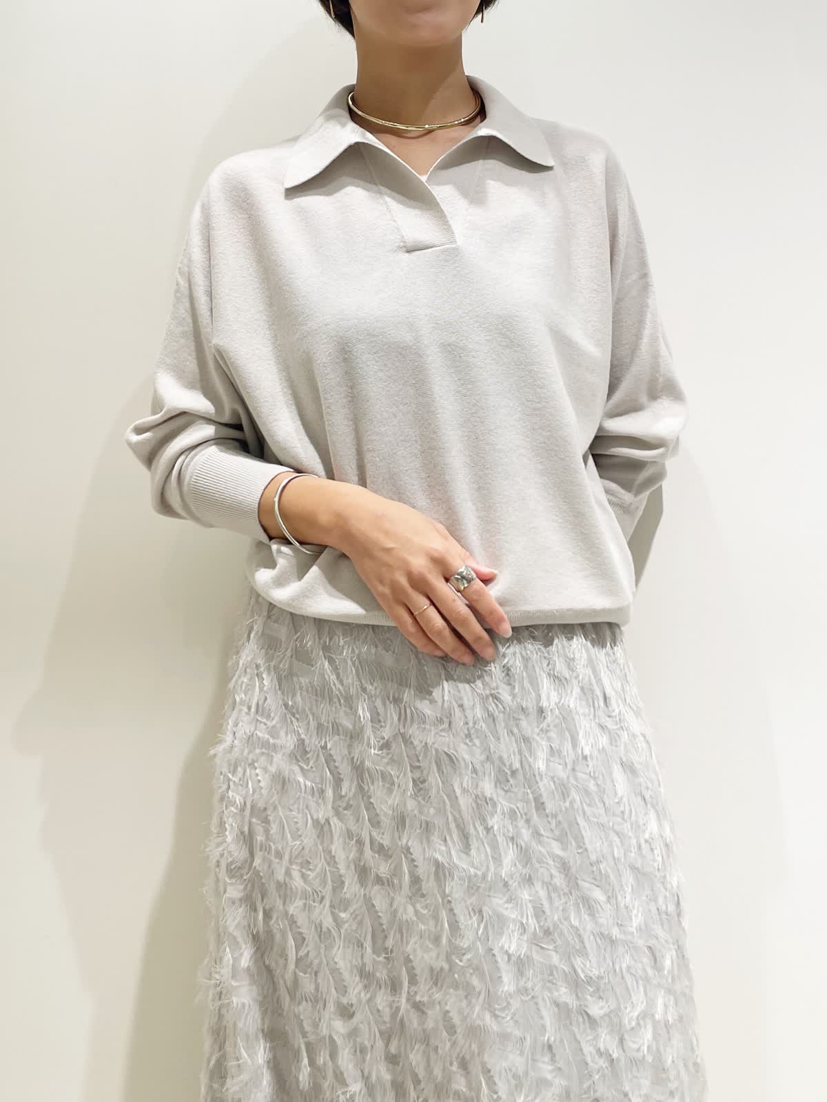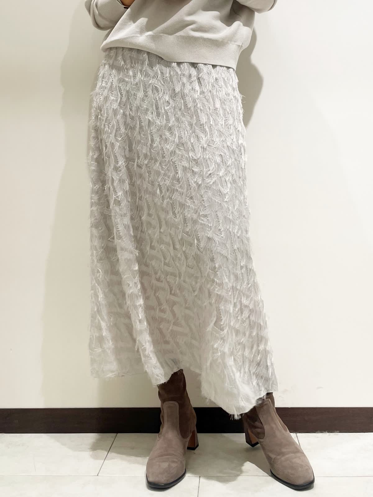 【着用サイズ】全て9号 【カラー】ニット:グレーベージュ スカート:グレー バック:グレーベージュ ネックレス:ゴールド 【コーディネートテーマ】 秋のニュアンスカラーコーデ ワントーンで上品なスタイリングに。 【サイズ感】 ニット:やや緩め チクチク感が無くとても着心地が◎ スカート:標準ウエストオールゴム フリンジとシアー素材が存在感あります。 163p 普段9号サイズ 骨格ウェーブで上半身に比べてヒップがやや大きい