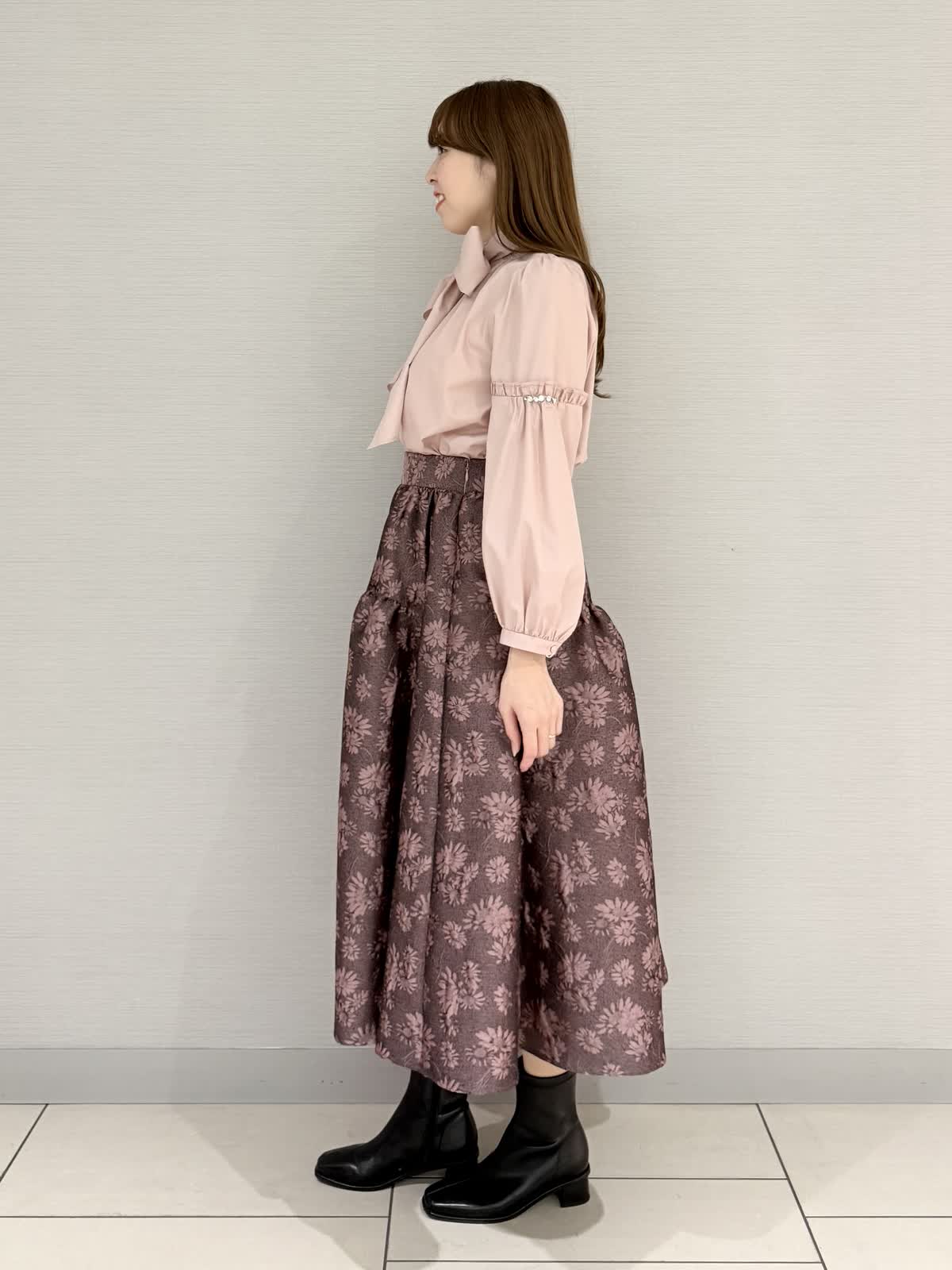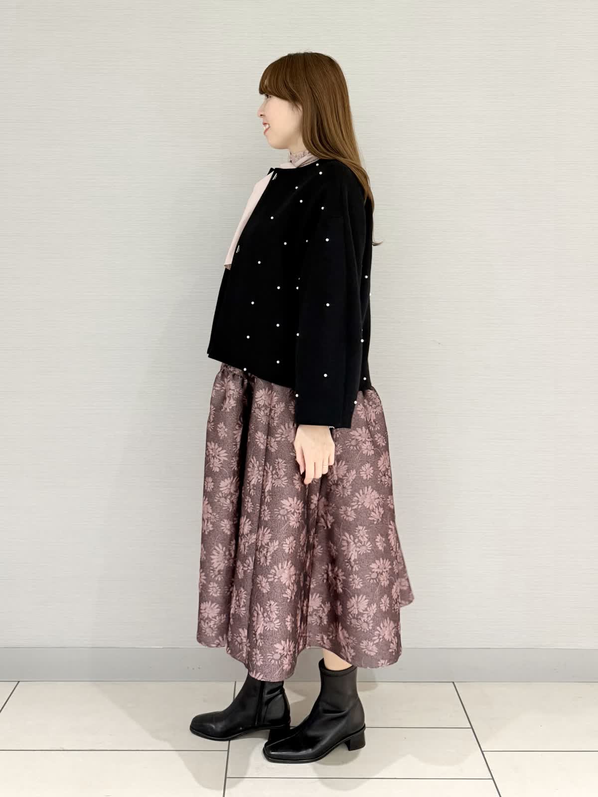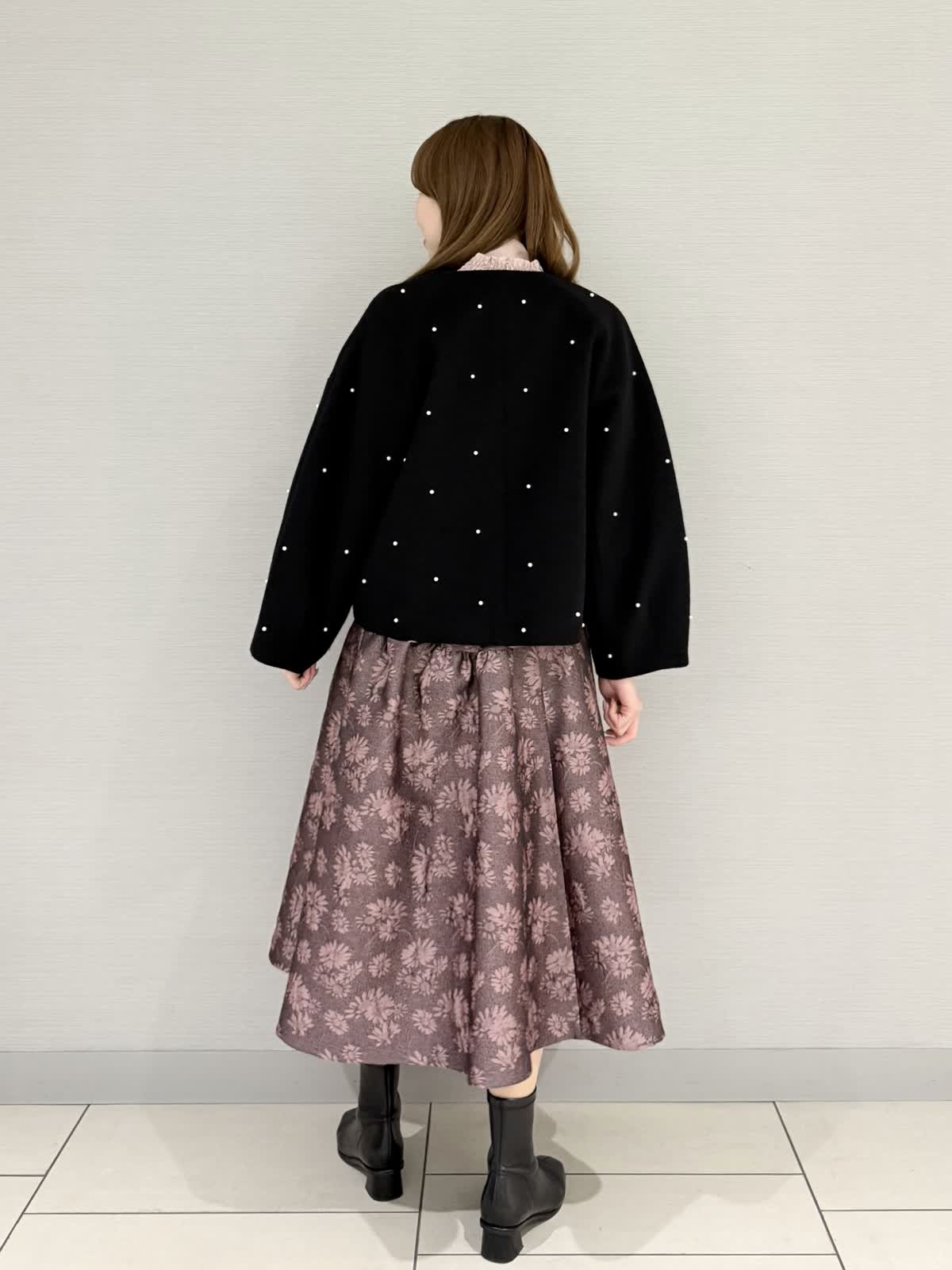 【着用サイズ/カラー】コート:9号/ブラックブラウス:9号/ピンクスカート:9号/ピンク女子会に着たいピンクのコーディネートにしました!大人ピンクの1トーンコーデにアウターとブーツに黒を合わせて甘さをダウン♪コートはとても軽くて着心地◎ブラウスはボウタイが取れるのでその日の気分でコーディネートをお楽しみいただけます。スカートは見た目のわりに軽くて柔らかいので早い時期からお召しいただきやすいです。【サイズ感】どれもいつものサイズでちょうどよかったです。コートはたっぷりデザインですが、サイズを下げると袖丈も短くなるのでいつものサイズがおすすめ♪