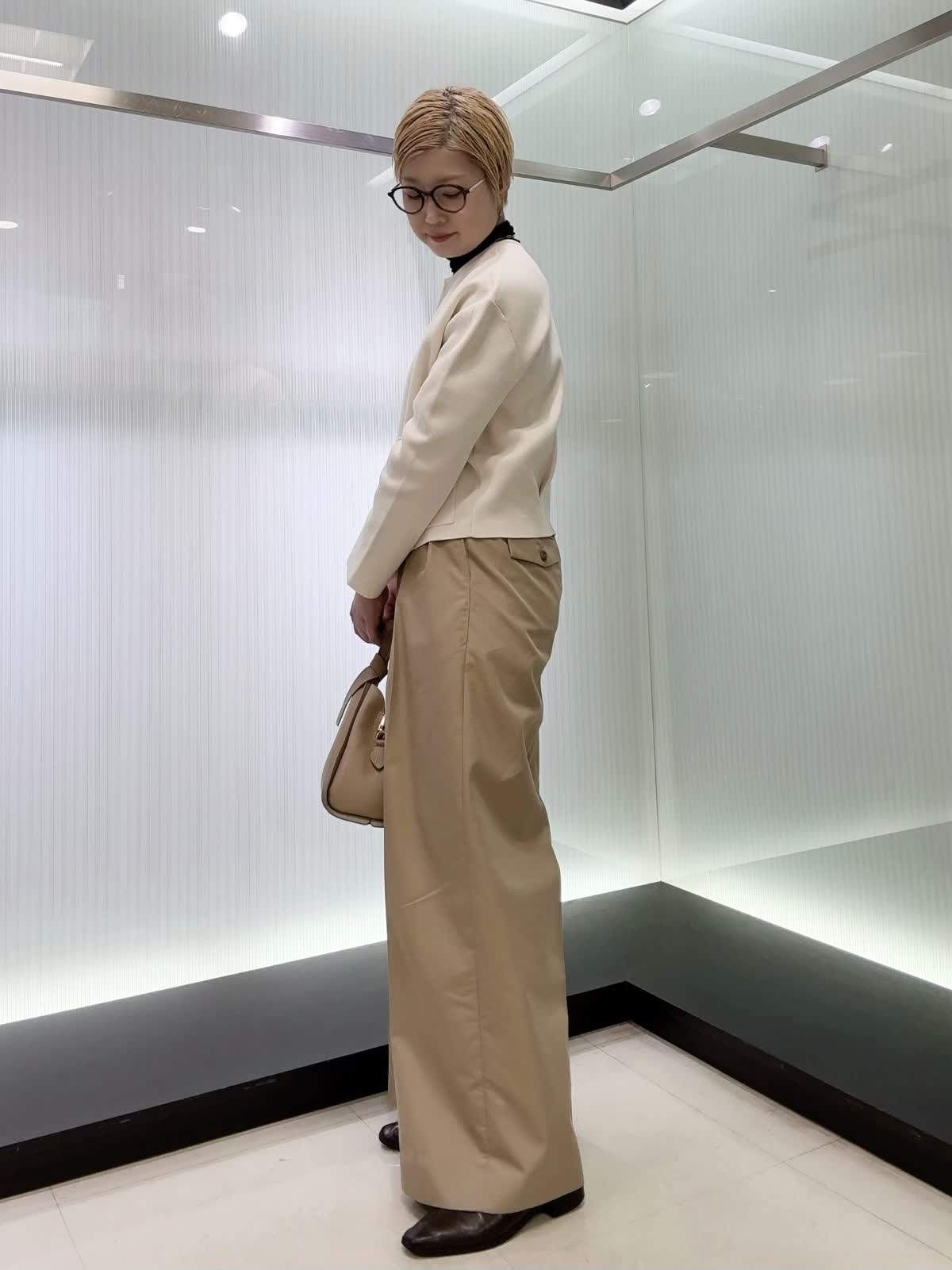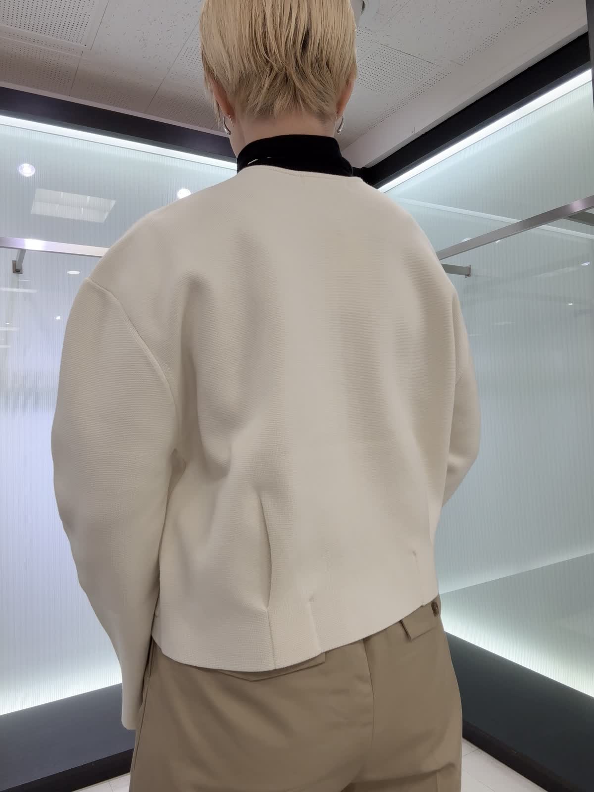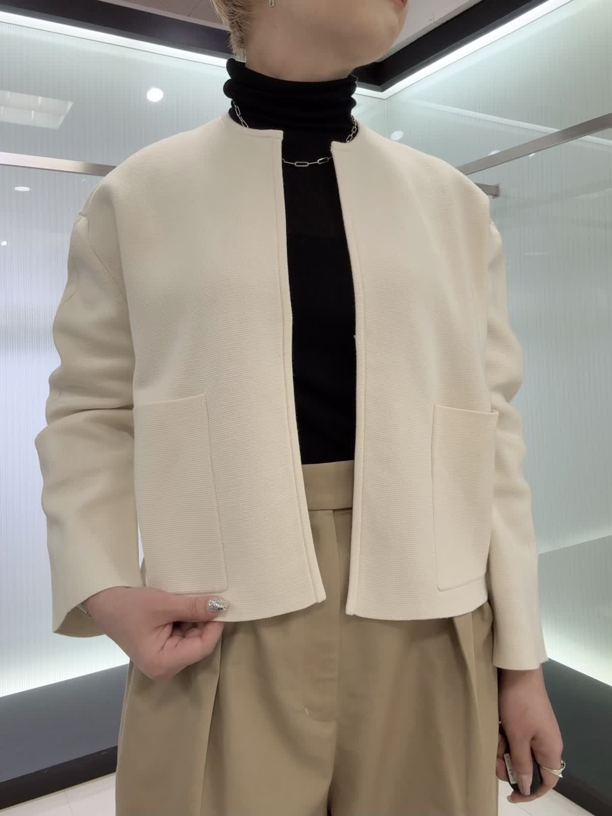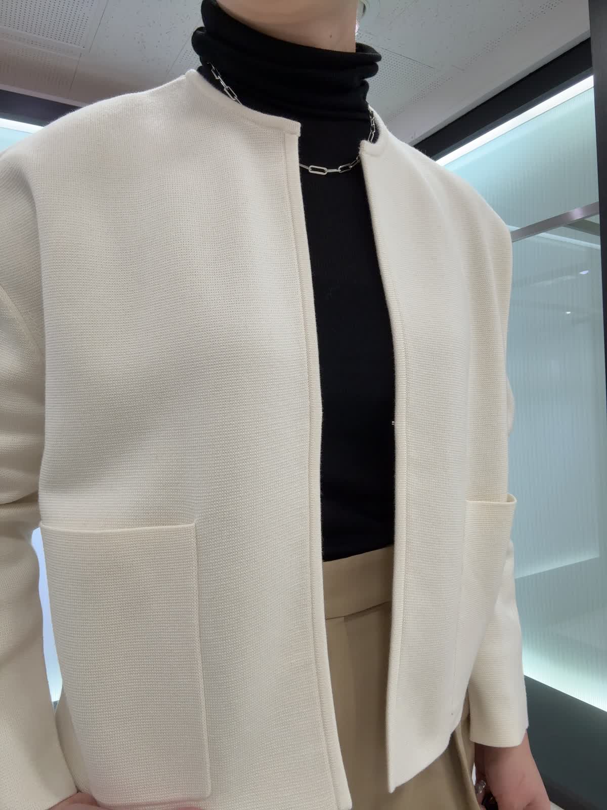 【着用】カーディガン : オフホワイト/フリー カットソー : ブラック/9号 パンツ : ベージュ/ 7号 立体感のあるシルエットが魅力のカーディガン。ジャケットのようなきちんと感もあるので綺麗めコーデにもおすすめです♪程よい着丈なのでロングスカートやワイドパンツなどにもバランス良く着られます。