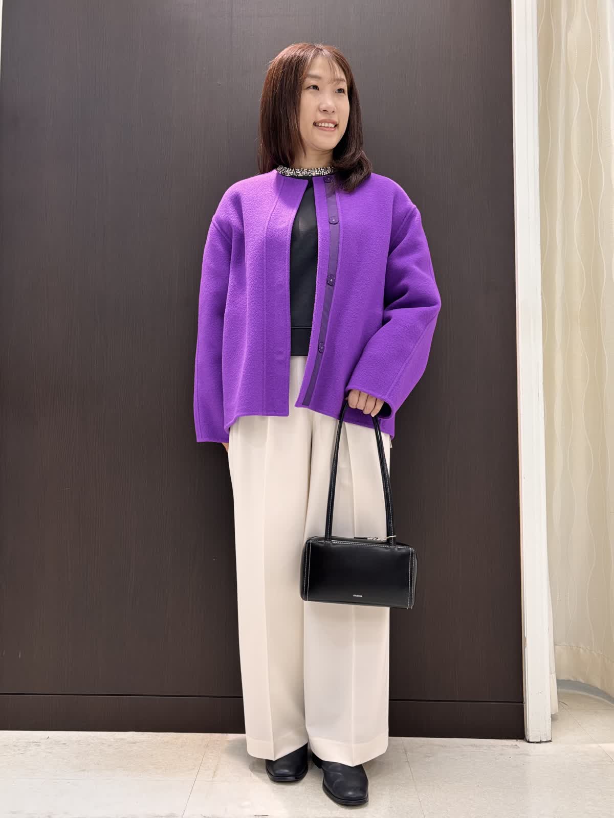 【着用カラー】コート:グレー パープル プルオーバー:スミクロ パンツ:オフホワイト