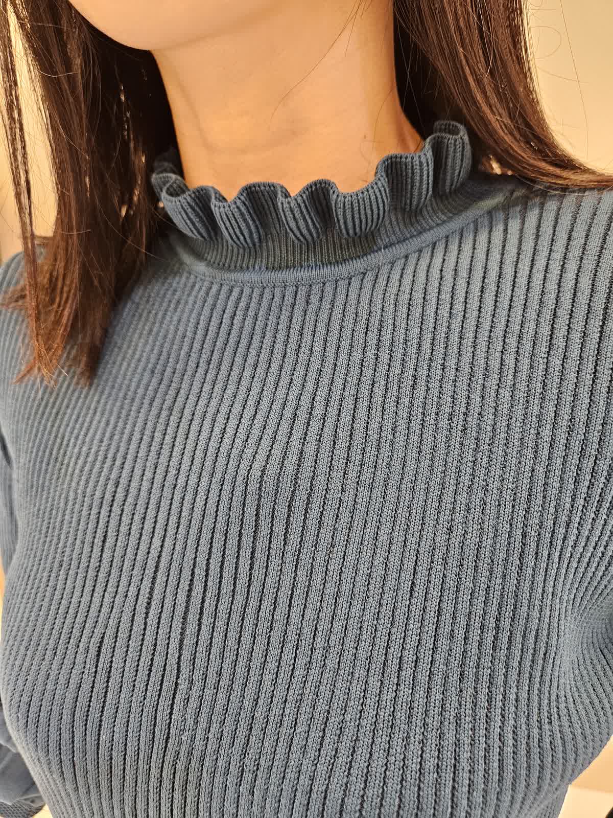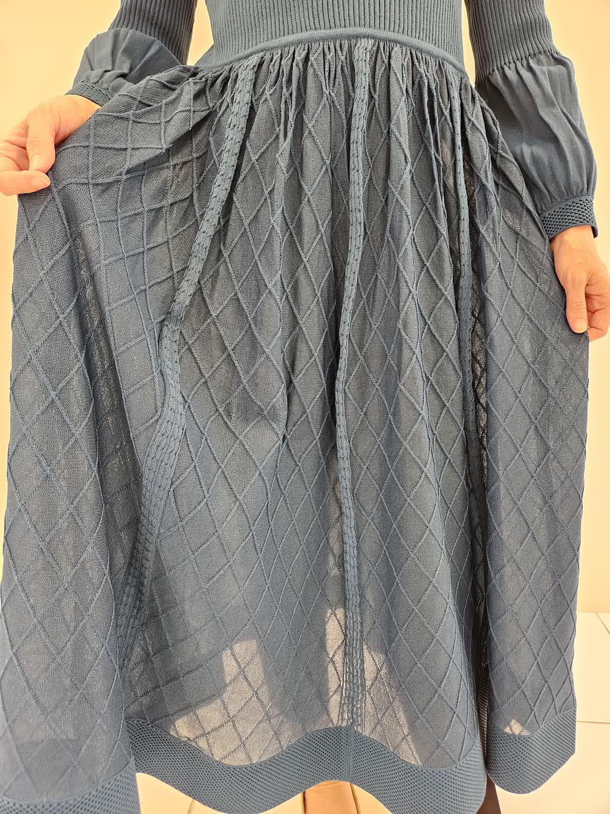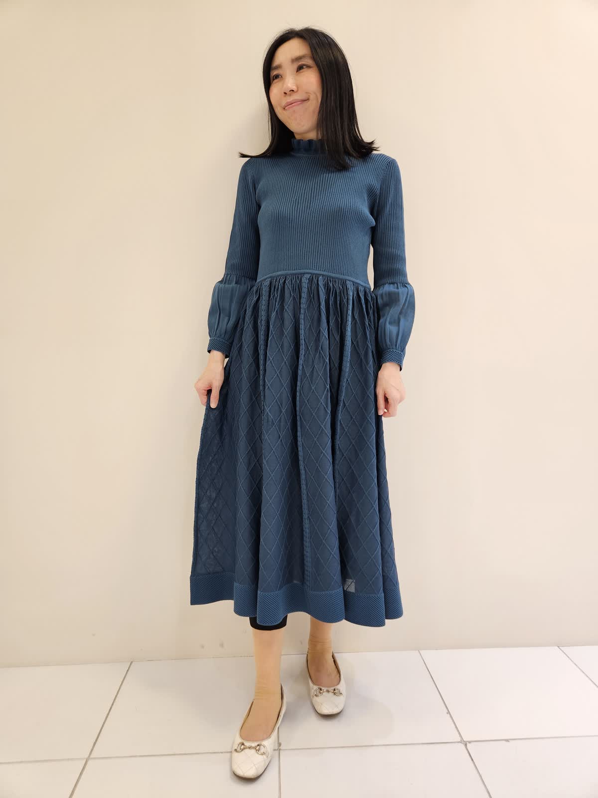 【着用サイズ・カラー】ワンピース:キミドリ9号 ペチコートがついていますが短めの細身パンツと合わせてみました。ワンピースはニット素材で繊細なデザインでお洒落感がありつつ動きやすいです。
