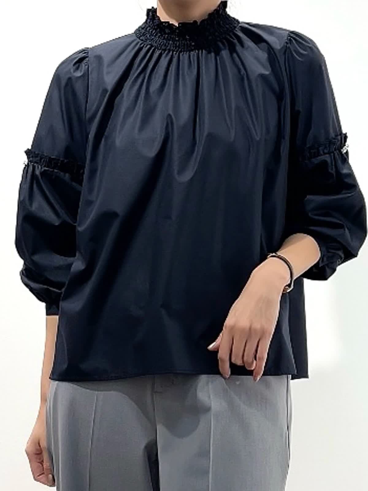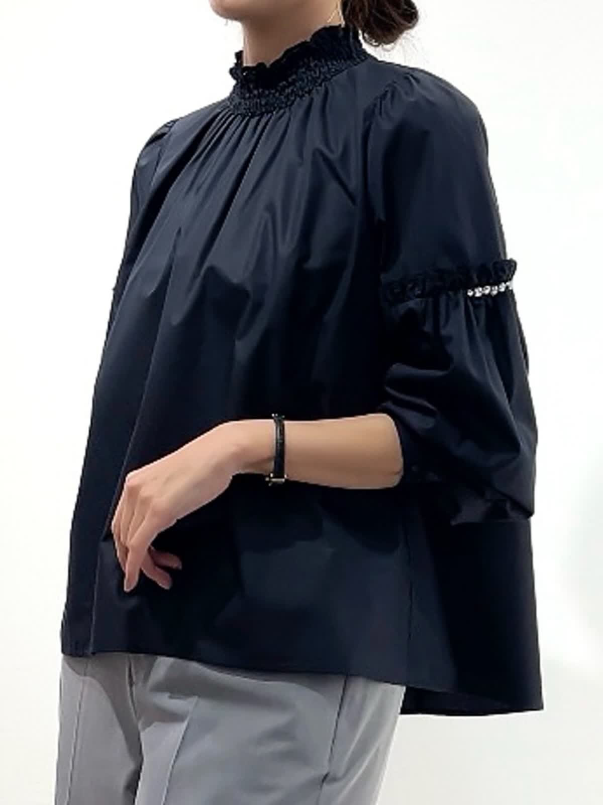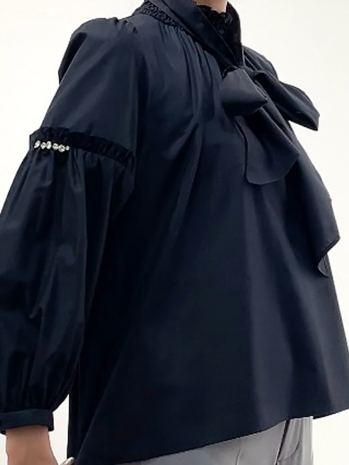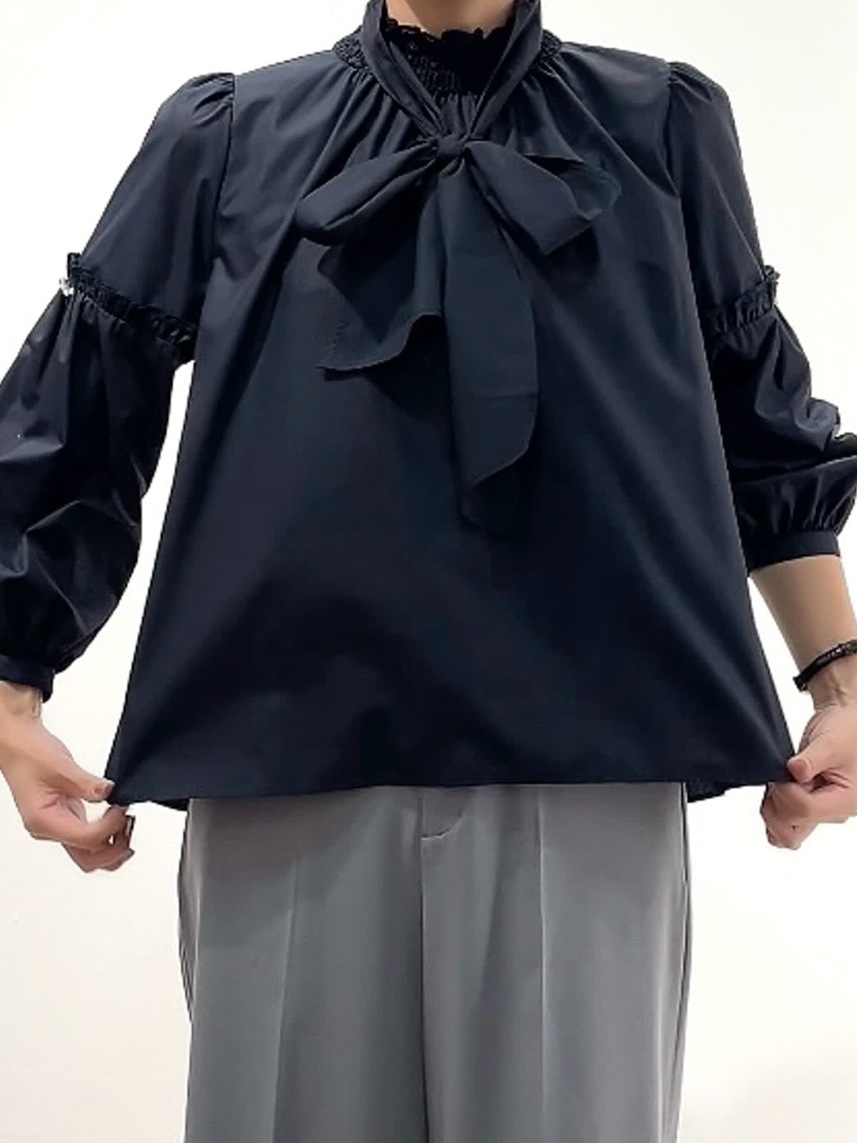 【着用サイズ】カーディガン:9号 ブラウス:9号 パンツ:9号 【着用カラー】カーディガン:ネイビー ブラウス:ネイビー パンツ:ミディアムグレー バッグ:ブラック 「クラシカルエレガントコーデ」 ラメニットカーディガンとボウタイブラウスの上品コンビの組み合わせで、華やかさが際立つクラシカルスタイル。 カーディガンは、ざっくりとした編み地で華やかなグリッターやラメ糸がポイント。柔らかい素材感で軽く羽織れるデザインなので、季節の変わり目にも大活躍。ネイビー×グレーの配色で、お仕事や綺麗めにも映えるおすすめスタイルです。