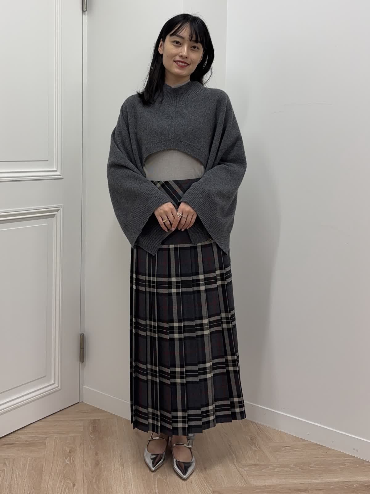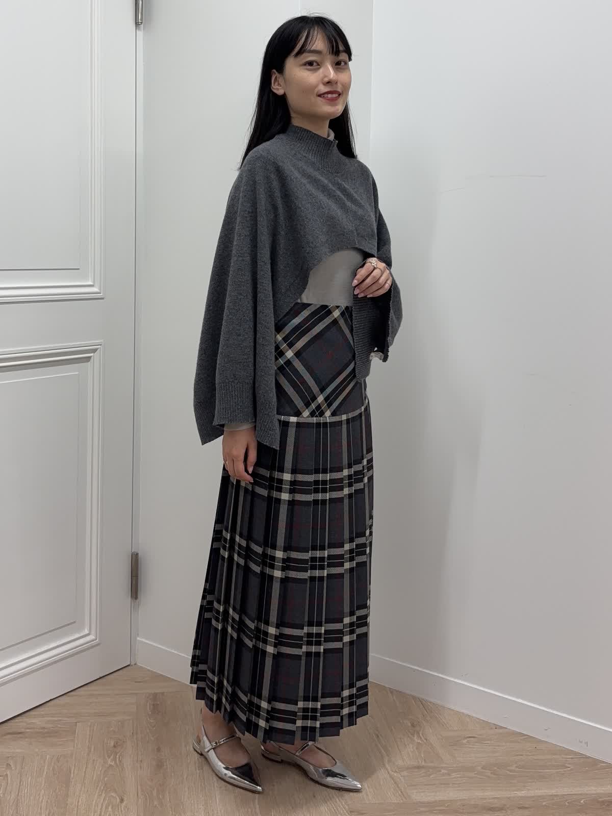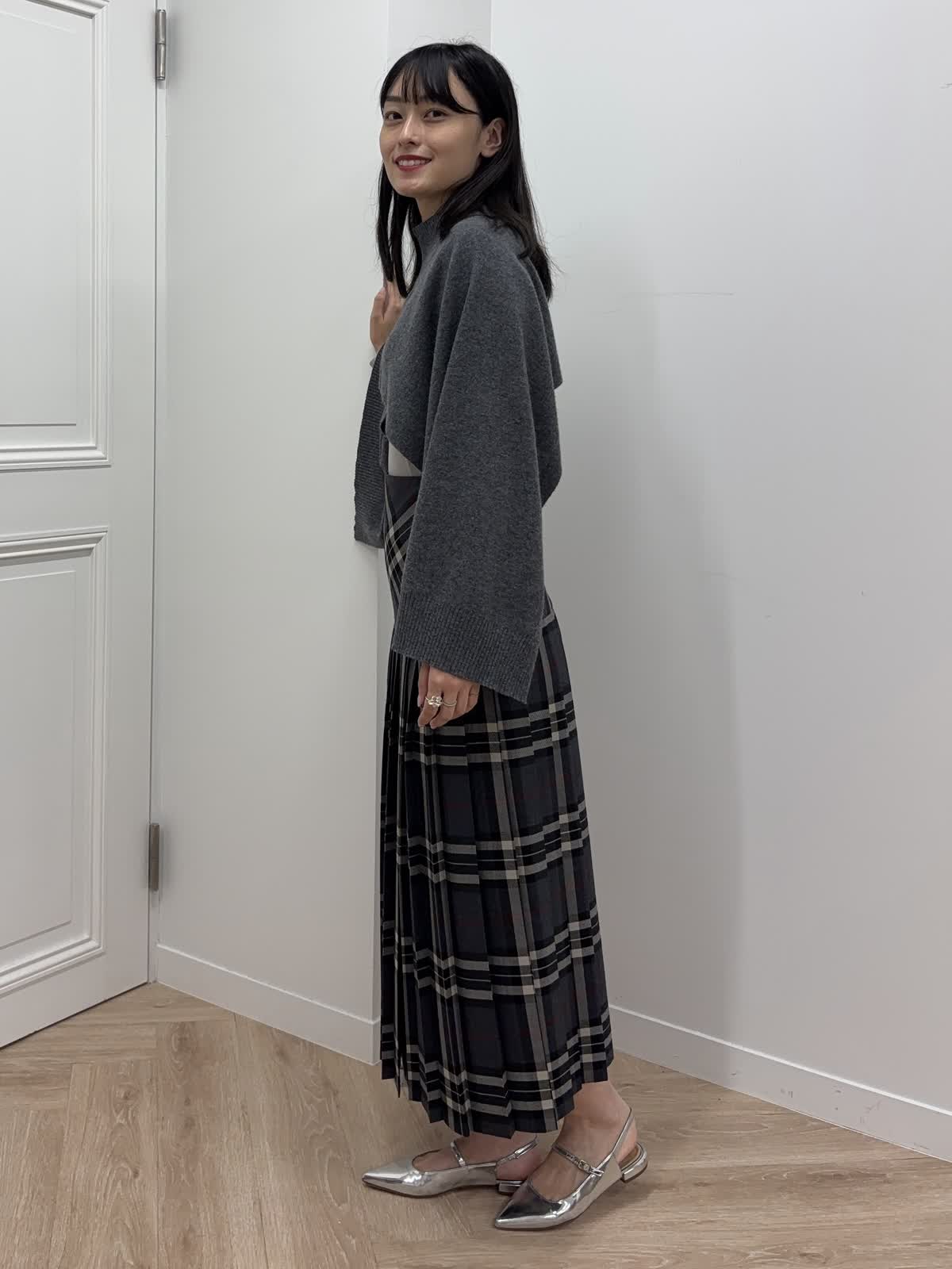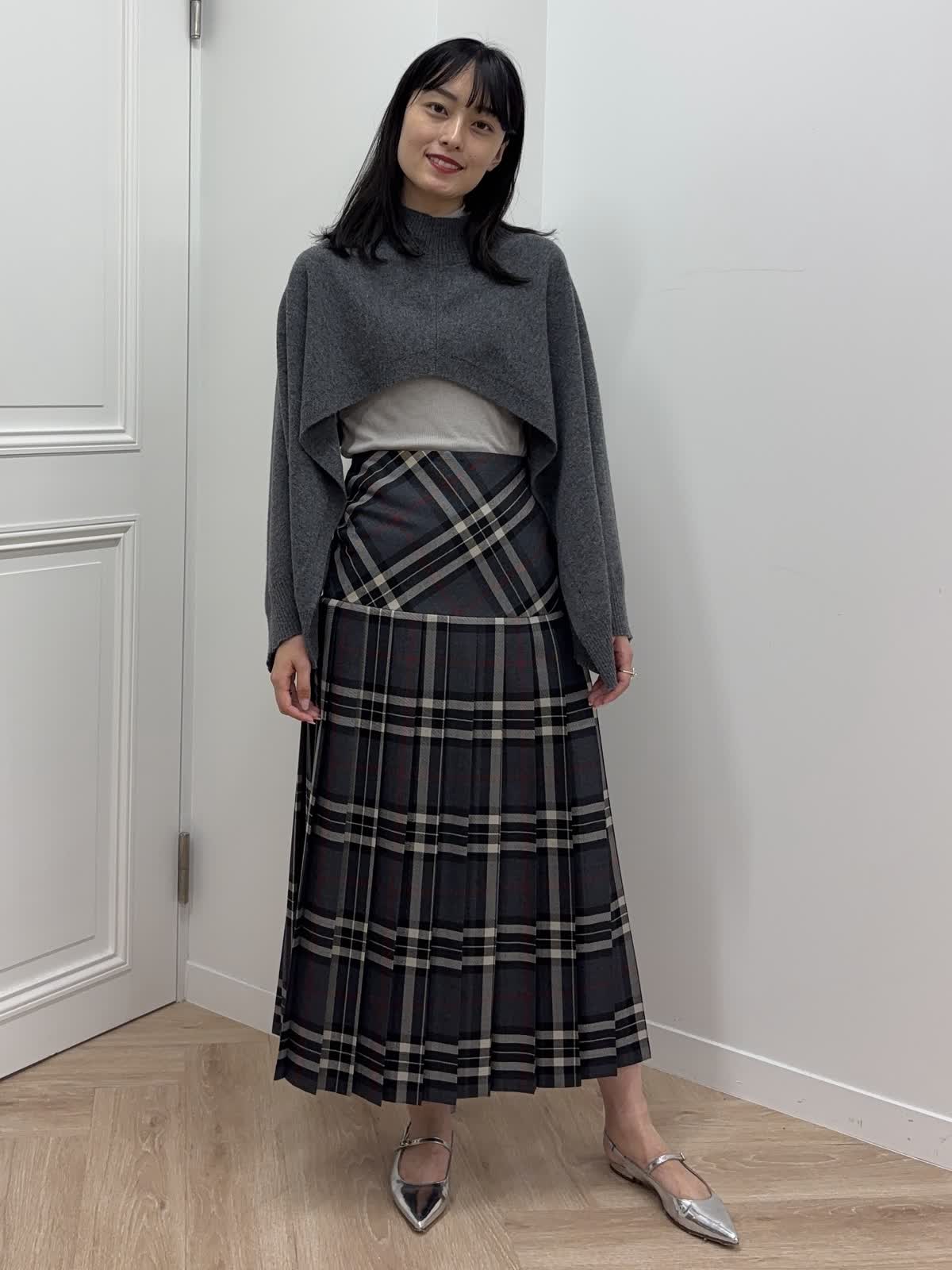 【着用カラー】ニット:グレー、カットソー:グレー、スカート:グレー 【着用サイズ】ニット:9号、カットソー:9号、スカート:9号 コーディネートのテーマは落ち着いた休日コーデです。トップスの2wayニットは脇で釦を留めるとジレとして、横向きにするとショートボレロとして着用できるアイテム。1枚持っているだけで、様々なコーデに合わせて楽しむことができます。ふんわりとした手触りで、一日中心地よく着ることができます。スカートはオニールオブダブリンのアイテム。ちょうどよい丈感で、上品にプレッピーコーデを楽しむことができます。全体的にグレーで合わせて、落ち着いた大人コーデを組んでみました。