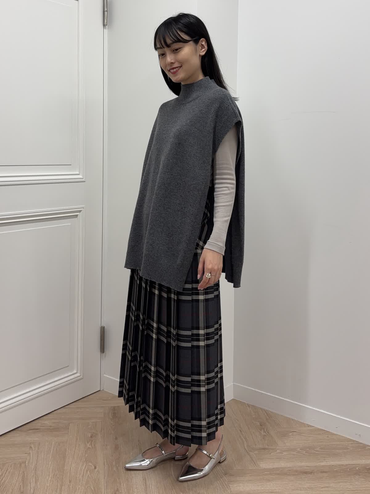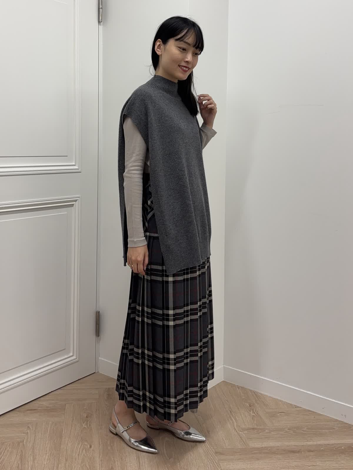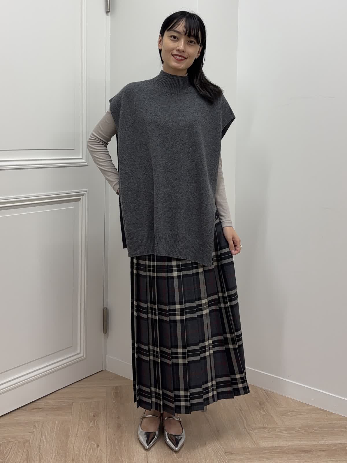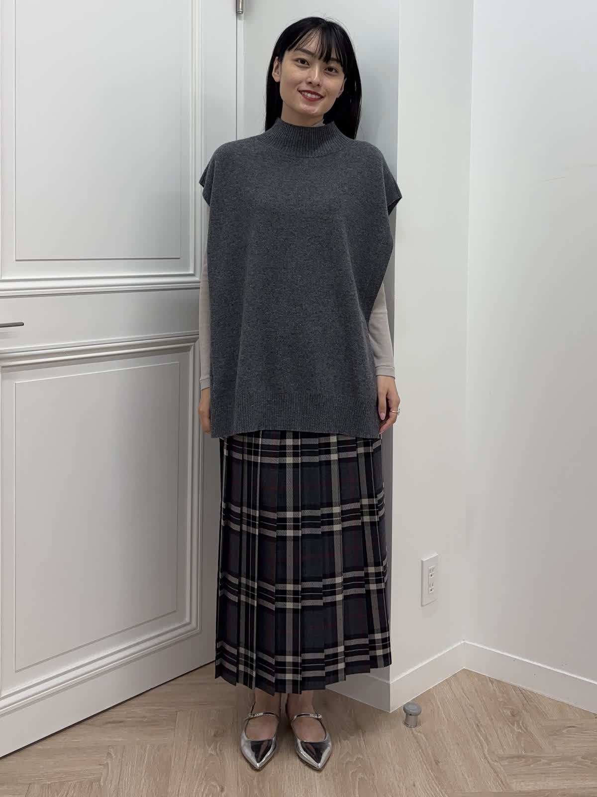 【着用カラー】ニット:グレー、カットソー:グレー、スカート:グレー 【着用サイズ】ニット:9号、カットソー:9号、スカート:9号 コーディネートのテーマは落ち着いた休日コーデです。トップスの2wayニットは脇で釦を留めるとジレとして、横向きにするとショートボレロとして着用できるアイテム。1枚持っているだけで、様々なコーデに合わせて楽しむことができます。ふんわりとした手触りで、一日中心地よく着ることができます。スカートはオニールオブダブリンのアイテム。ちょうどよい丈感で、上品にプレッピーコーデを楽しむことができます。全体的にグレーで合わせて、落ち着いた大人コーデを組んでみました。