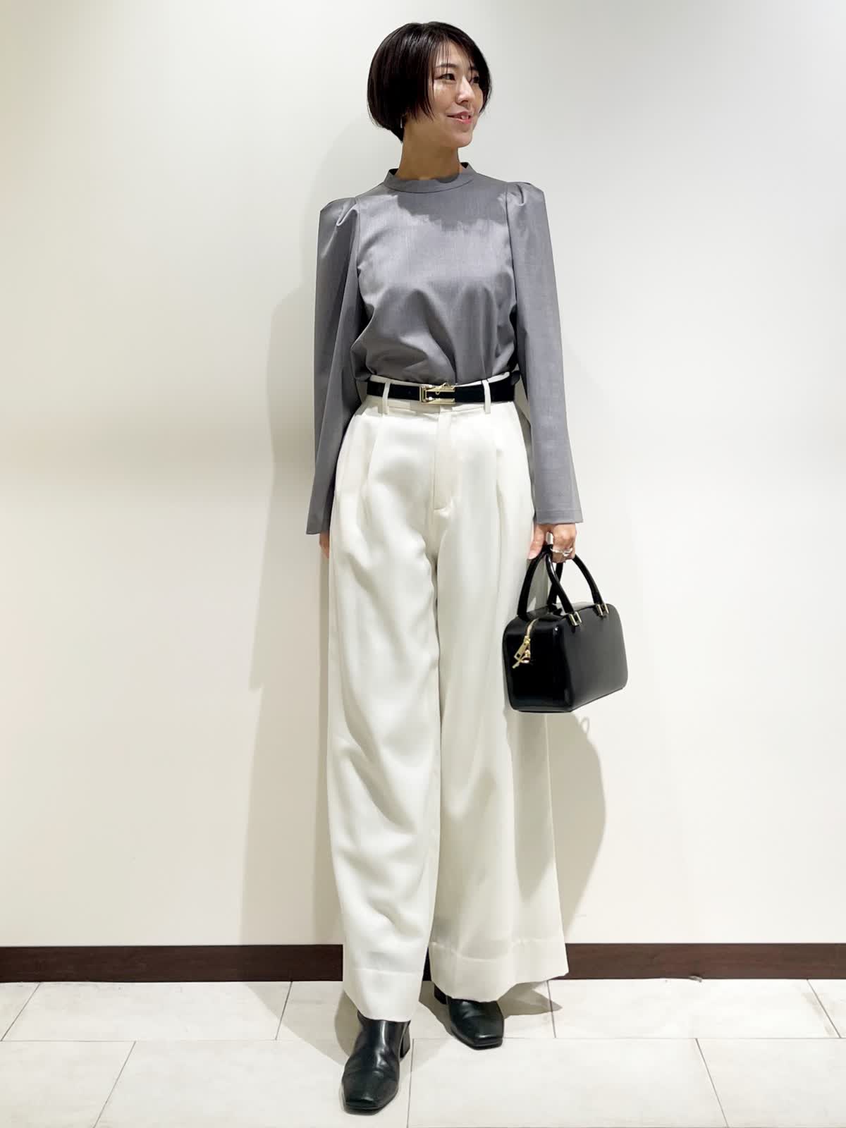 【着用サイズ】全て9号 【カラー】ブラウス:グレー パンツ:ホワイト ベルト:ブラウン バック:ブラック 【コーディネートテーマ】 三尋木さんコラボブラウスコーデ ちょっとしたお呼ばれやイベントにもピッタリなブラウスです! 【サイズ感】 ブラウス:標準 見た目コンパクトに見えますが、ストレッチ有りで着やすいです。 パンツ:標準 後ゴム使用。 163p 普段9号サイズ 骨格ウェーブで上半身に比べてヒップがやや大きい