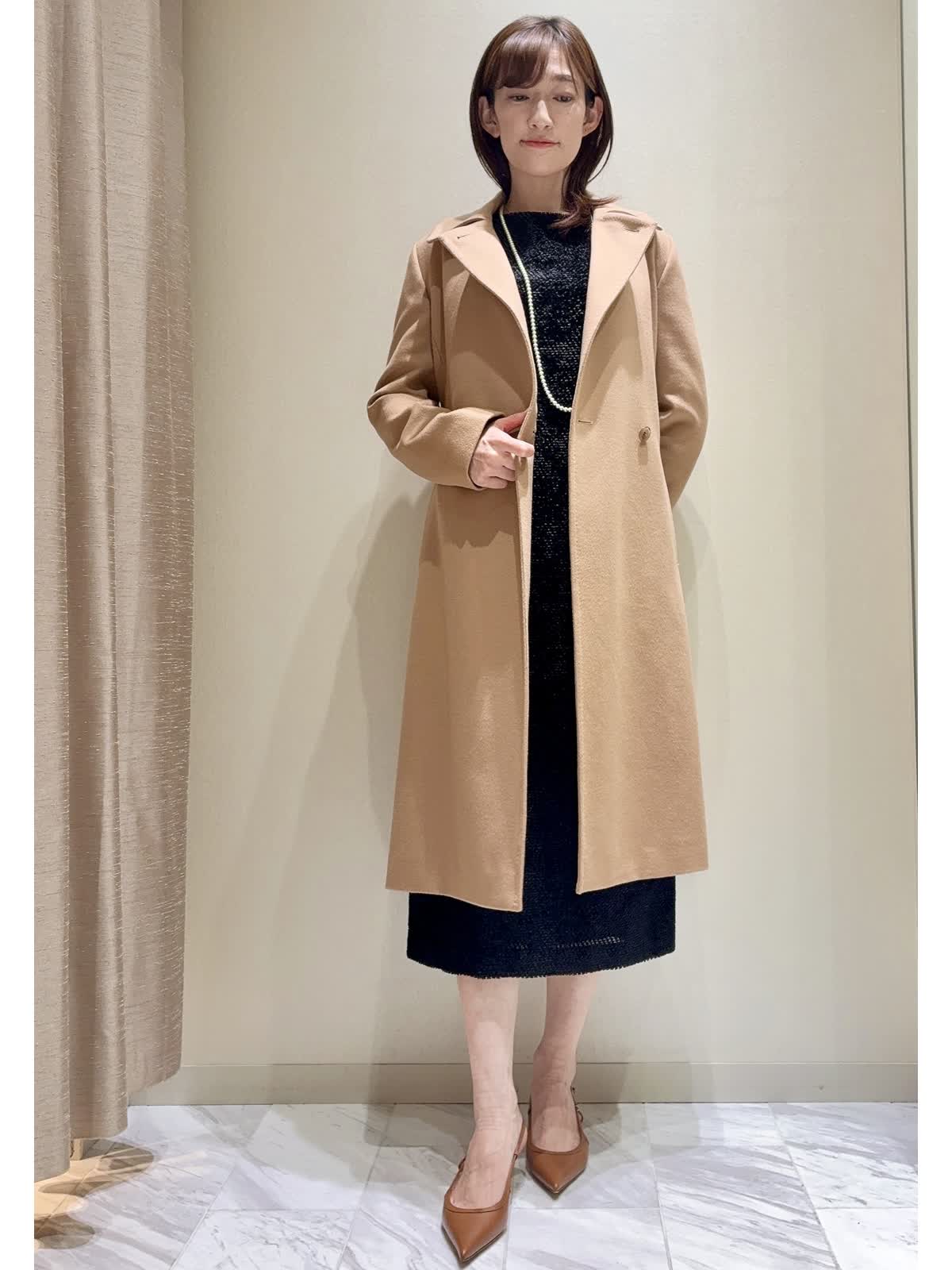 【着用サイズ】9号 【着用カラー】キャメル INEDの定番カシミヤラップコートです。 上質なピュアカシミヤ素材で、キャメル色がとてもきれいです。 上品な光沢とツヤ感がエレガントなコートです。 飽きのこない、シンプルなラップ型で、普段使いだけでなく、フォーマルドレスなどにもおすすめのコートです。