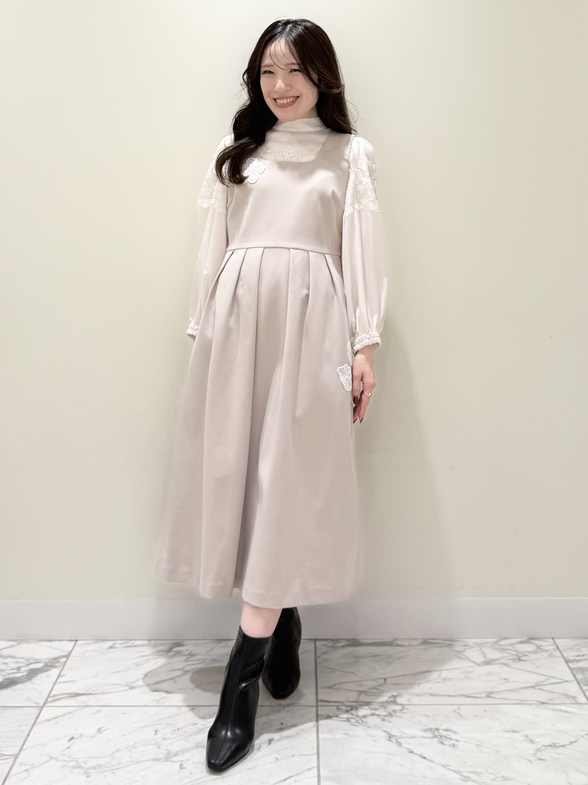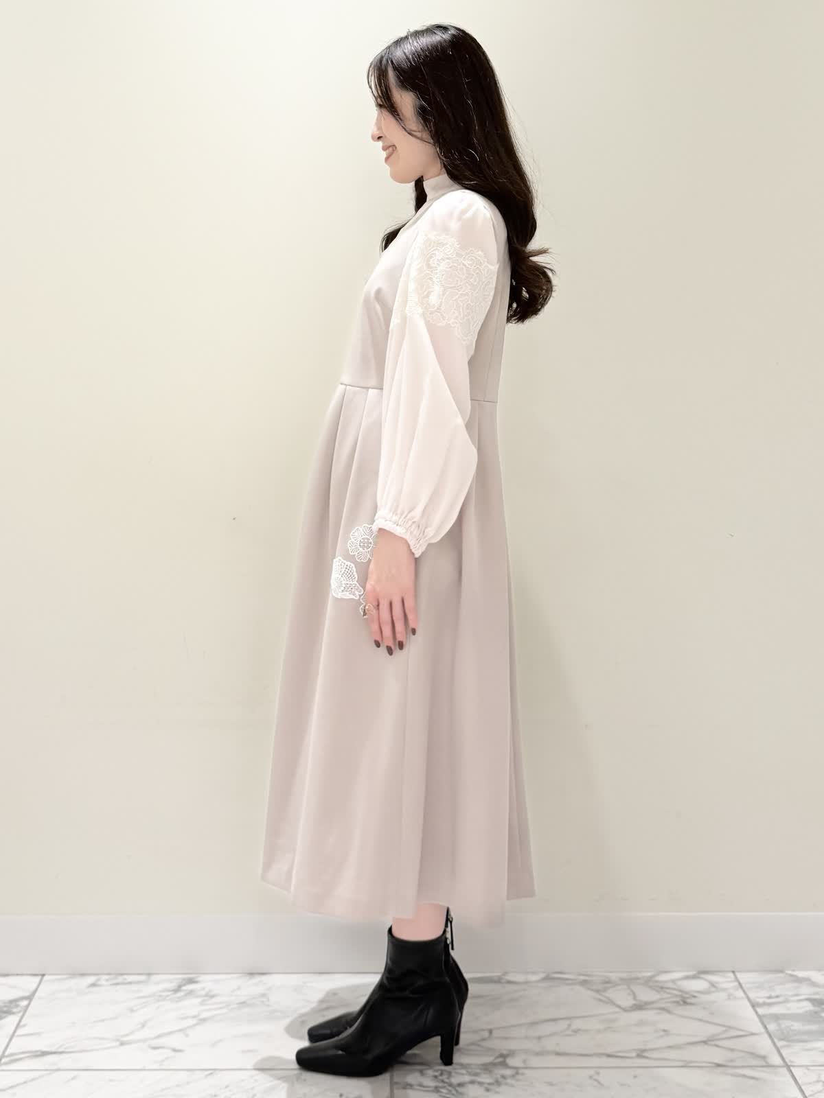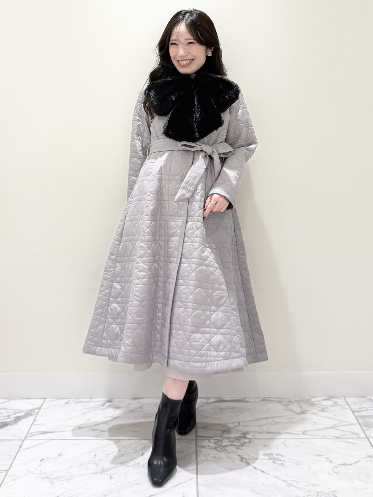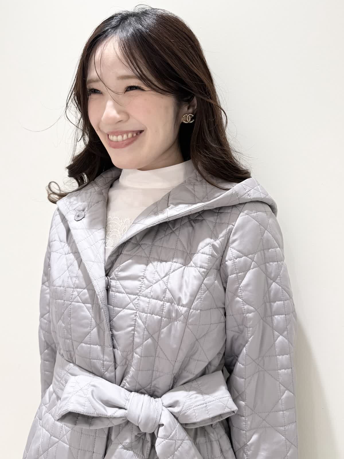【着用サイズ/カラー】全て:7号 トーンを合わせた大人可愛いコーディネート♪ 360℃美シルエットのアウターは幾何学柄のオリジナルキルティング生地のロング丈フーディーコート。ベージュは同色のプレーンステッチで上品に仕上げた1着。ウエストをベルトでキュッと絞るとフィット&フレアの綺麗なシルエット。腕周り、アームホールは程よいゆとりがあるのでニットの上からでも着られます。ジャケットの上から羽織りたい方は1サイズ大きめなおすすめです。ロング丈でもとても軽く羽織れるので、デイリー使いもしやすいです。合わせは人気のフラワーモチーフワンピースにシアーレースブラウスのコーディネート。ワンピースは高め切り替えからのタック入りでボリューム出過ぎないフレアシルエット。表地はサラサラとしており、やや伸縮性を感じる生地で着心地◎計算された位置のフラワー刺繍がポイント。7号着用で程よいゆとりがありました。ジャストで着たい方はいつものサイズを、程よいゆとりが欲しい方は1サイズ大きめでも良いかと思います。インナーはレース使いが綺麗なブラウス。ハイネックしすぎず、ネック周りは余裕があるので窮屈感なく着られます。裏地はなく、表地にしっかりとした薄手のオーガンジーを生地を合わせた2枚仕立てなので、透け感は緩和されますが淡い色味なので同色系のインナーを着るのが良いかと思います。