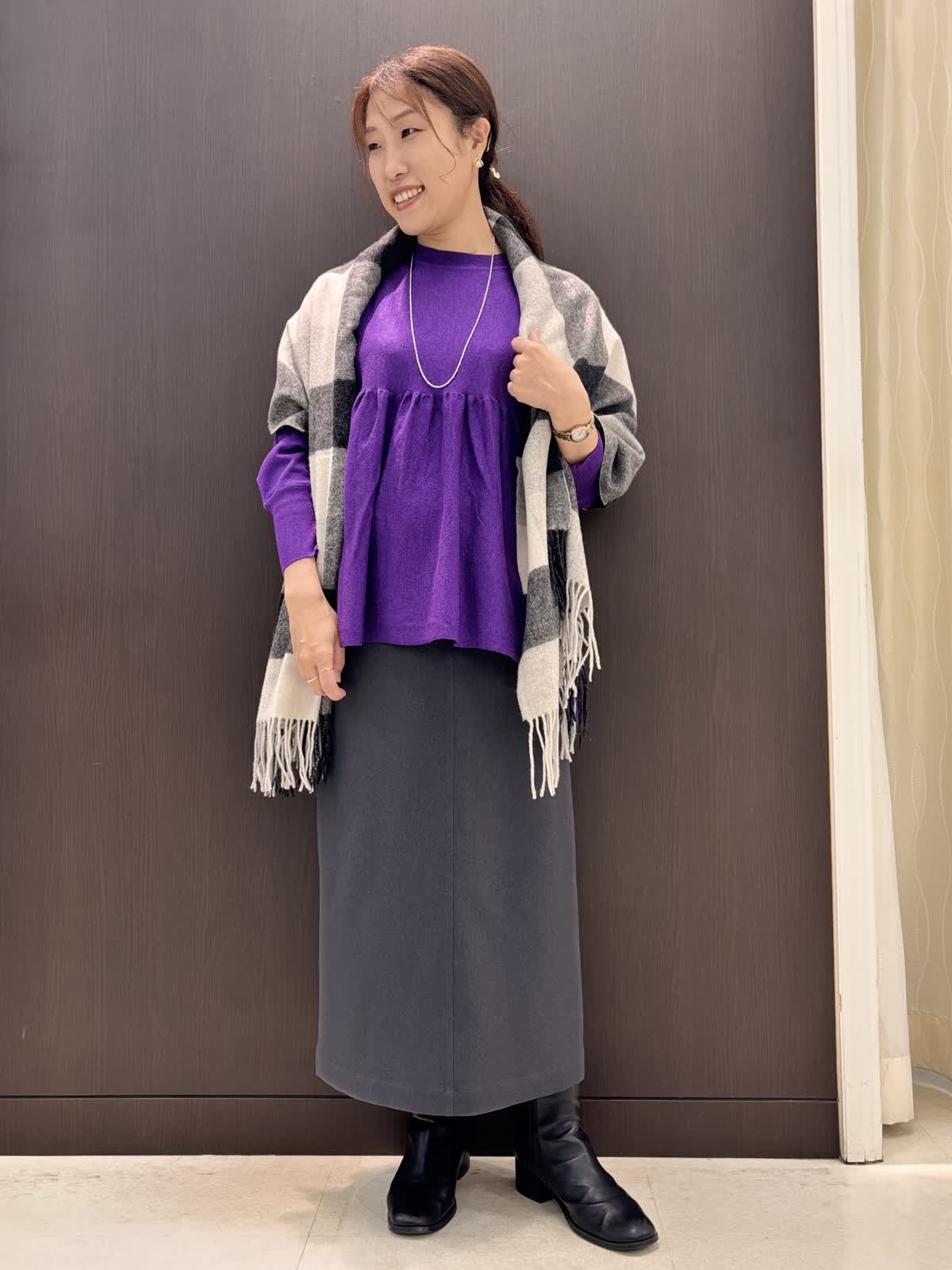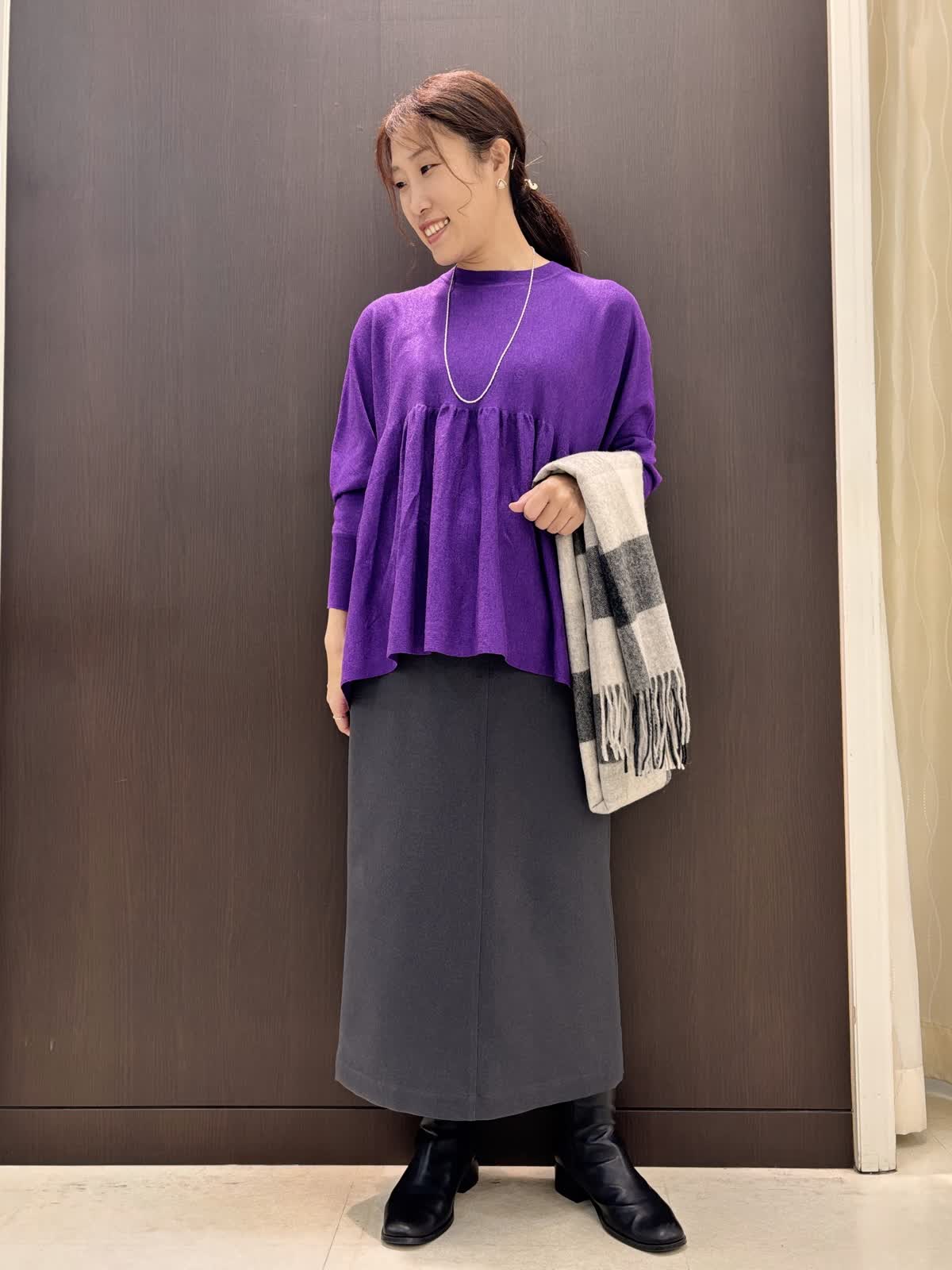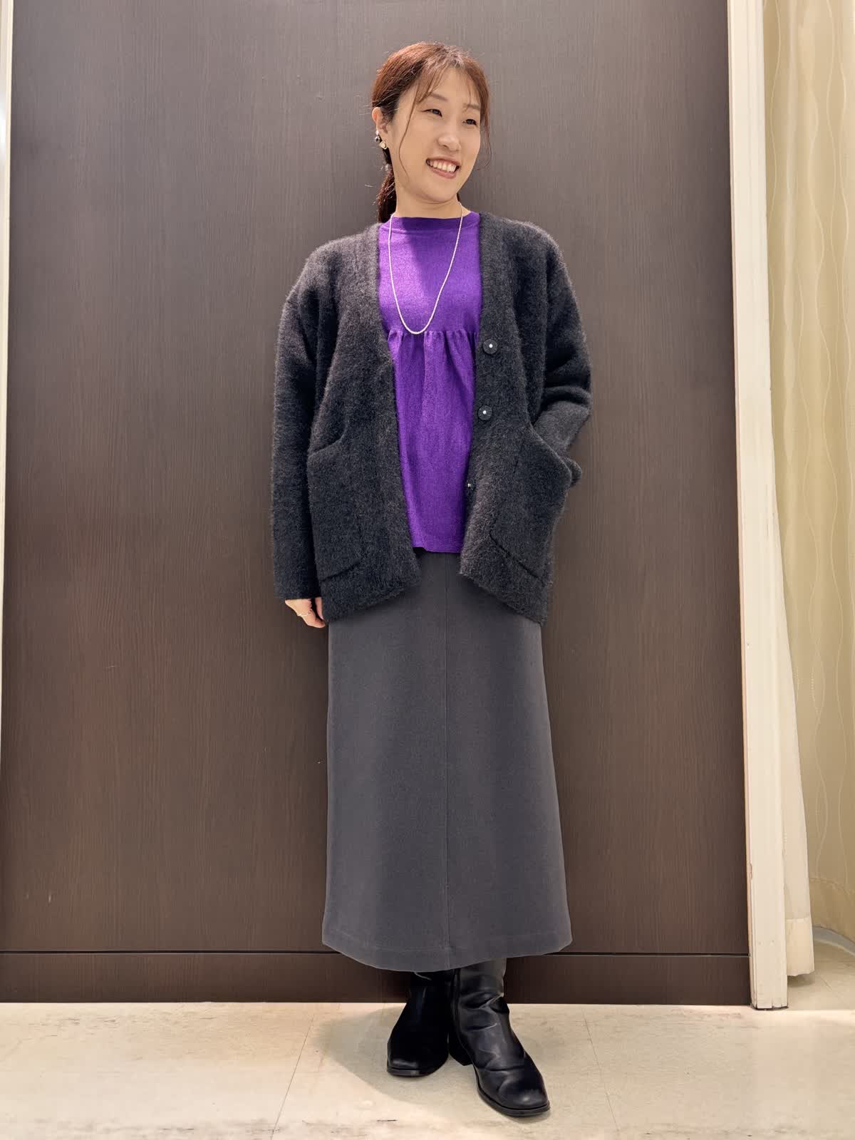 【着用カラー】ブルゾン:チャコールグレー ニット:パープル スカート:ミディアムグレー