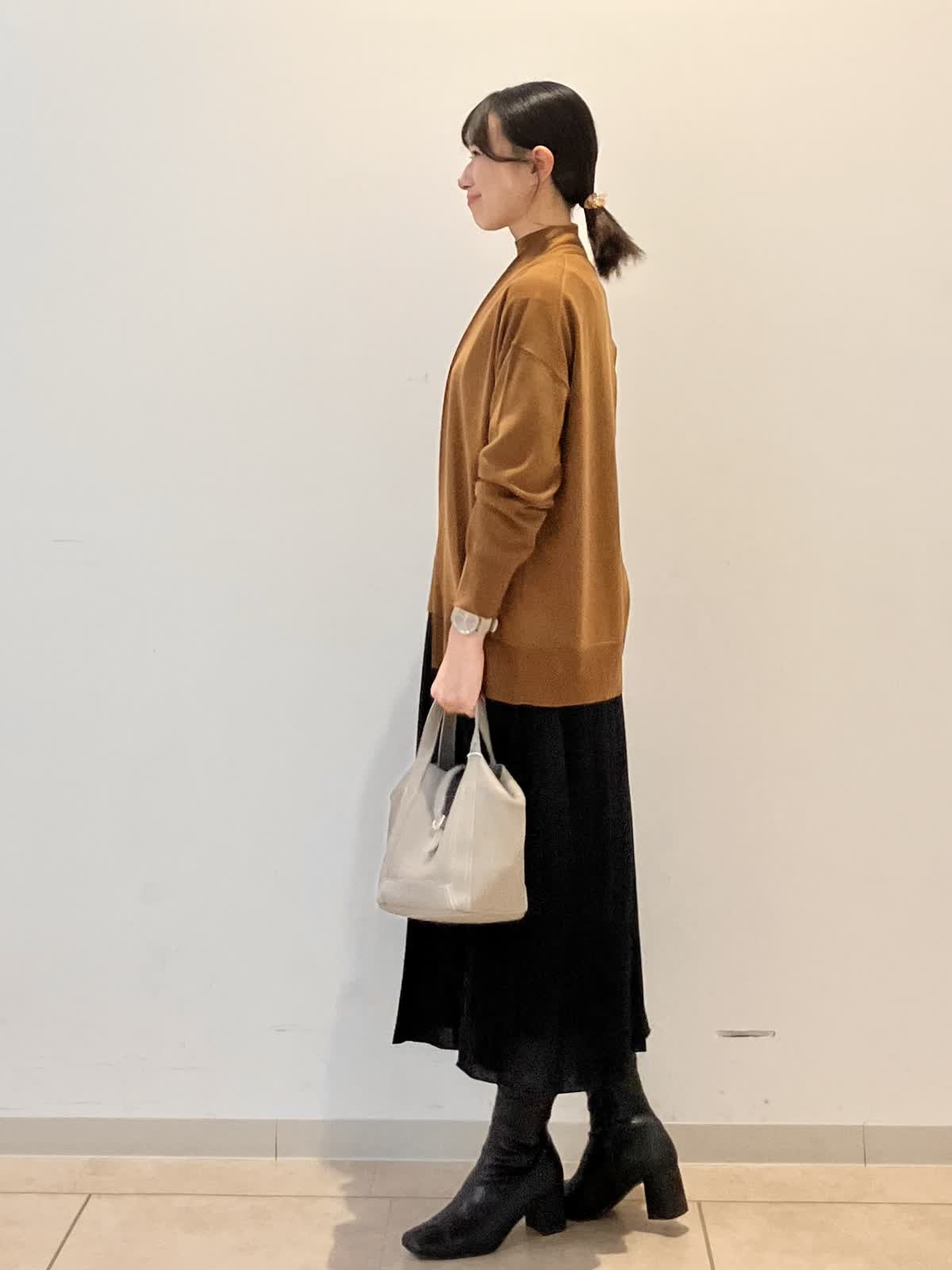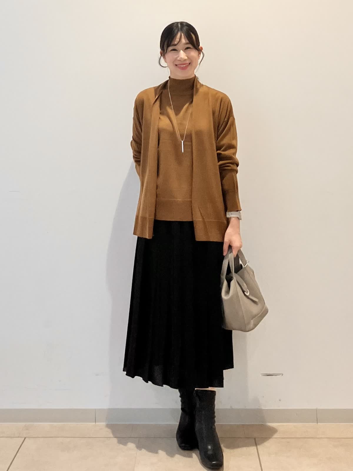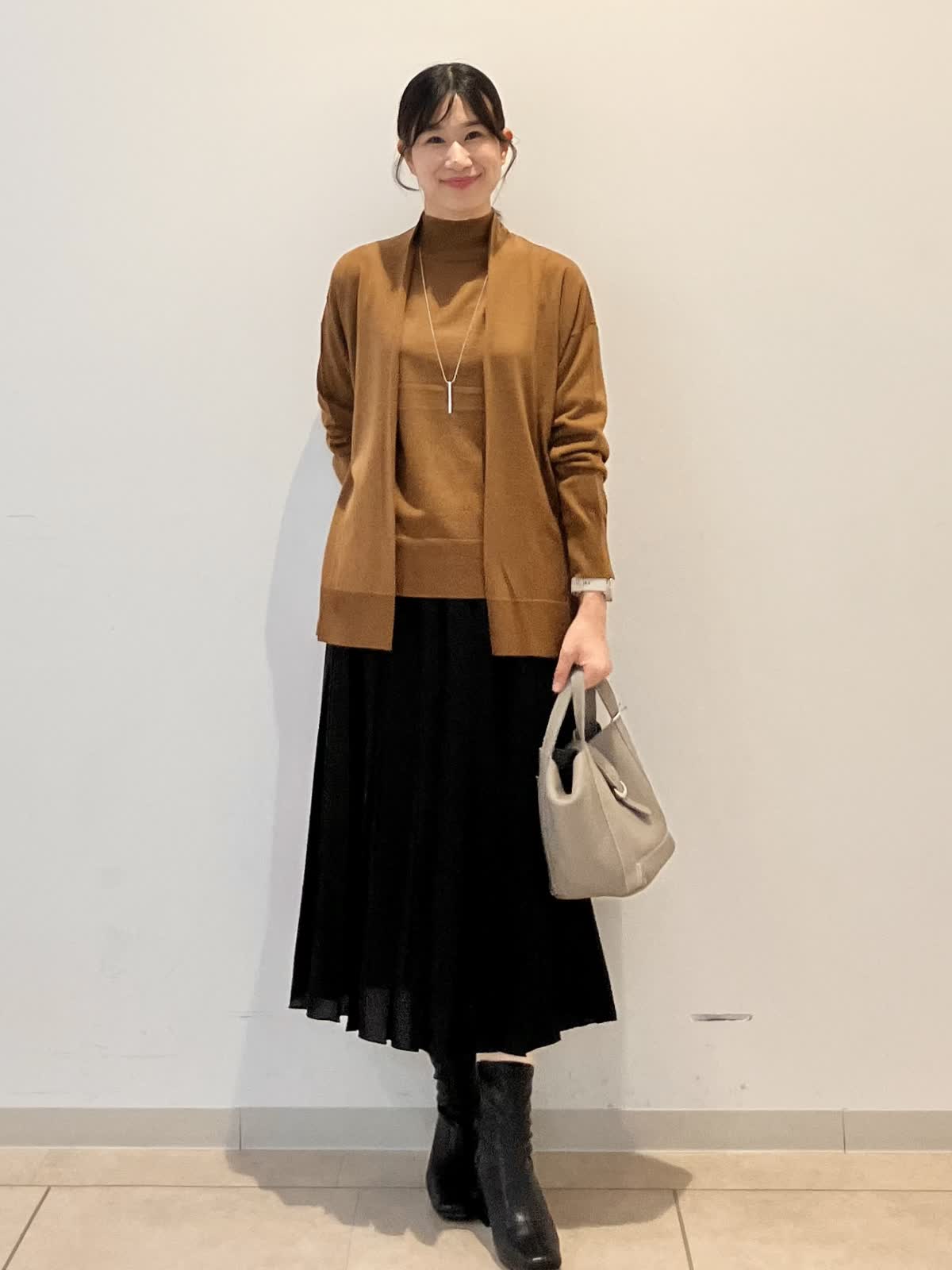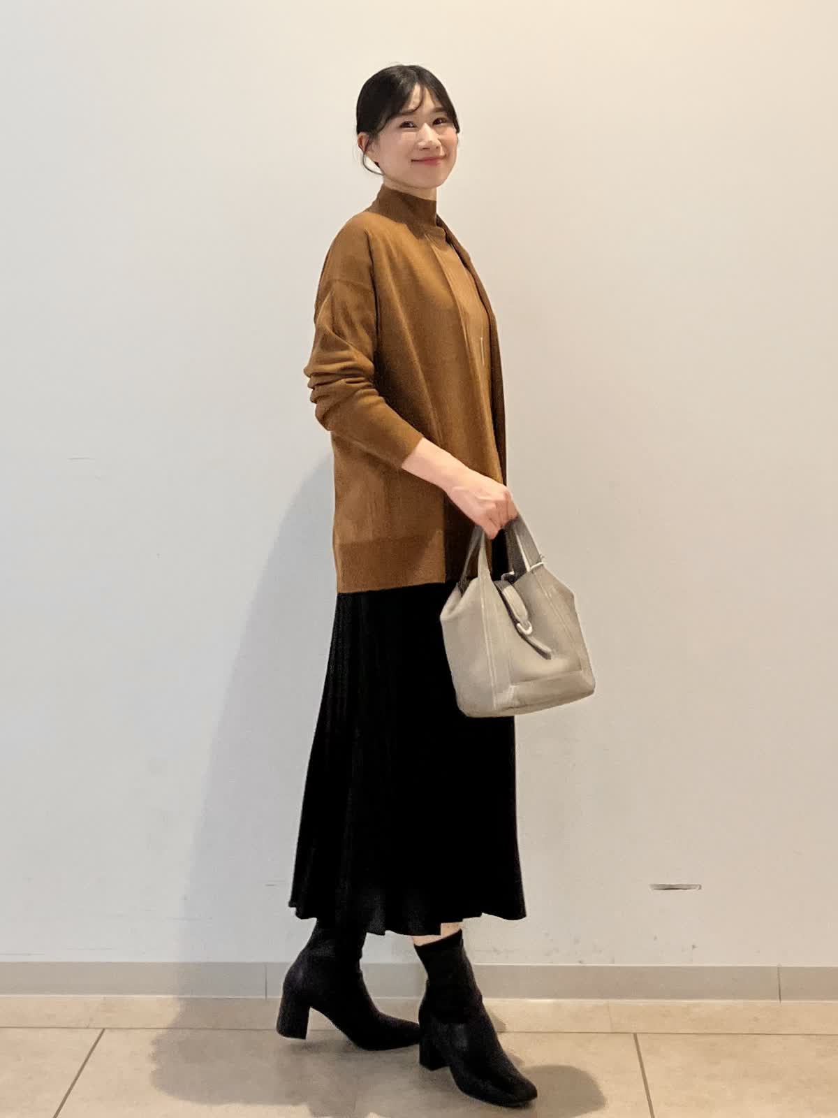 【着用サイズ】カーディガン:フリー ニット:フリー スカート:フリー 「高級感あるウール素材で上品なレイヤードスタイル♪」 明るいブラウン系のニットが落ち着いた秋冬カラーを演出。シンプルながらも生地に高級感があり、上品さときちんと感を出してくれます♪ お仕事からお食事会、プライベートまで幅広く活躍するコーデです。