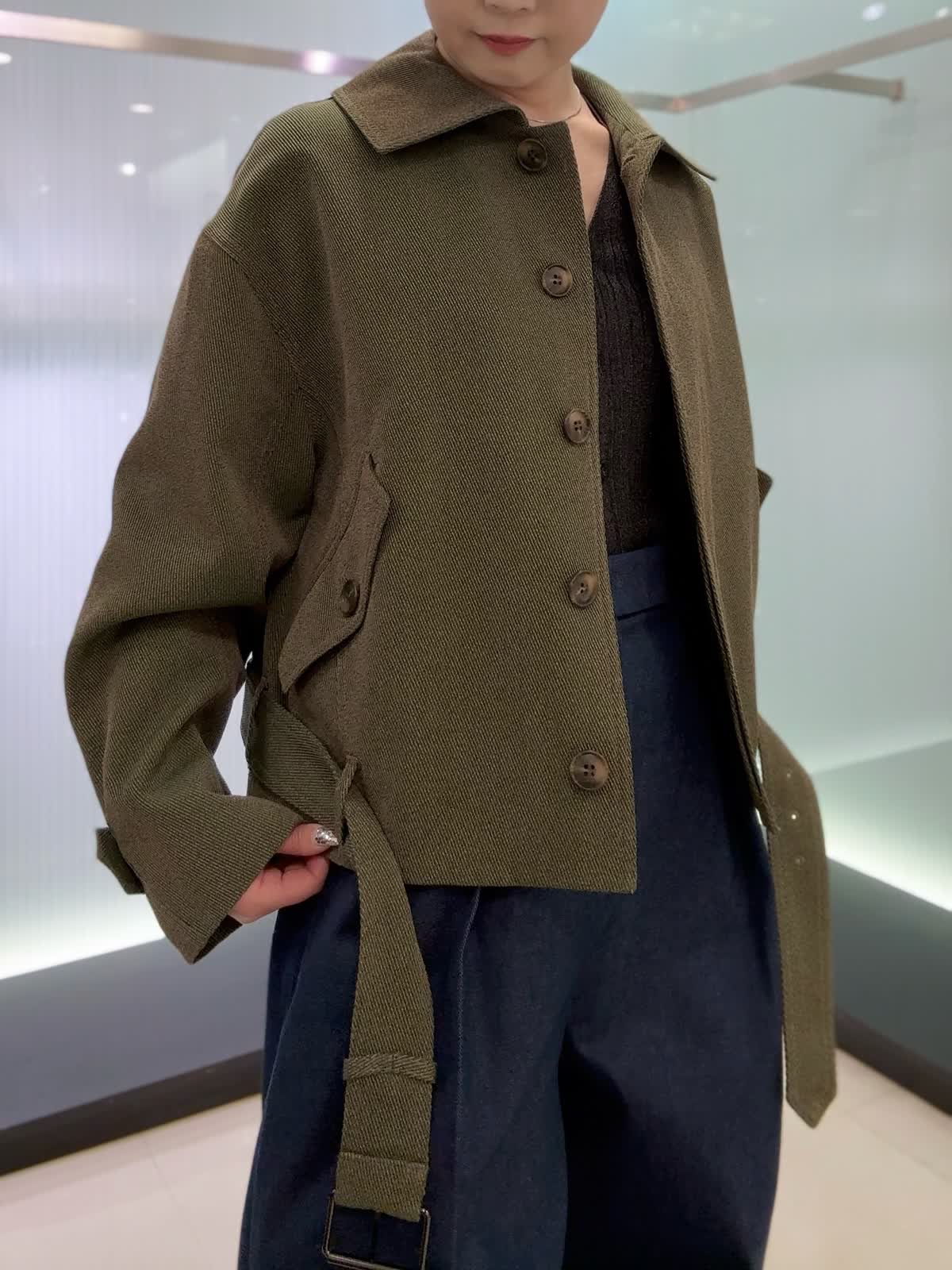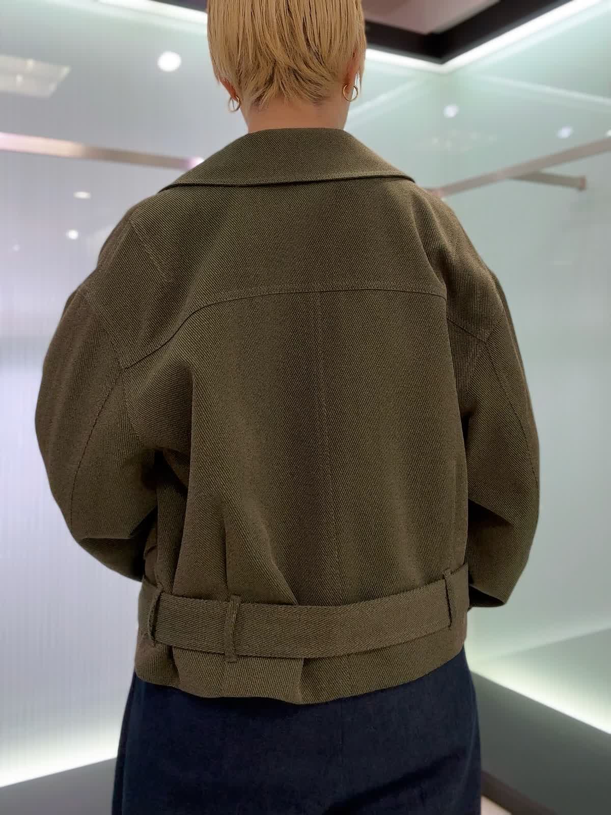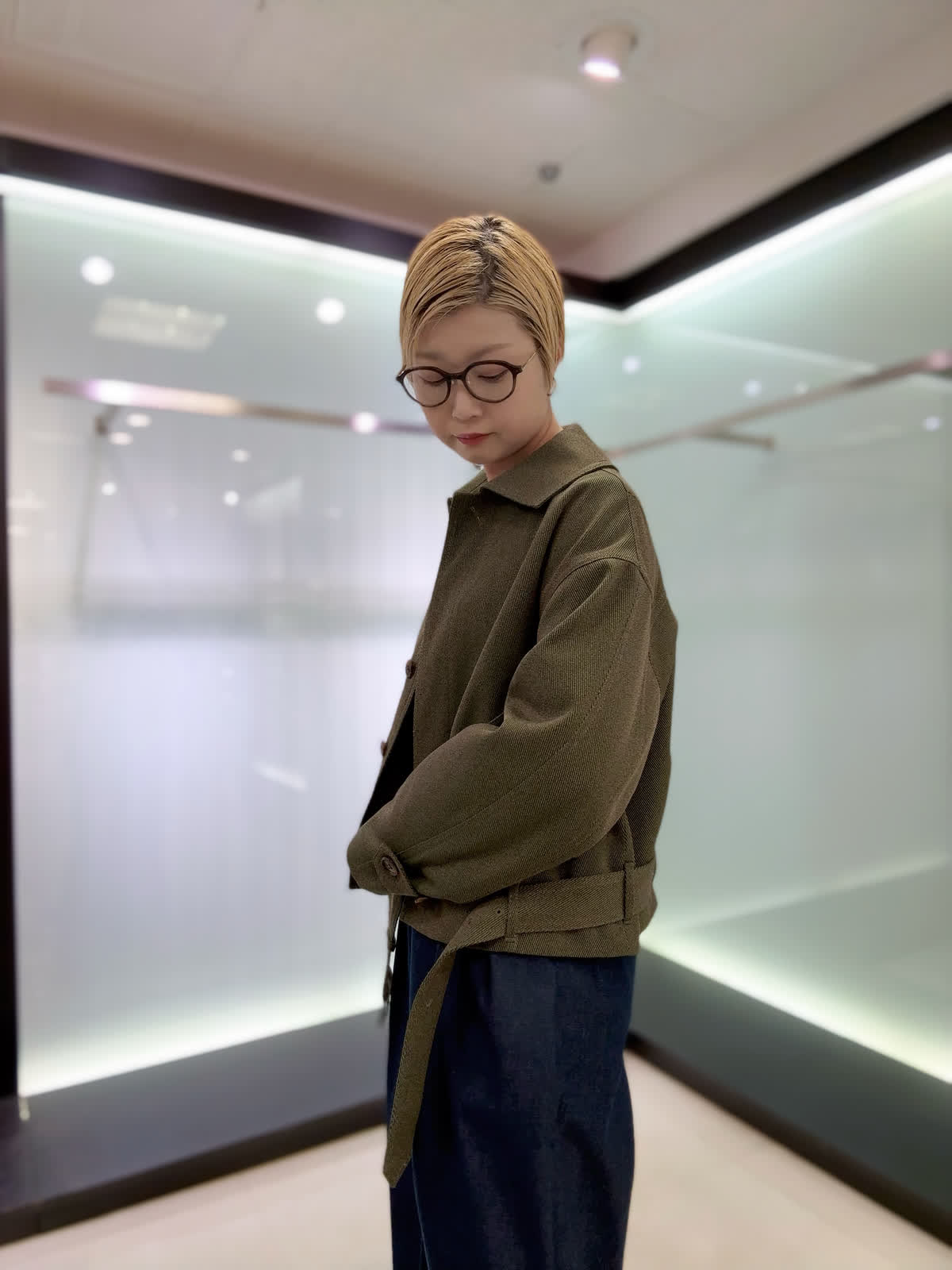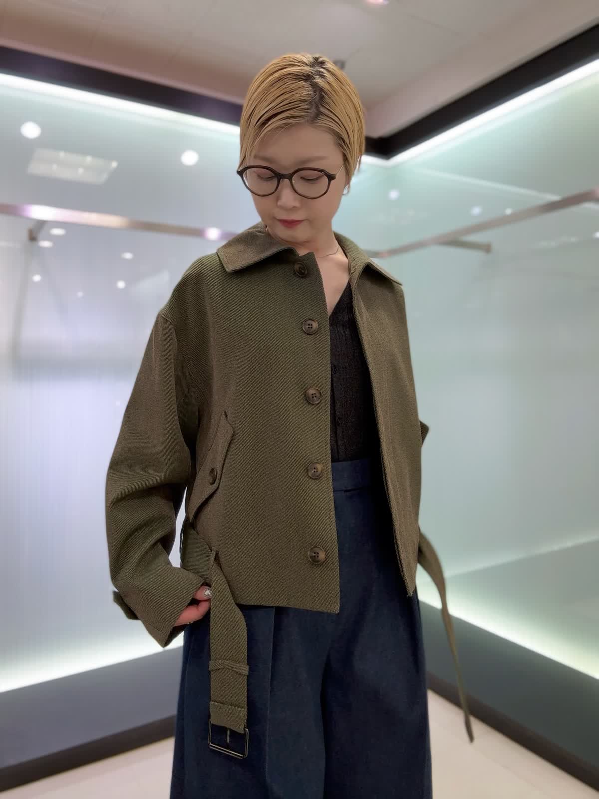 【着用サイズ】ブルゾン:カーキ/9号 カーディガン : ブラック/9号 デニム : ダークネイビー/7号 【三尋木奈保さん×INED 】コラボブルゾン♪軽い着心地と袖にゆとりがあるので厚手のニットも着られます。裾と袖口のベルトデザインもポイント。あえて、ベルトを締めずに垂らしたまま着るのもオシャレで雰囲気が出ますよ♪