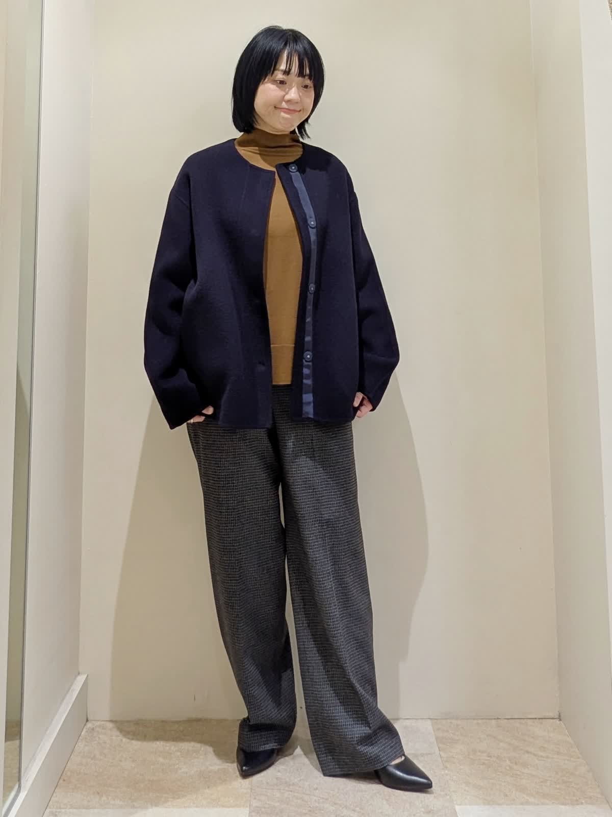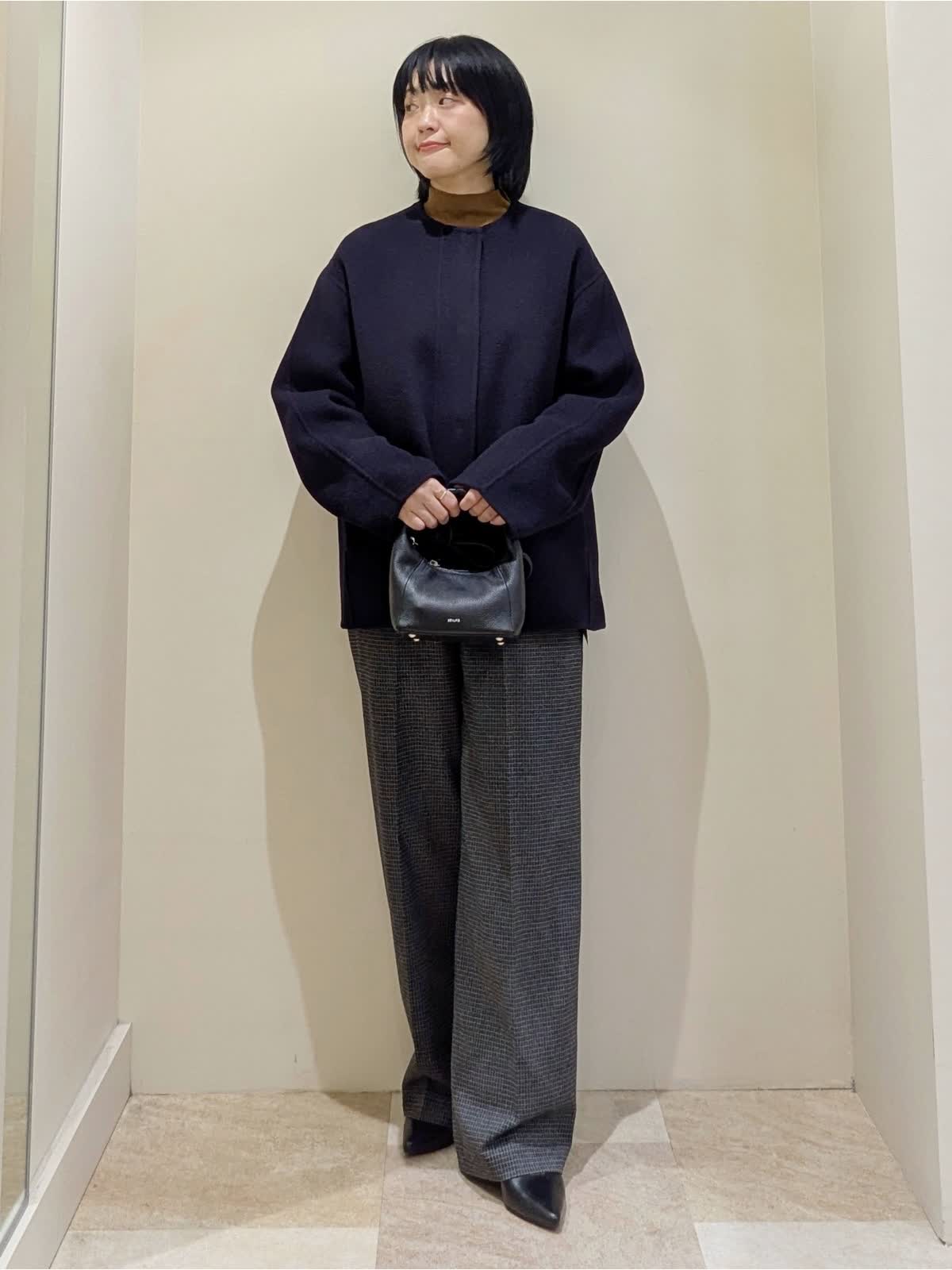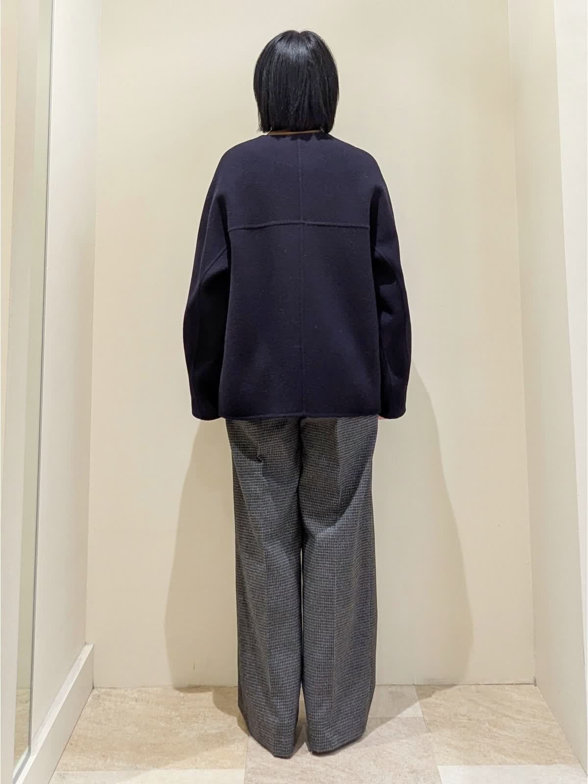 【着用カラー】コート/ネイビー、ニット/キャメル、パンツ/チャコールグレー 【着用サイズ】コート/9号、ニット/フリー、パンツ/9号 『定番アイテムスタイル』ロングシーズン着回し可能なリバーコートは、軽くて柔らかく暖かな素材感。袖は折り返し調整可能。滑らかで高級感のあるハイゲージニットにオリジナルチェックのパンツ。定番アイテムもシルエットが更新しているので、洗練された雰囲気になります。