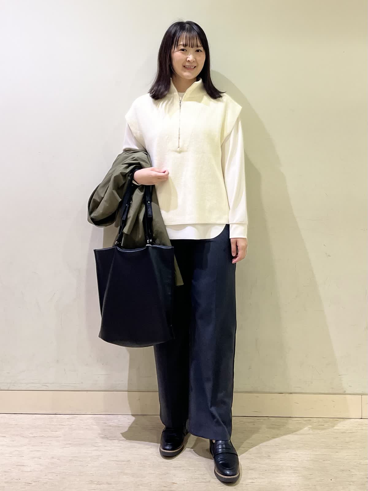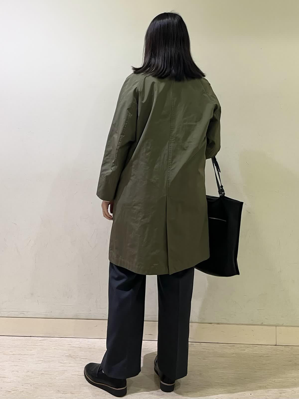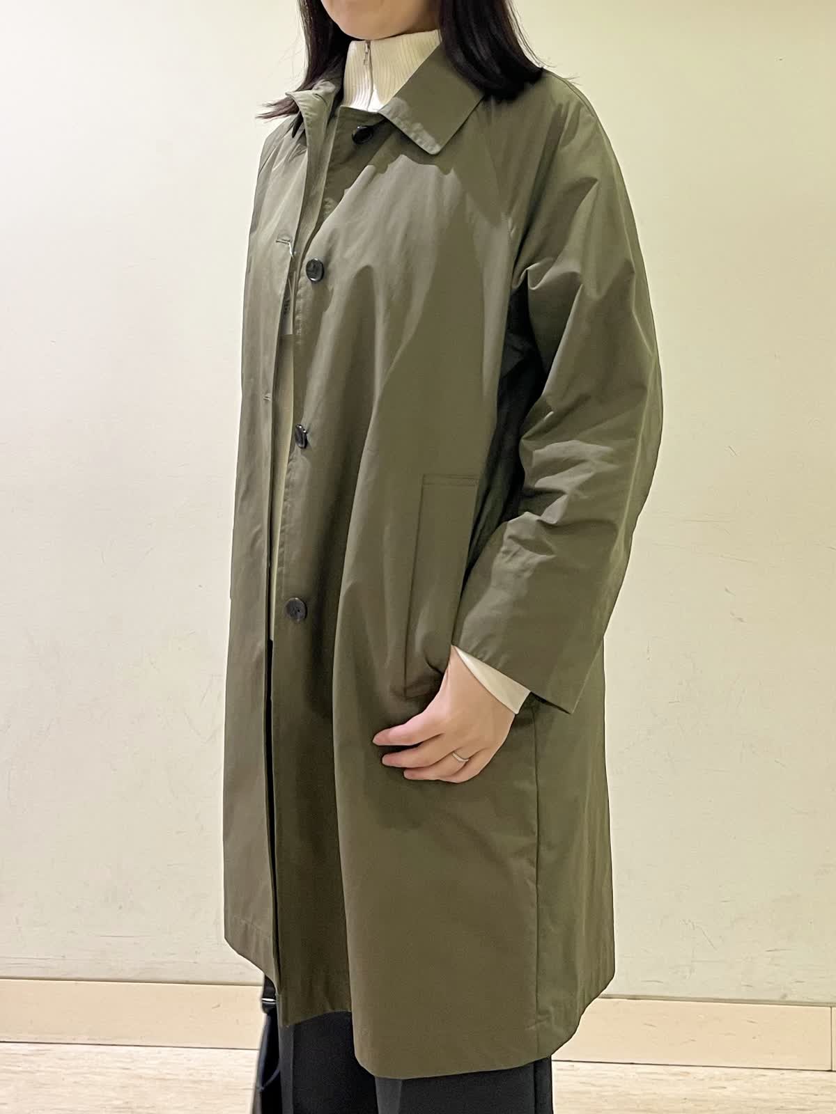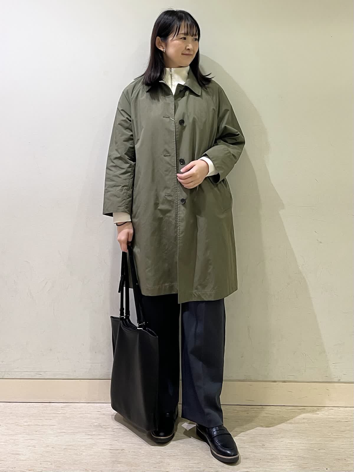 【着用カラー/サイズ】コート:カーキ/フリー ニットジレ:オフホワイト/フリー カットソー:アイボリー/フリー パンツ/ミディアムグレー:11号 お出かけコーデ。定番のステンカラーコートは、雰囲気の出るカーキをチョイス。ラグラン袖でゆったり着れます。中にジレを重ね着しても、まだゆとりがあります。寒暖差がある時期便利なジレは、インナー次第で長くお召しいただけます。ストレートのパンツはウエスト総ゴムで楽ちんです。