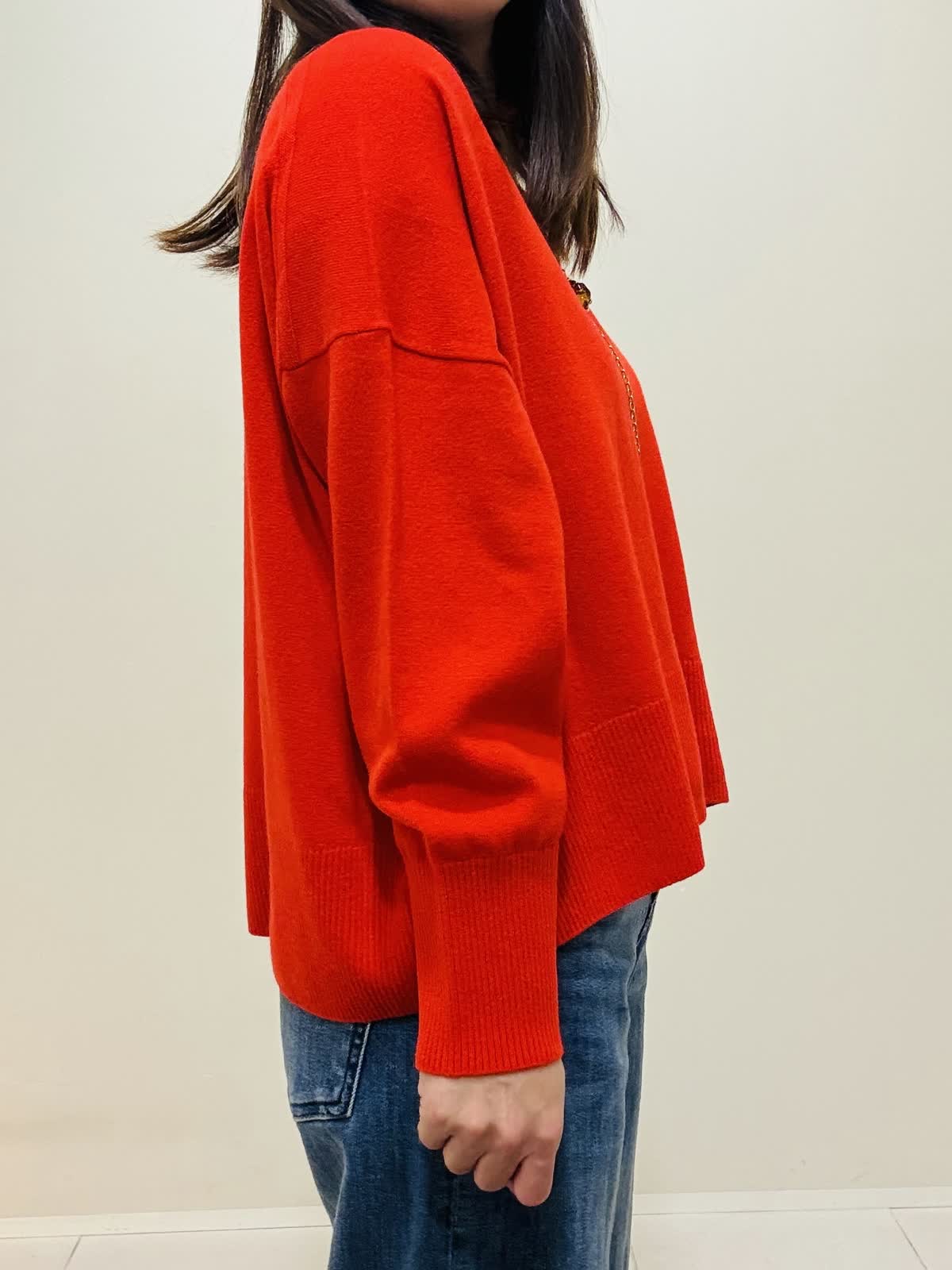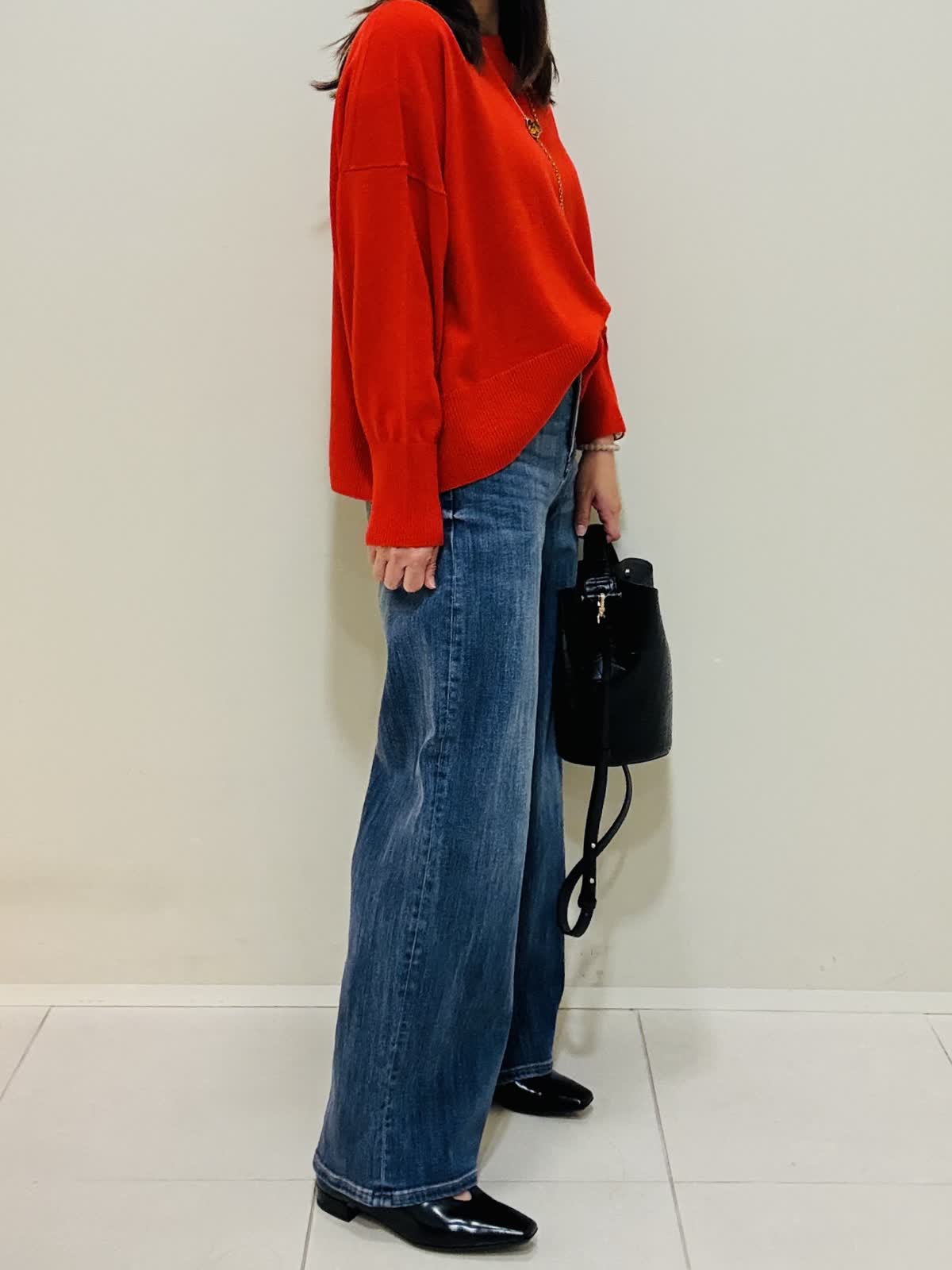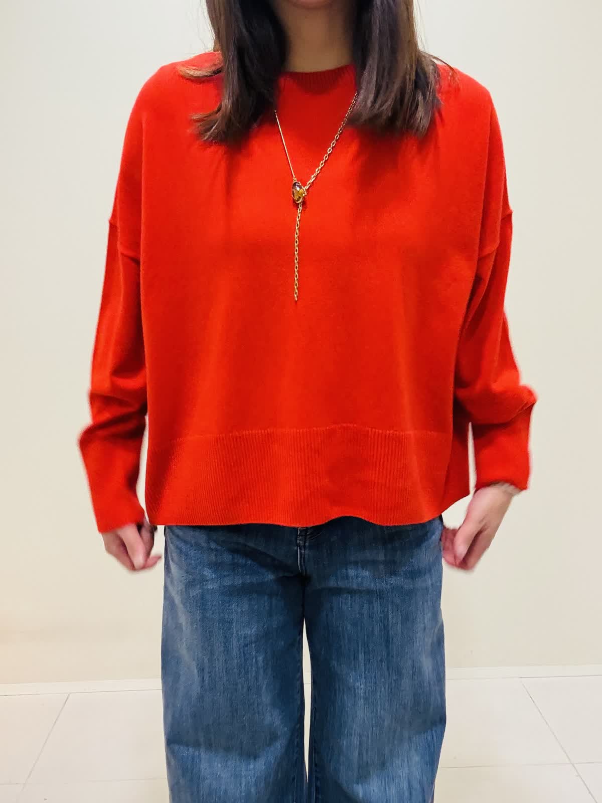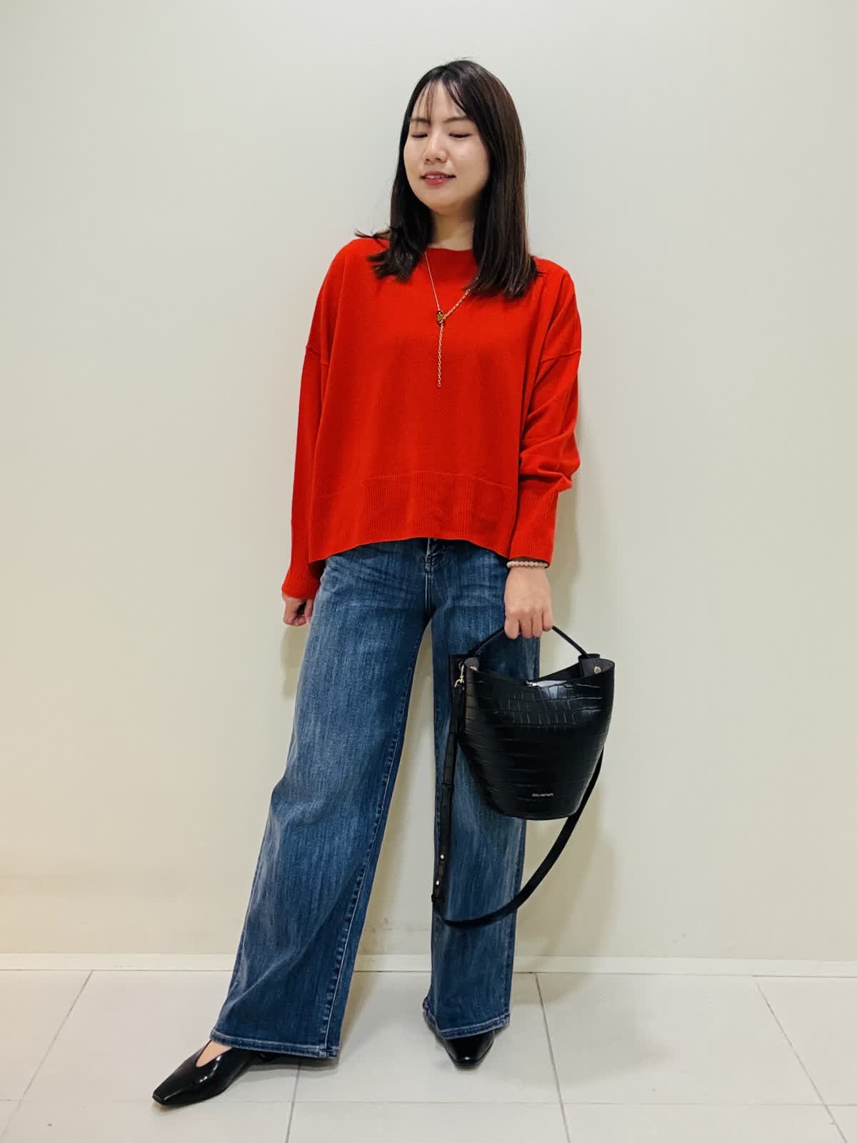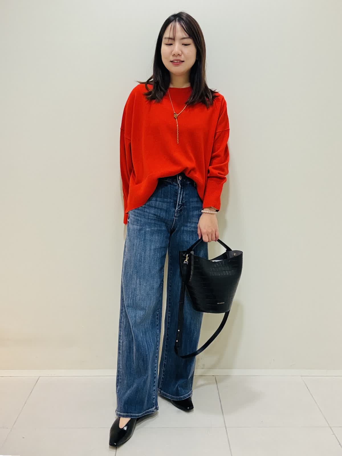 【着用サイズ】カーディガン:ネイビー:9号サイズ ニット:シュイロ:9号サイズ デニムパンツ:インディゴ:9号サイズ 『お出かけラフスタイリング』 デニムに綺麗な朱色のニットでラメのカーディガンが映えるコーデです。 ニットは薄手で丸首なので着やすいです。重ね着もおすすめです。 デニムは広がり過ぎないスッキリとしたシルエットです。 カーディガンはざっくりと編まれており、ツイードのような高級感もあります。ネイビーだけど、華やかな印象になります。
