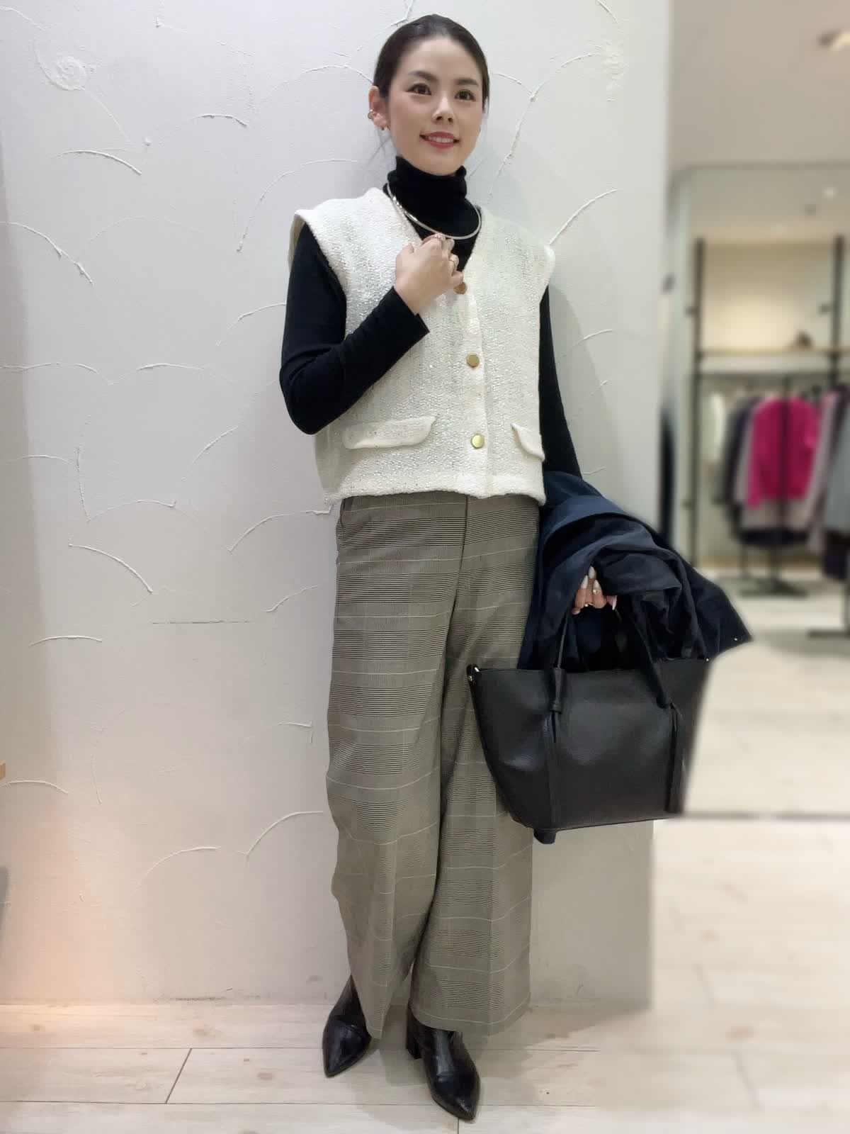秋冬の通勤コーディネート。撥水加工が施された雨の日にも安心なステンカラーコート。ラグランスリーブで袖通しが良く、インナーダウンを合わせることで冬にもお召しいただけるデザイン。シンプルになりすぎないよう、ボトムにはINEDのグレンチェックパンツを合わせました。