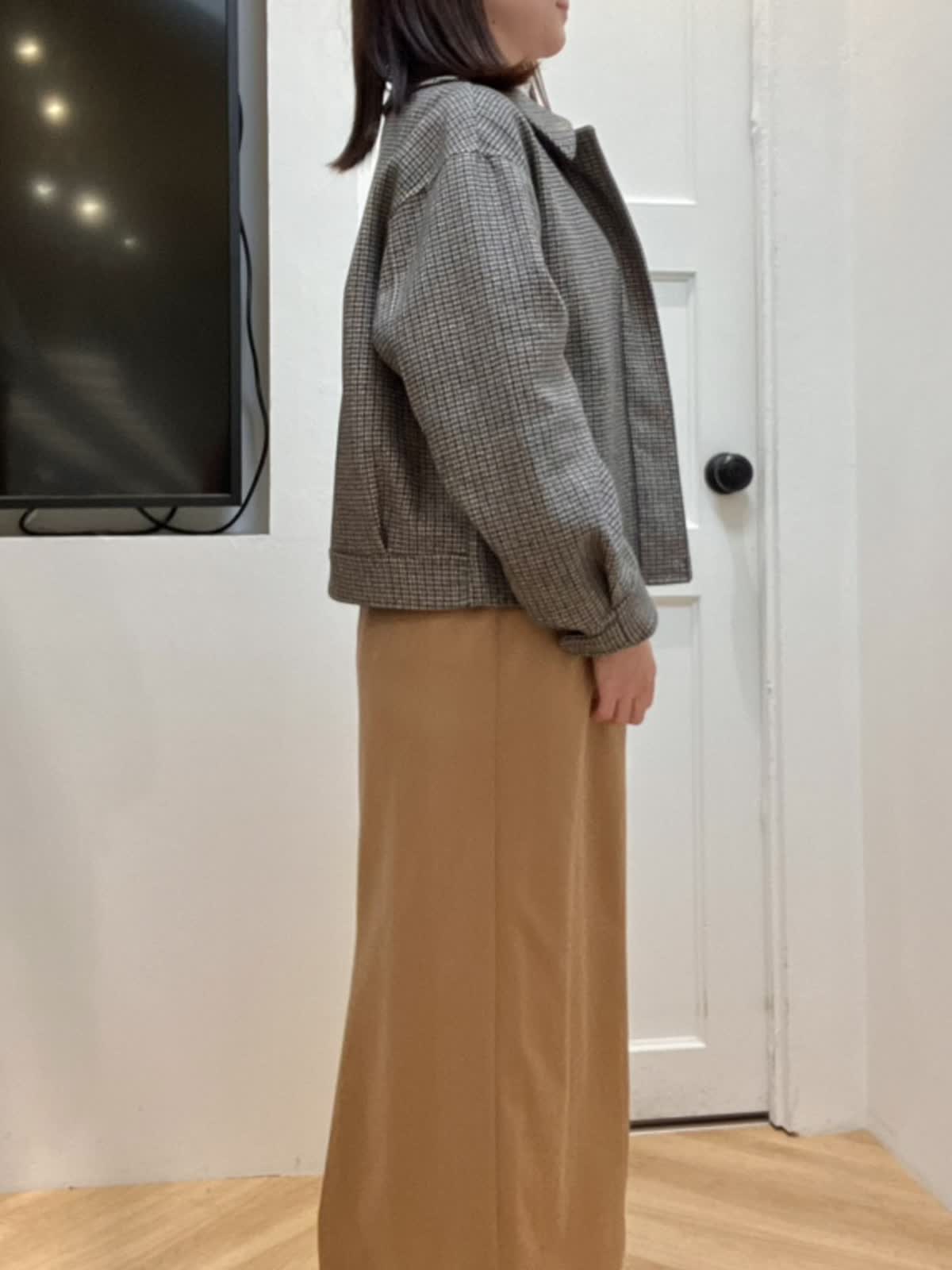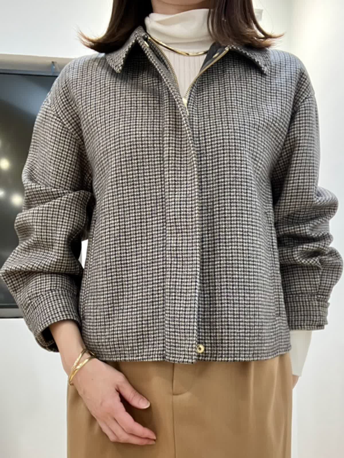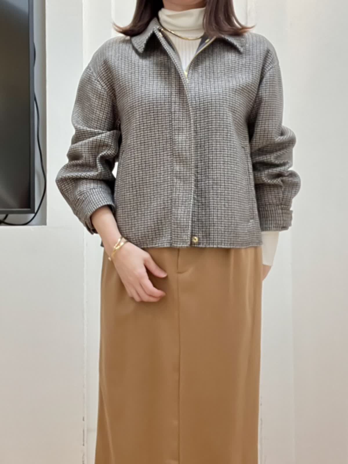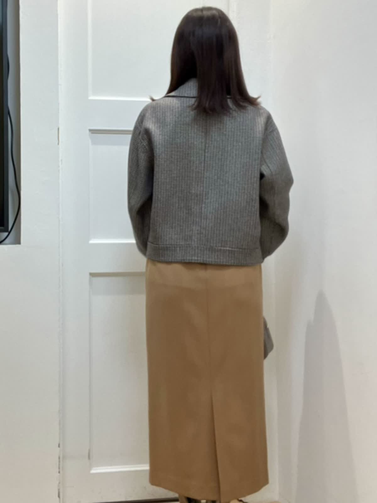 【着用サイズ】全て9号 【着用カラー】ブルゾン:柄小 ニット:オフホワイト スカート:キャメル きれいめブルゾンスタイル とっても軽くて暖かいダブルフェイスのブルゾン。中にしっかり着込めるゆとりもありながら、着丈がコンパクトでボトムとのバランスが取りやすいです。 スカートは体のラインを拾わないタイト感でスタイルUP!着心地も軽く光沢感がある素材で上品に仕上がります。