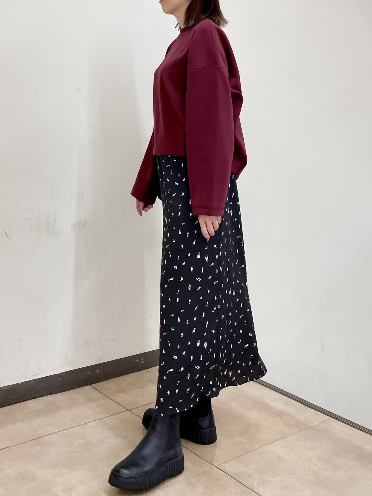 【着用サイズ】カットソー:フリー スカート:フリー 大人気STORYコラボは柔らかく起毛感のあるカットソー素材のプルオーバーです。前後差があり着るだけでコーディネートがまとまる丈感です。