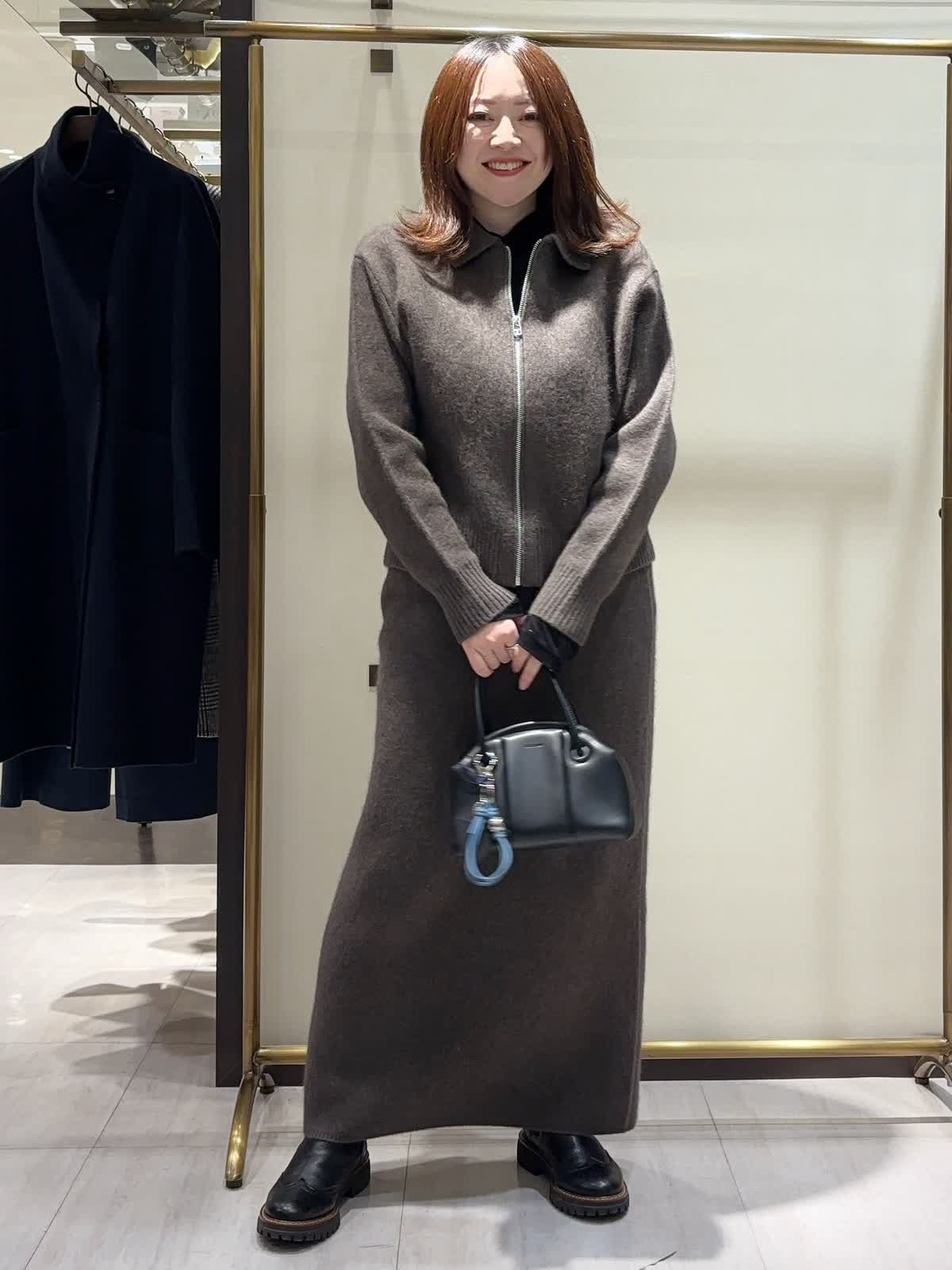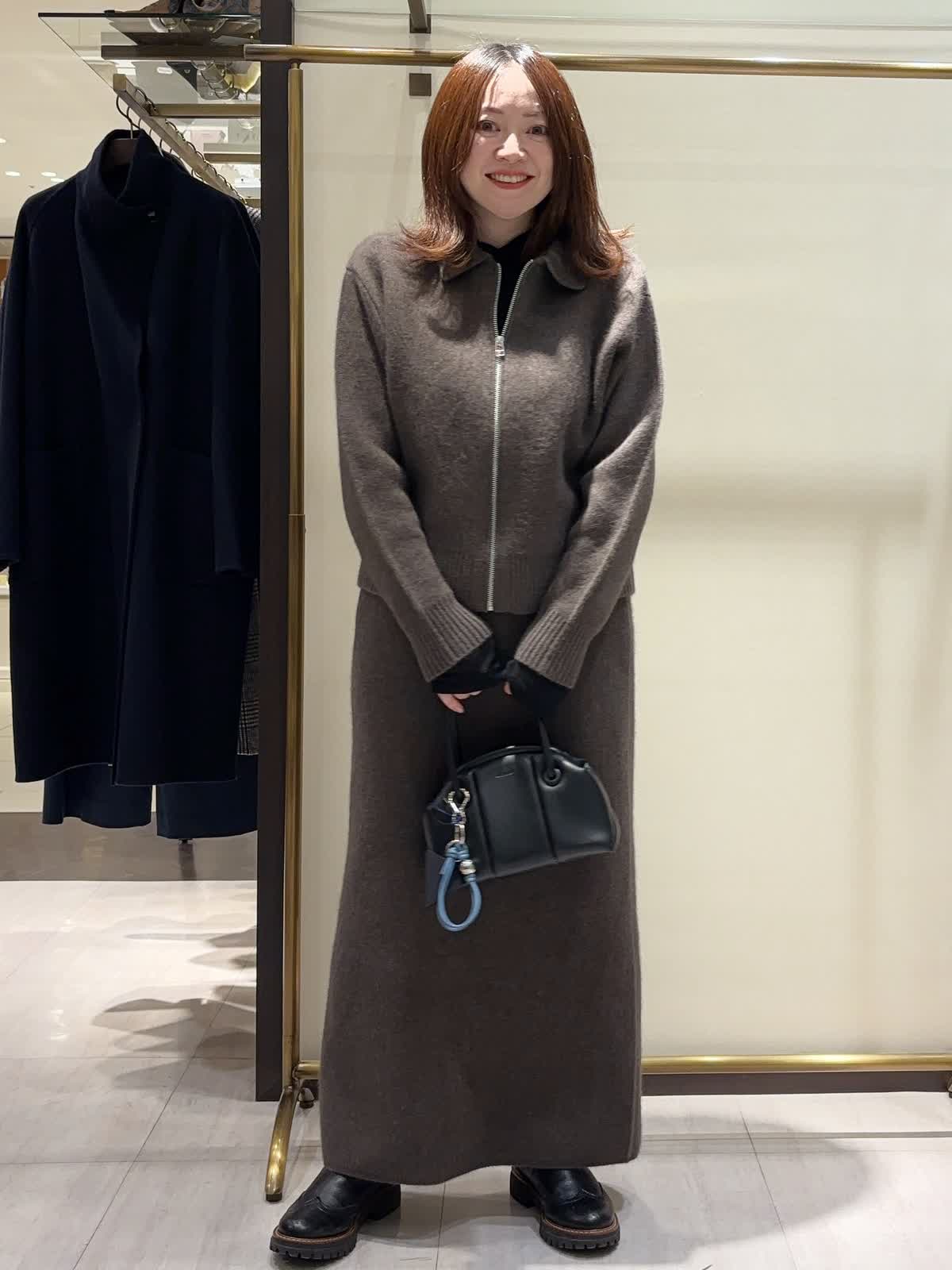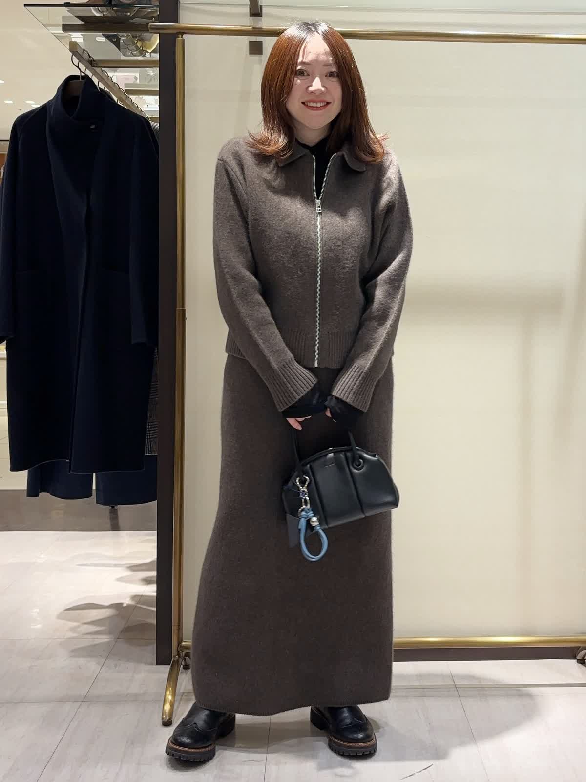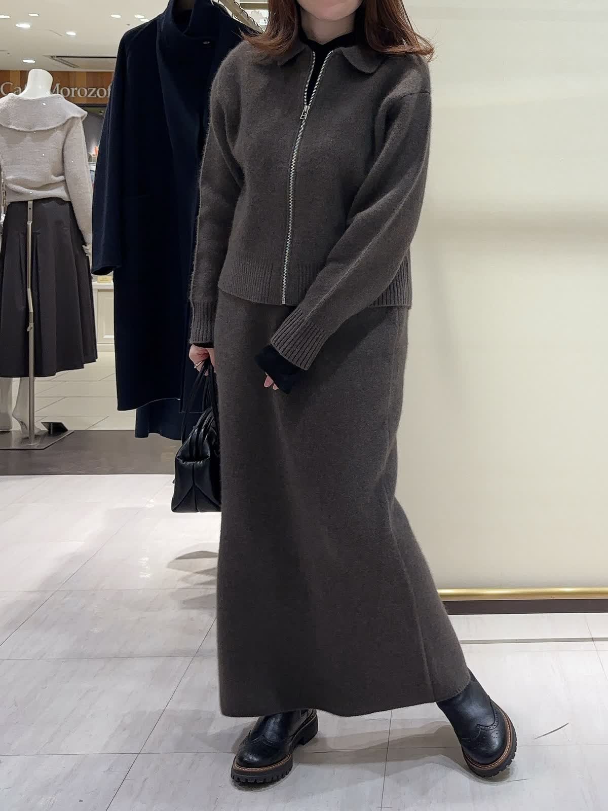 【着用サイズ】 全て9号 【着用カラー】 ニット、スカート: ブラウン カットソー:ブラック これからの時期のお出かけにオススメの大人カジュアルスタイリング。 リラクシーな雰囲気漂うジップアップのニットアップ。 程よくゆとりのあるシルエットとロング丈で、抜け感がありながらも上品な印象に。 ダークトーンでまとめることで、洗練された冬のワントーンスタイルに仕上がります。