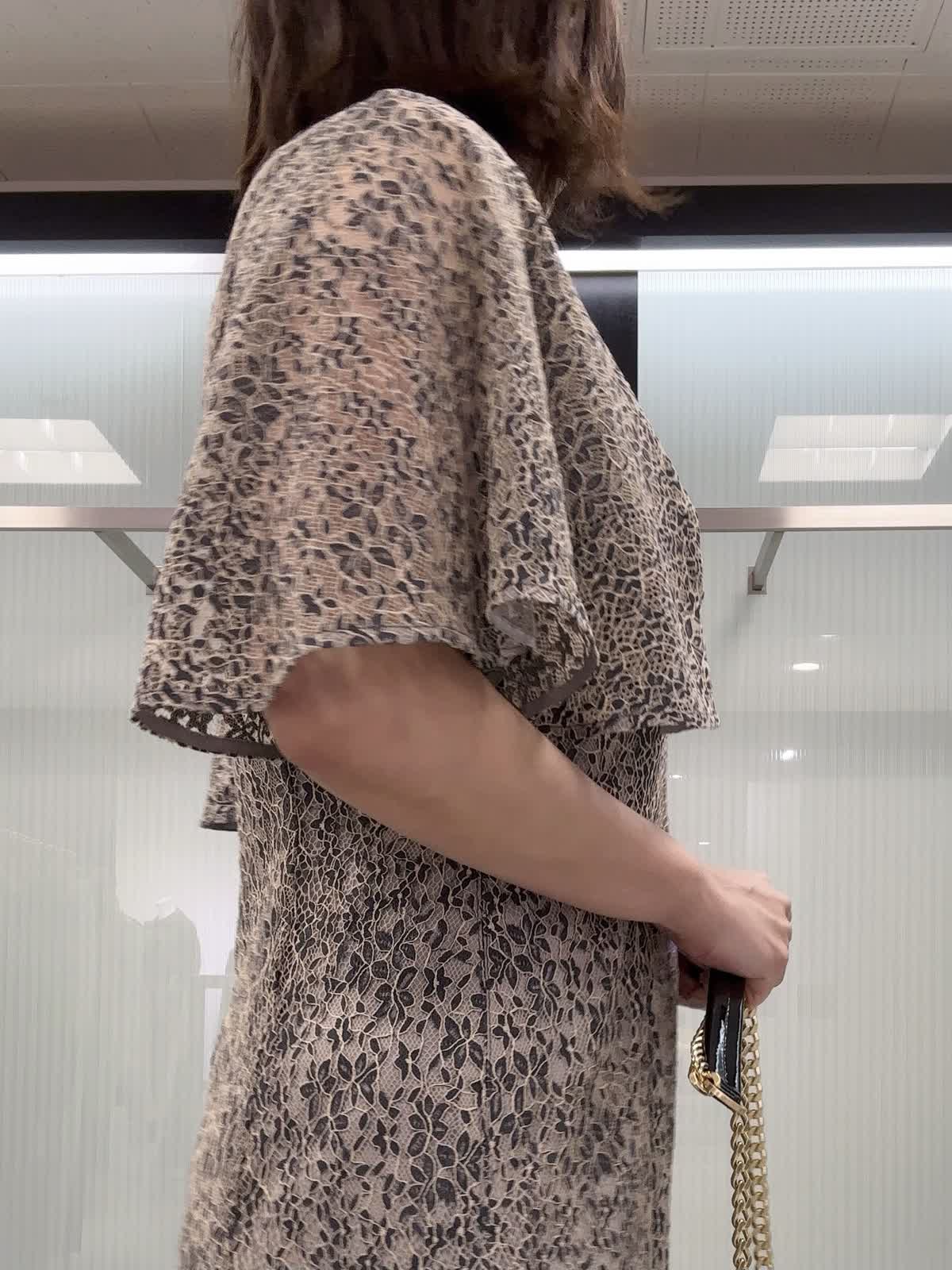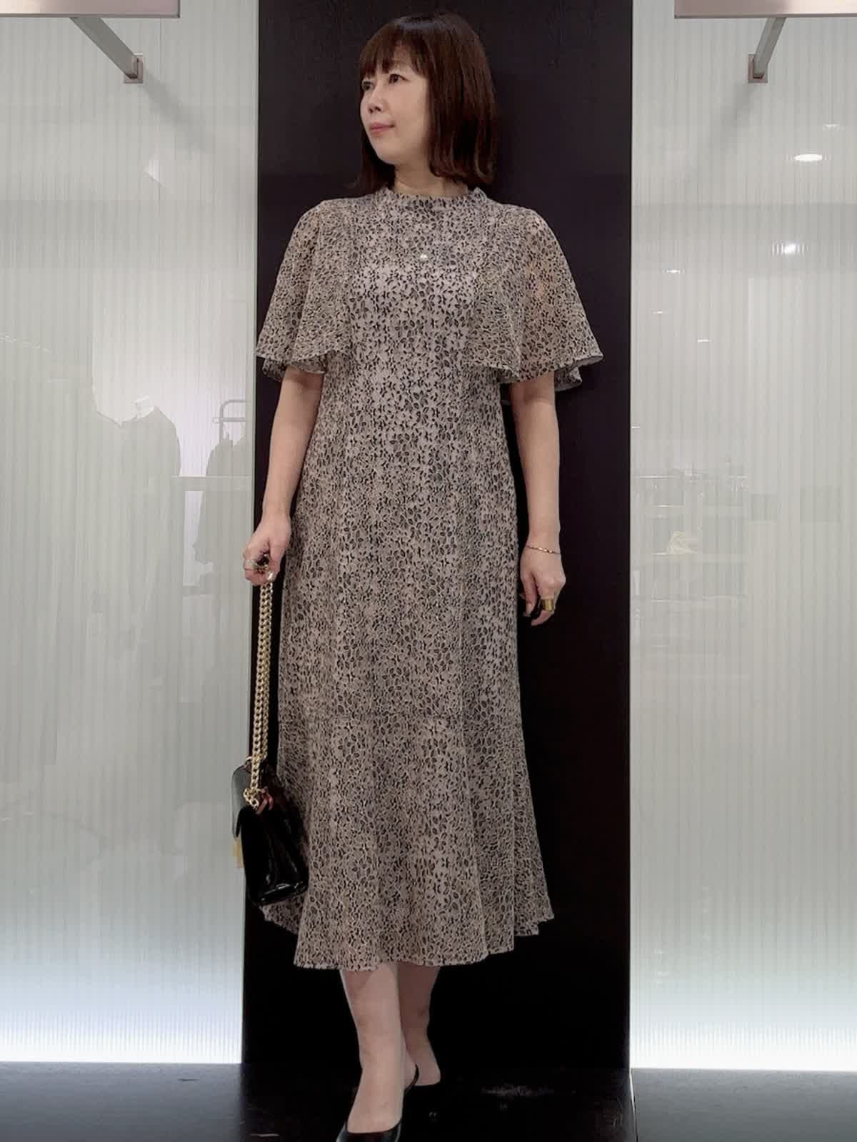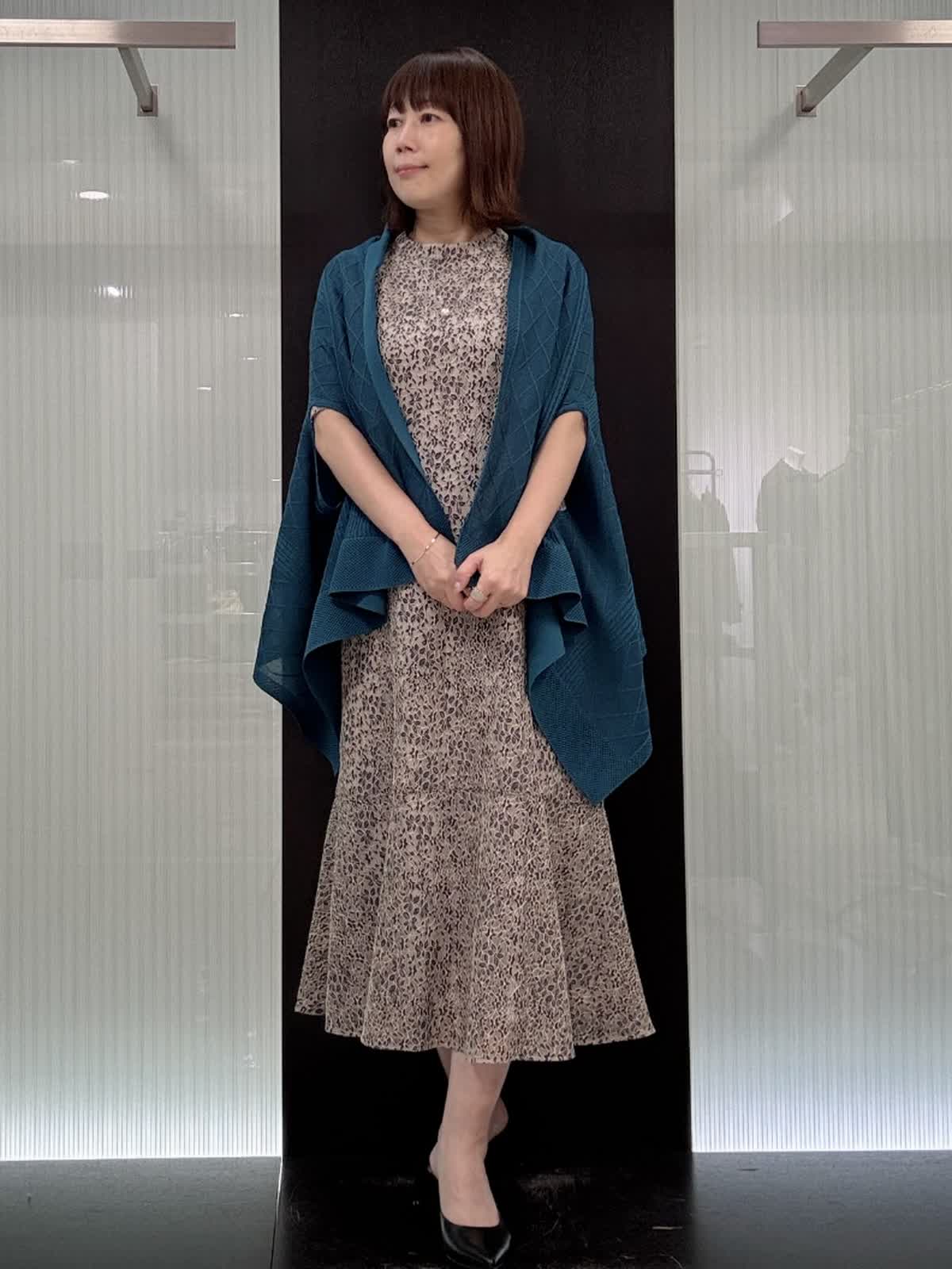 【着用サイズ】9号サイズ 【着用カラー】ネイビー 肌の露出が控えめです。フレアーの肩布は気になる二の腕をさり気なくカバーしながら、肘やウエストが華奢に見える絶妙な丈です。