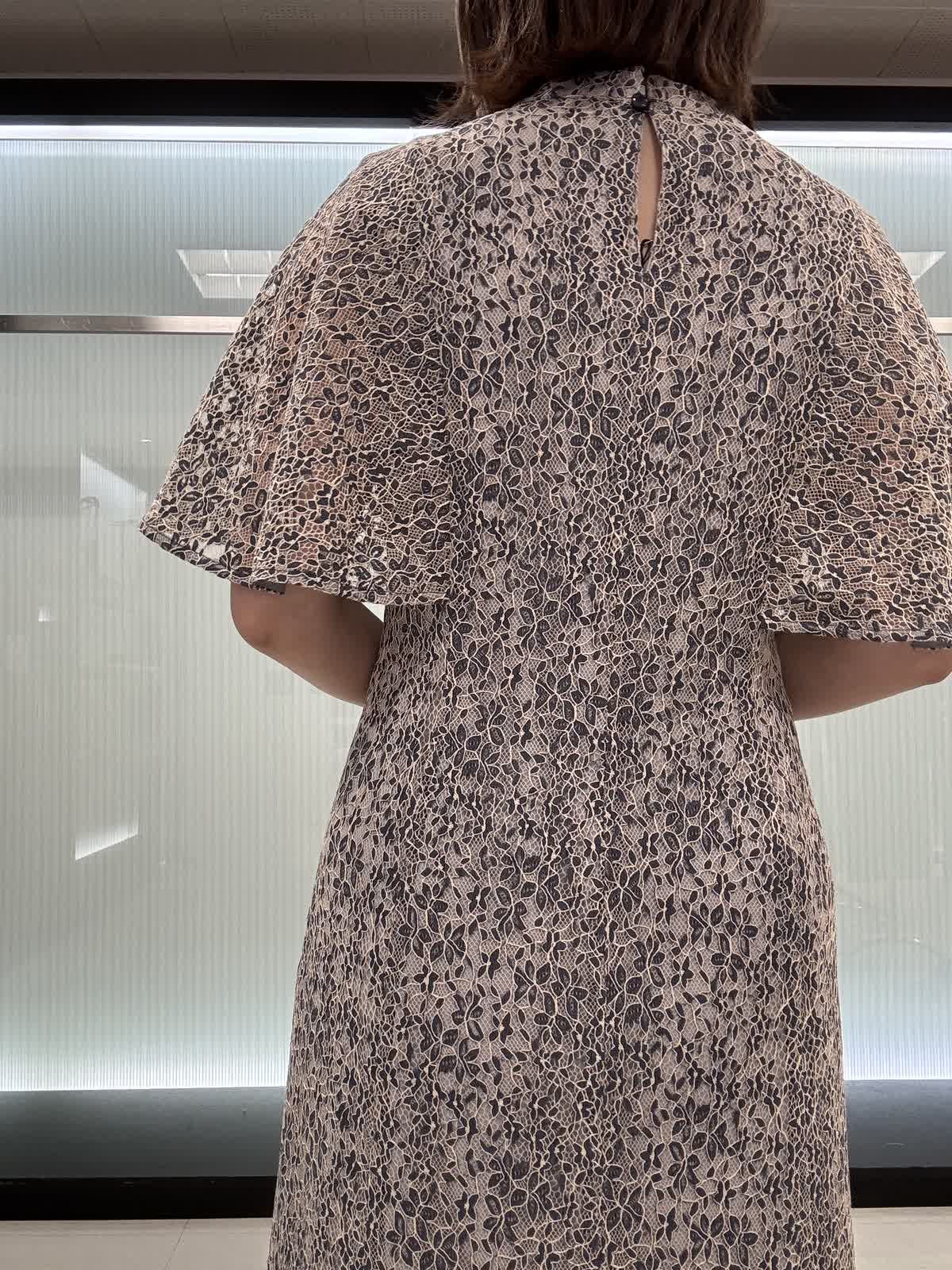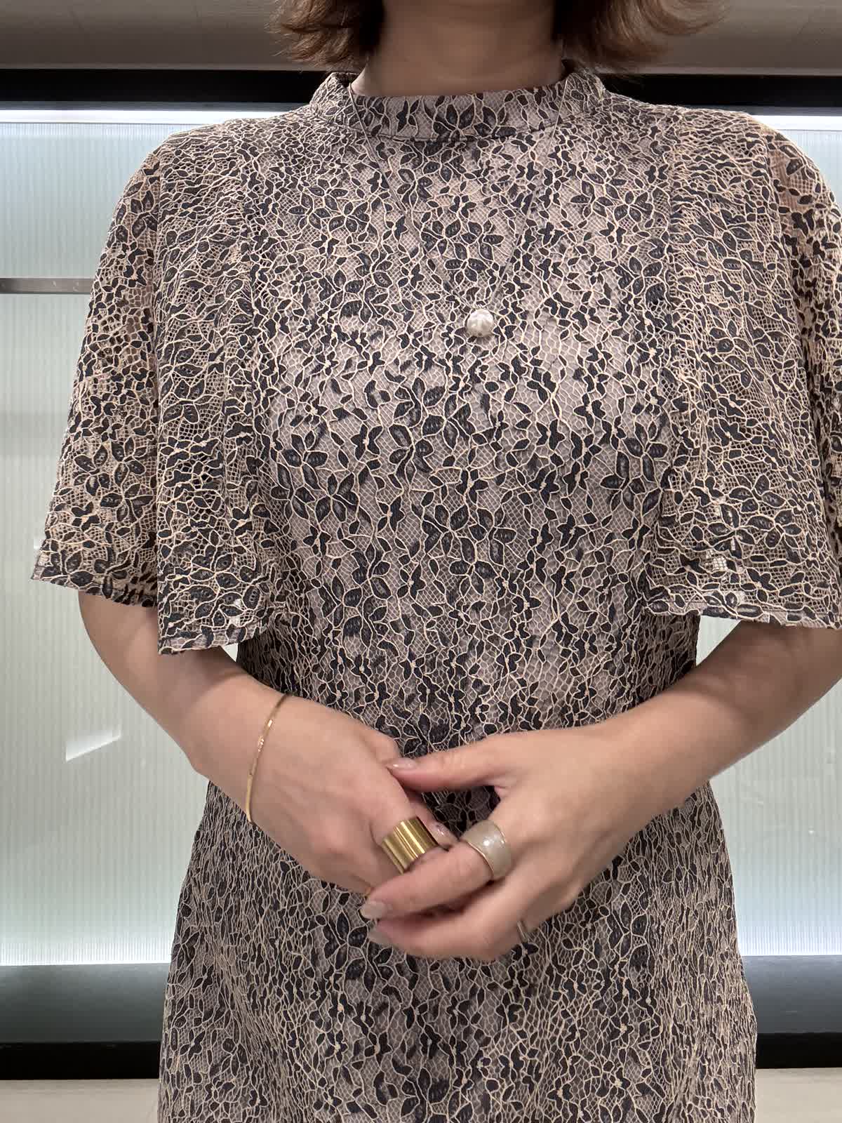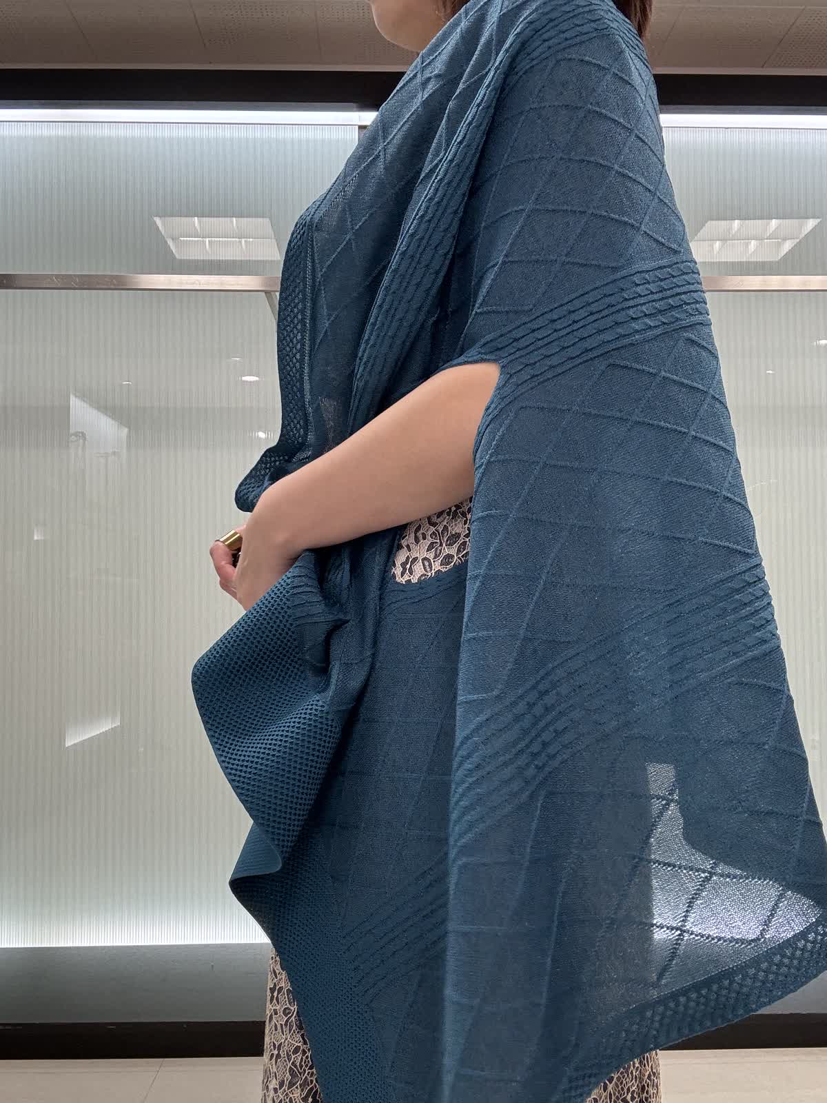 【着用サイズ】9号サイズ 【着用カラー】ネイビー 肌の露出が控えめです。フレアーの肩布は気になる二の腕をさり気なくカバーしながら、肘やウエストが華奢に見える絶妙な丈です。