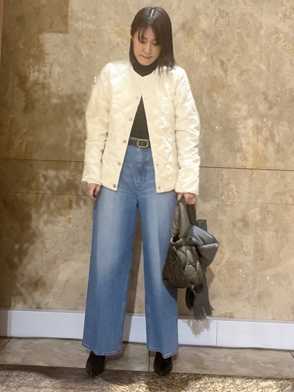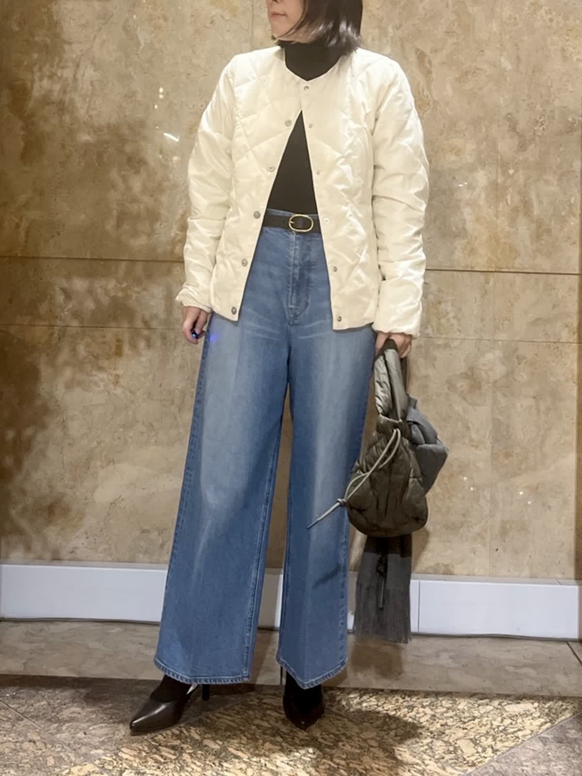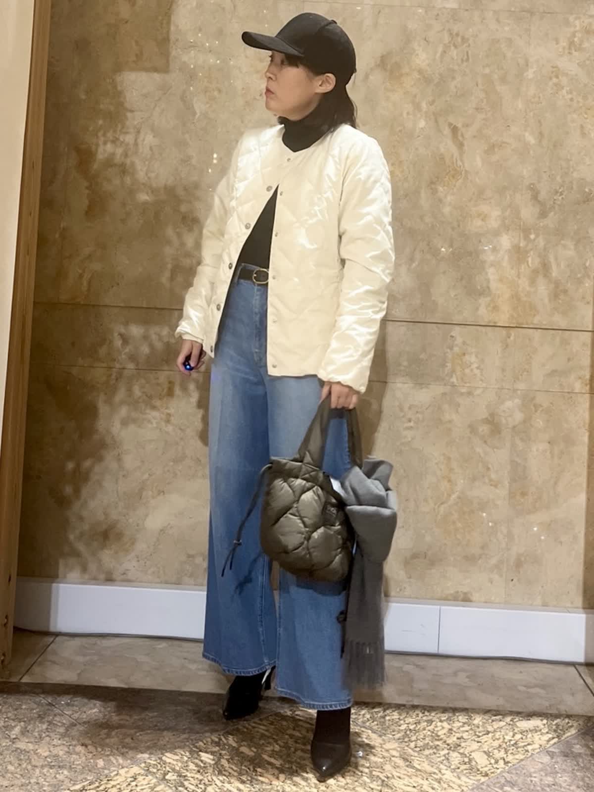 【着用サイズ/カラー】ダウン:9号/ホワイト デニム:9号/ブルー カットソー:13号/ブラック TAIONダウンは毎年人気の定番アイテムで人気のホワイトを着用しました。 ショート丈で車移動の方には重宝していただけます!ダウン95%入っているのが嬉しいポイント! デニムと合わせてふらっとお出かけスタイリング。カラーバリエーションも豊富なのでお気に入りの一枚を見つけてください。