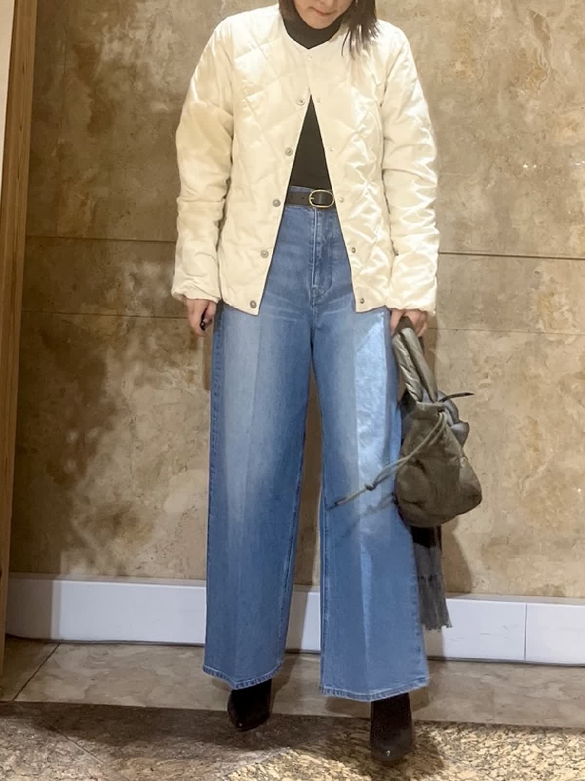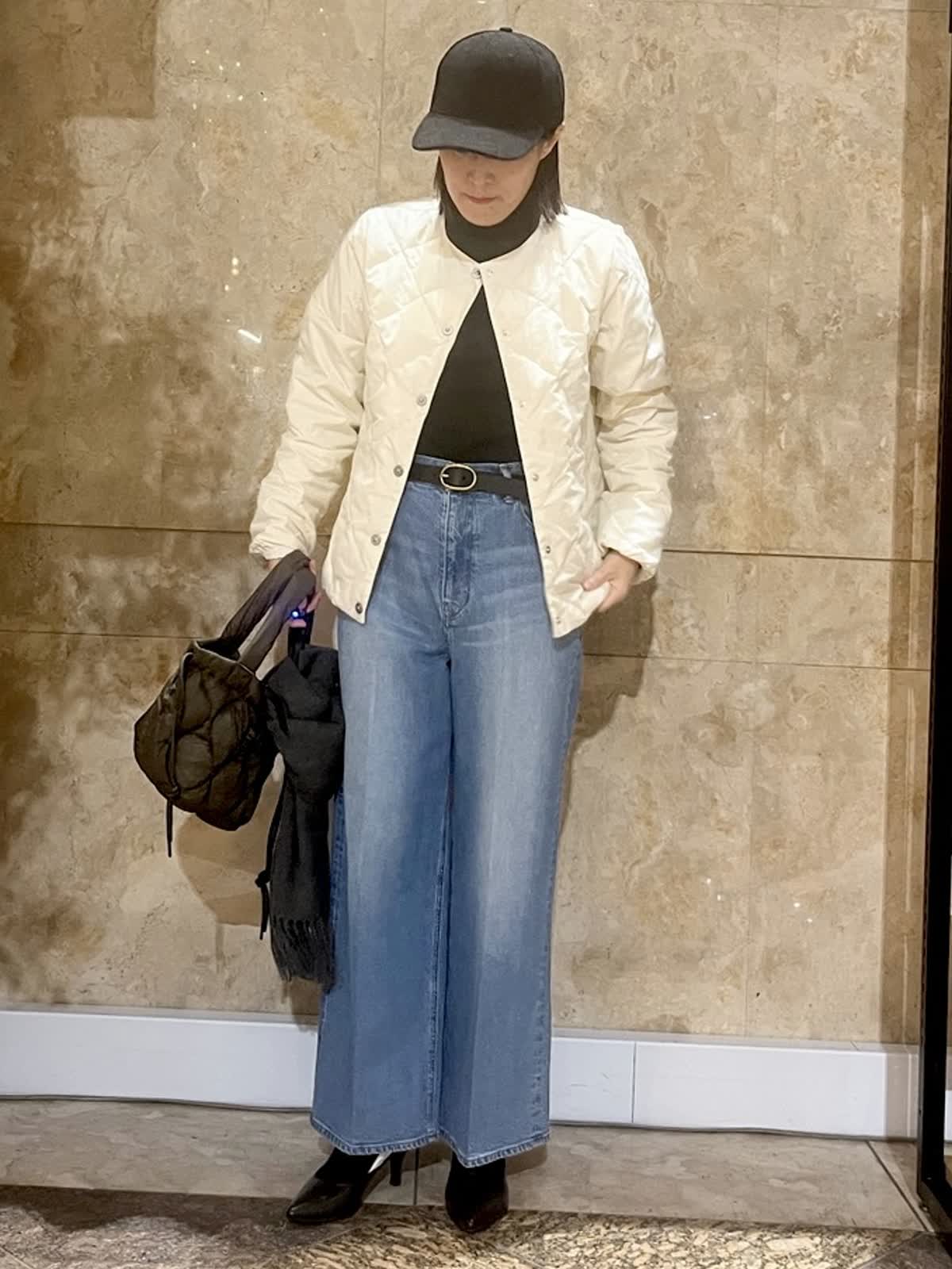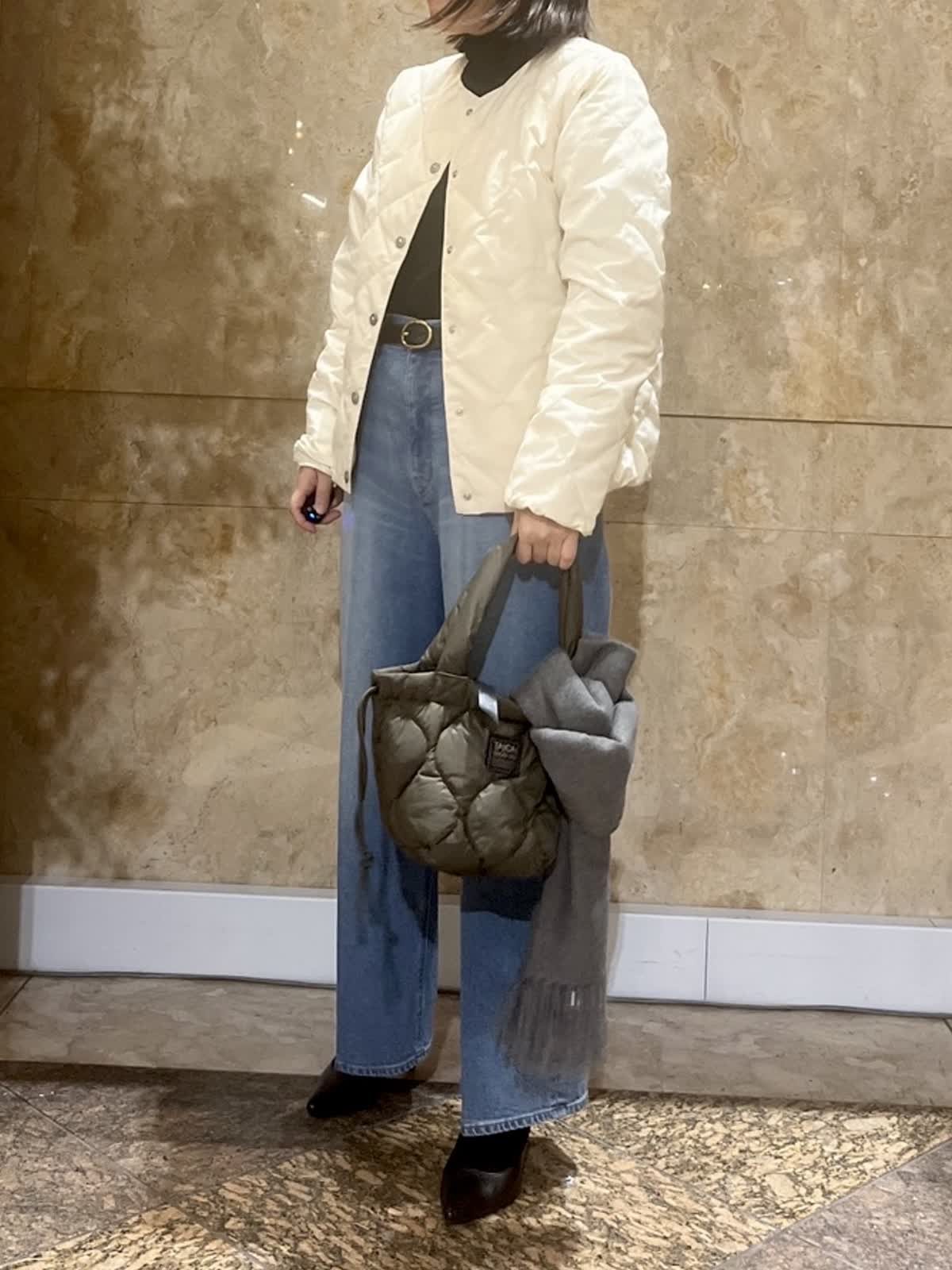 【着用サイズ/カラー】ダウン:9号/ホワイト デニム:9号/ブルー カットソー:13号/ブラック TAIONダウンは毎年人気の定番アイテムで人気のホワイトを着用しました。 ショート丈で車移動の方には重宝していただけます!ダウン95%入っているのが嬉しいポイント! デニムと合わせてふらっとお出かけスタイリング。カラーバリエーションも豊富なのでお気に入りの一枚を見つけてください。