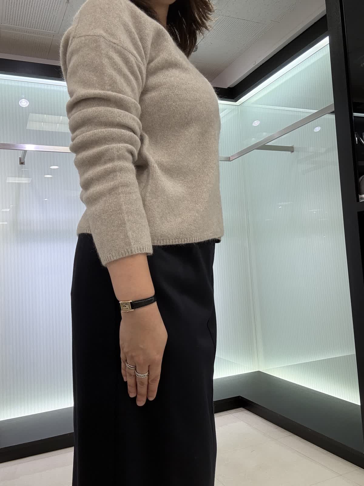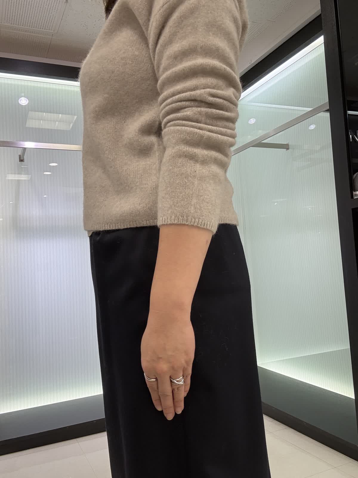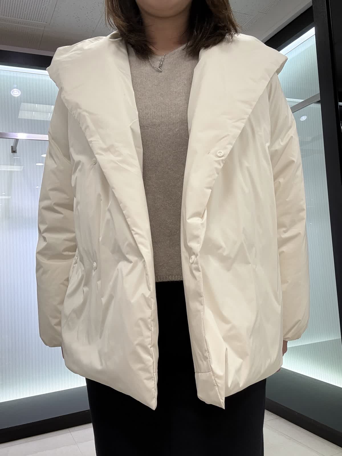 ダウン着用サイズ 9号 ショールカラータイプでフード付きのキレイめダウンになります。全体的にゆったりしているので普段11号ですが、こちらは9号でピッタリでした。軽くて暖かいです!ニット着用サイズ9号 ラクーンが入ったフワフワのVネックニットです。こちらも9号で大丈夫でした。スカート 着用サイズ11号 膝下丈の大人タイトスカート です。光沢感があり、生地も厚すぎずお仕事でもお使いいただけます。裏地付き。