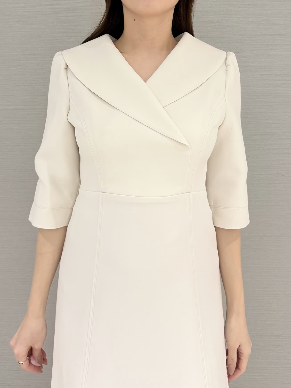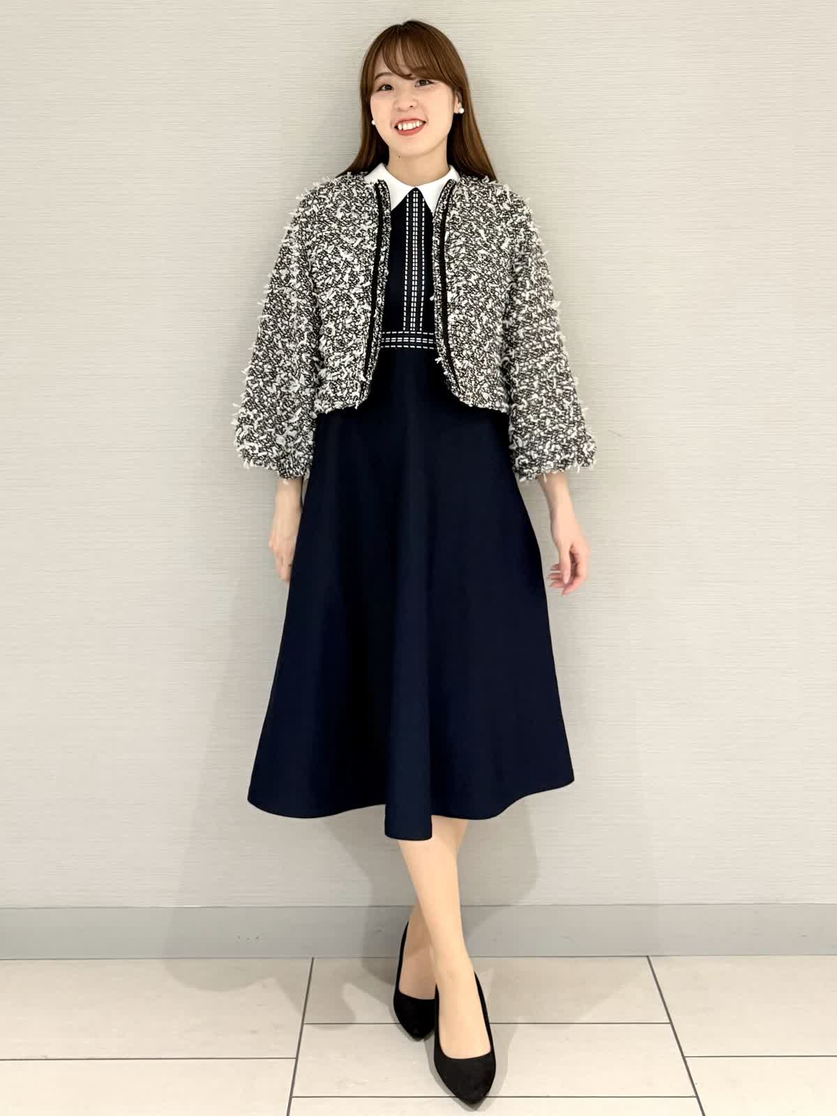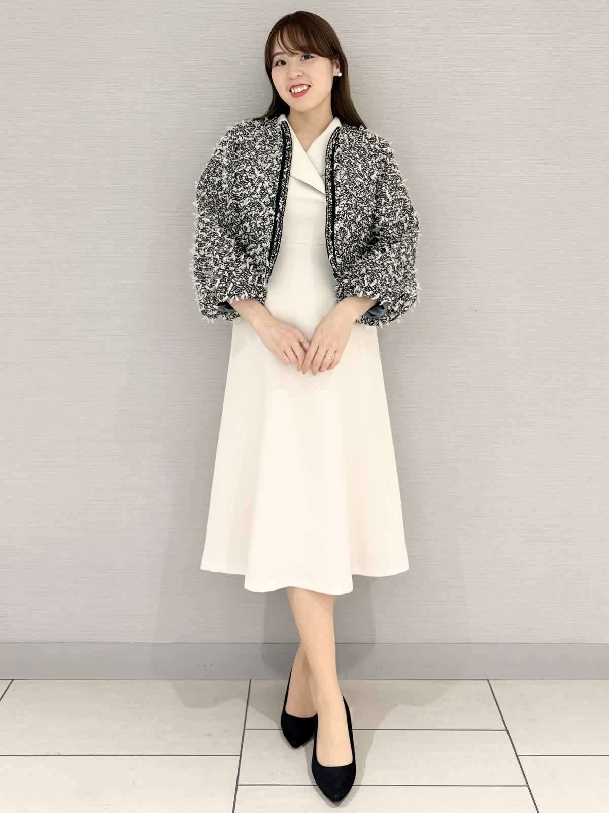 【着用サイズ/カラー】ジャケット:9号/オフホワイトワンピース:9号/オフホワイトこれからのホリデーシーズンにもオススメな華やかなコーディネート。ワンピースはお呼ばれ、お仕事、会食、七五三などきちんとしたシーンにも活躍します!ショールカラーがクラシカルな雰囲気になり、小顔効果にも◎【サイズ感】いつものサイズでちょうどよかったです。