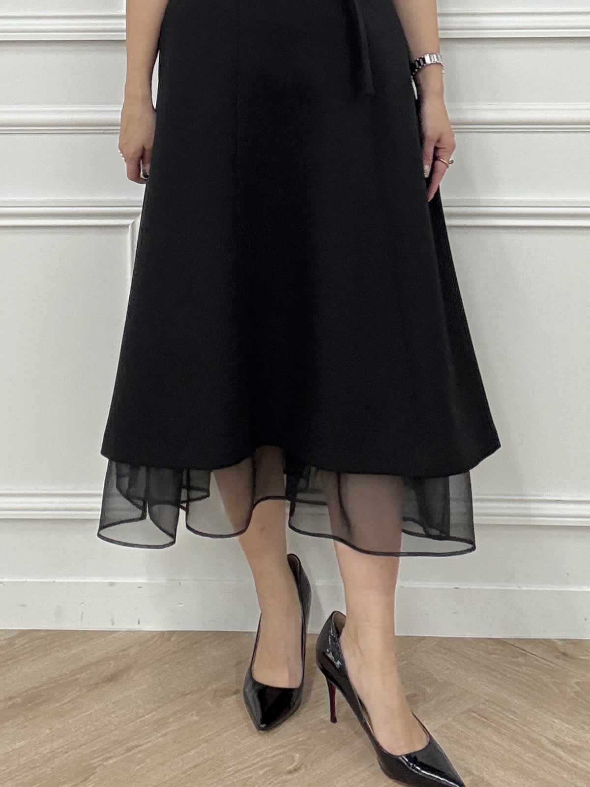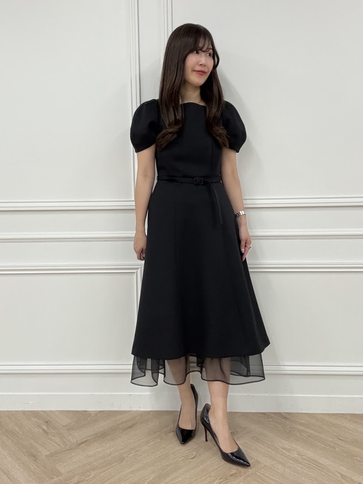 【着用アイテム】 ワンピース5号 ニット9号 曽田茉莉江さんコラボのワンピース。 艶感のある上品な素材でホリデーシーズンのお出かけにピッタリです。 華奢見えするふんわり袖に空きすぎないスクエアネックが女性らしく、裾のシアーなオーガンジーがトレンド感もプラス。 サイズは私は普段通りを選びます。