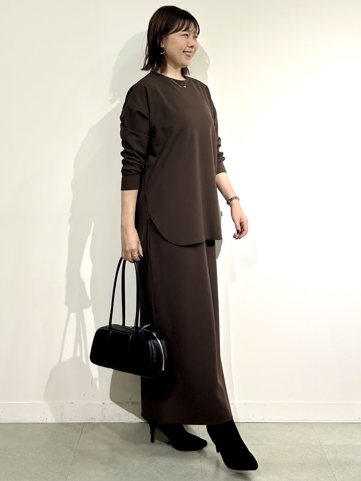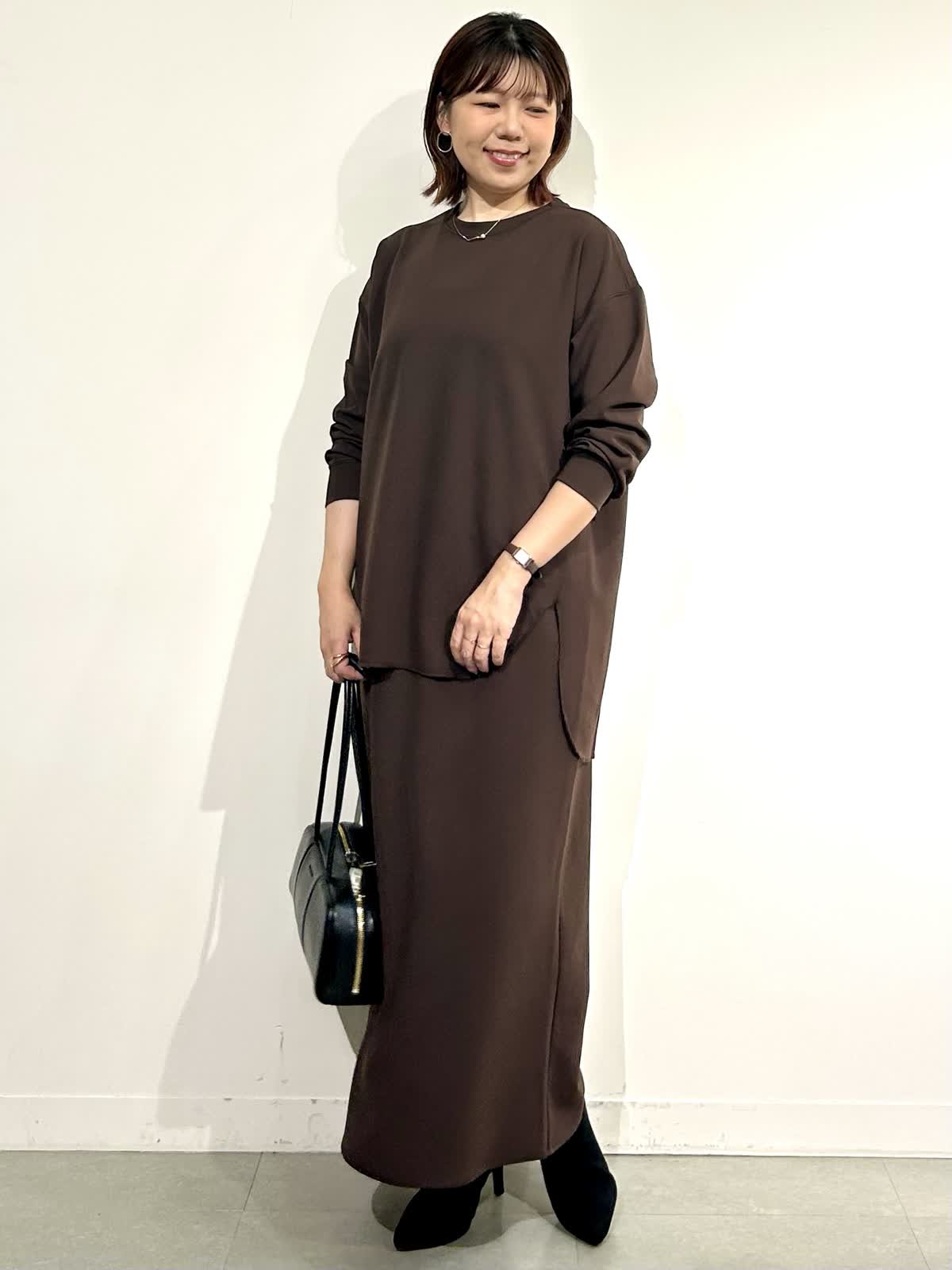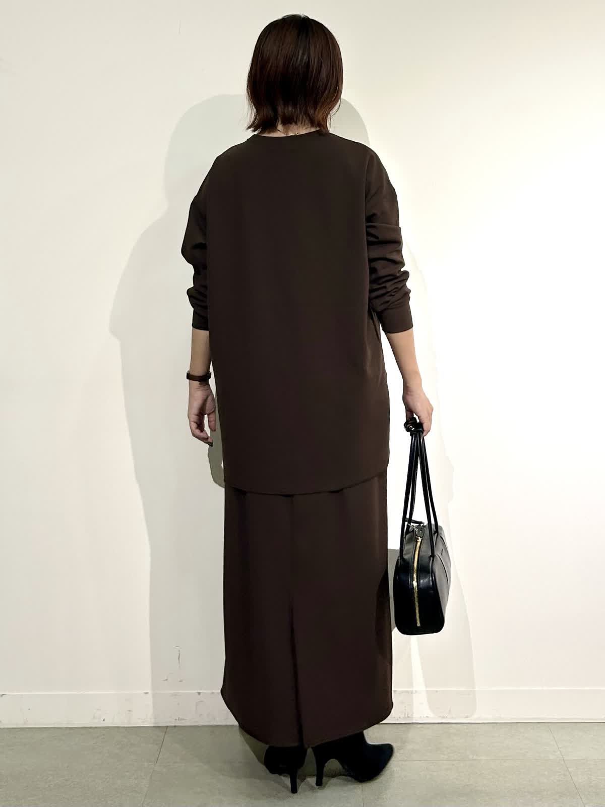 【着用サイズ】全てフリー 【着用カラー】全てブラウン らくらく着られてきちんとコーデも叶うジョーゼットセットアップは店頭でも大大大人気です。 伸縮性のある生地はシワになりにくく着心地も良いのでお客様からは「すごく着やすい!」言っていただけています。 長めトップスは体型カバーもできて、スカートはスッキリ見えるのに体型を拾いません。 スカートは苦手な方にこそ、ぜひチャレンジしていただきたいです。