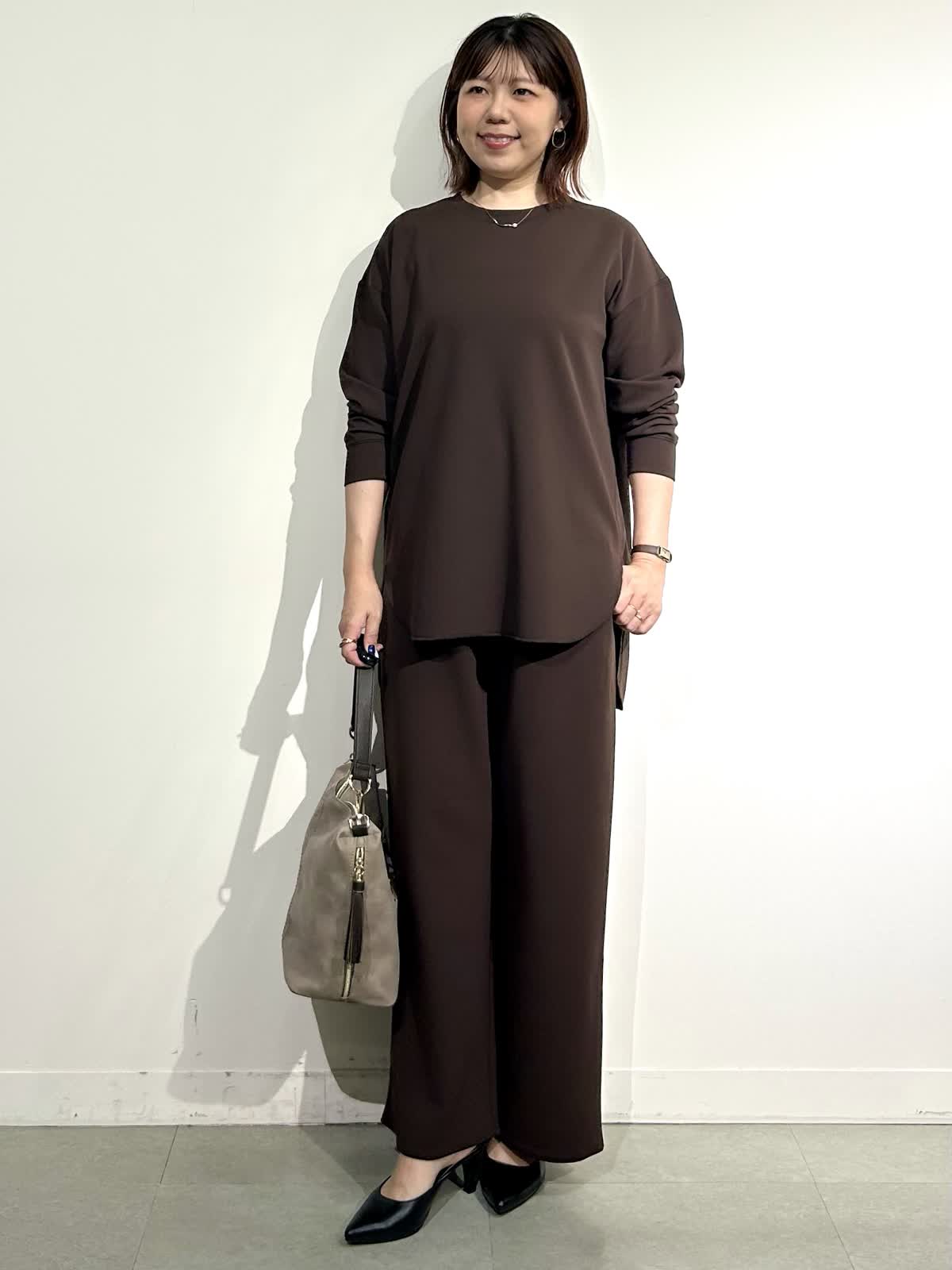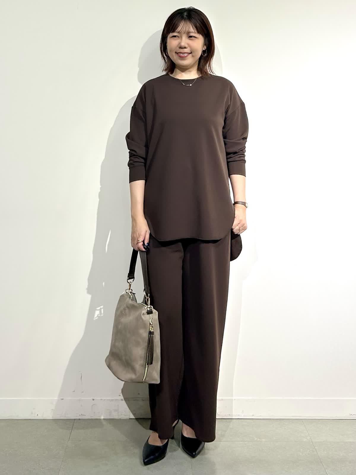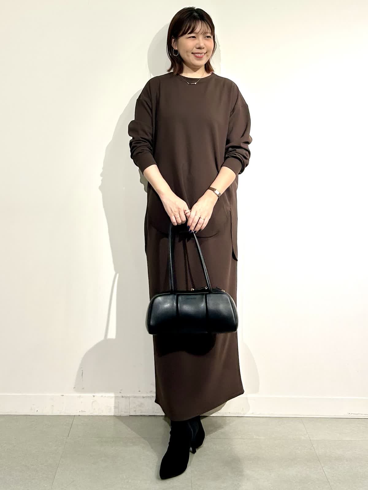 【着用サイズ】全てフリー 【着用カラー】全てブラウン らくらく着られてきちんとコーデも叶うジョーゼットセットアップは店頭でも大大大人気です。 伸縮性のある生地はシワになりにくく着心地も良いのでお客様からは「すごく着やすい!」言っていただけています。 長めトップスは体型カバーもできて、スカートはスッキリ見えるのに体型を拾いません。 スカートは苦手な方にこそ、ぜひチャレンジしていただきたいです。
