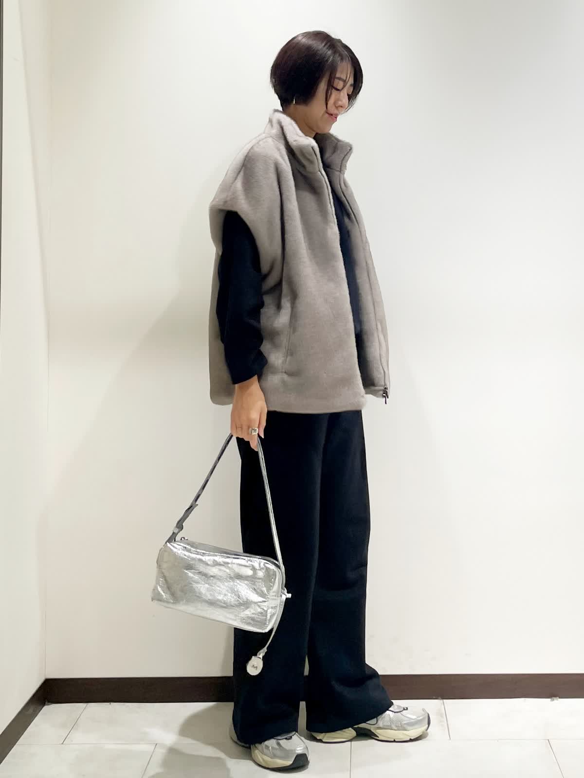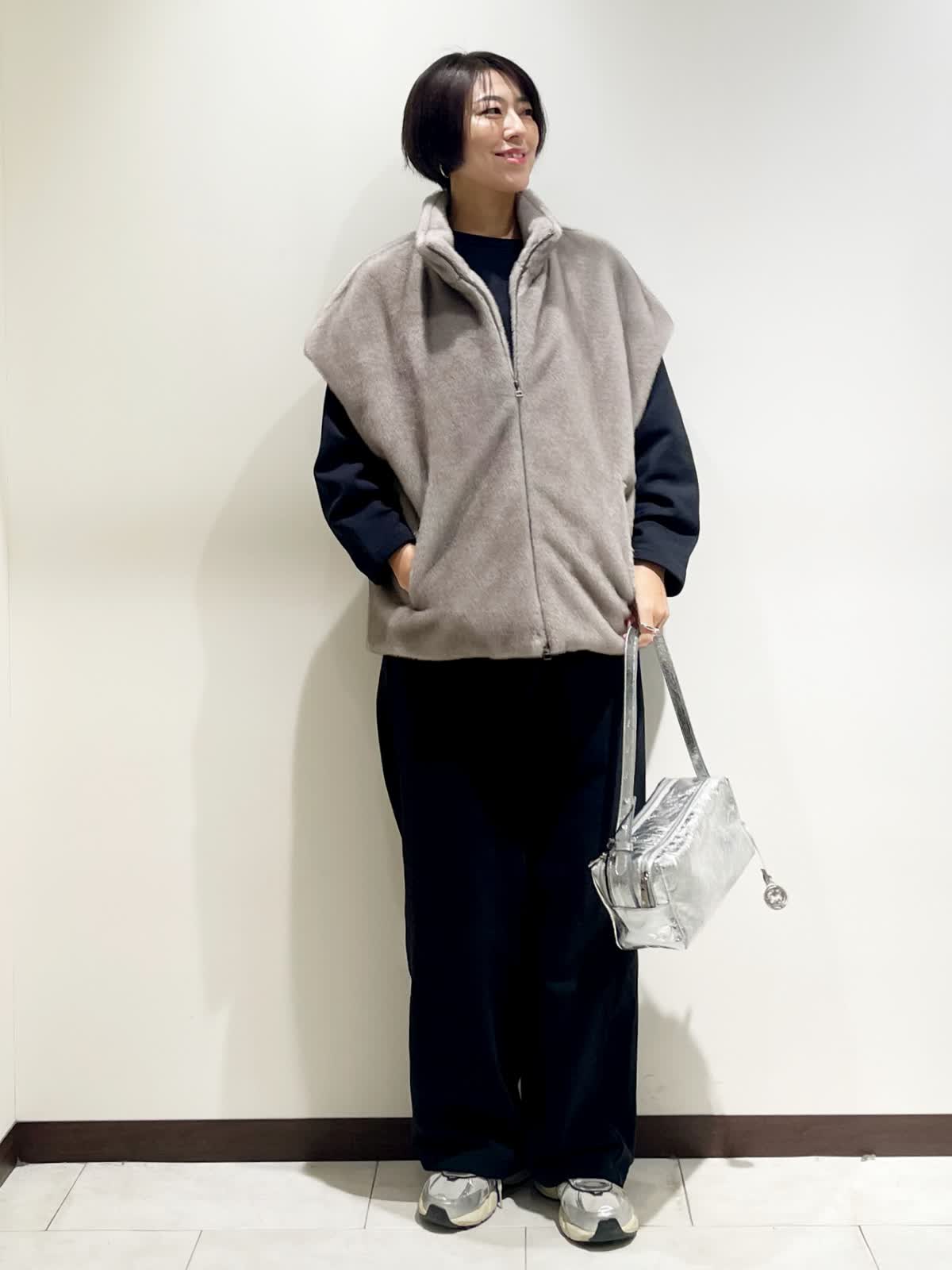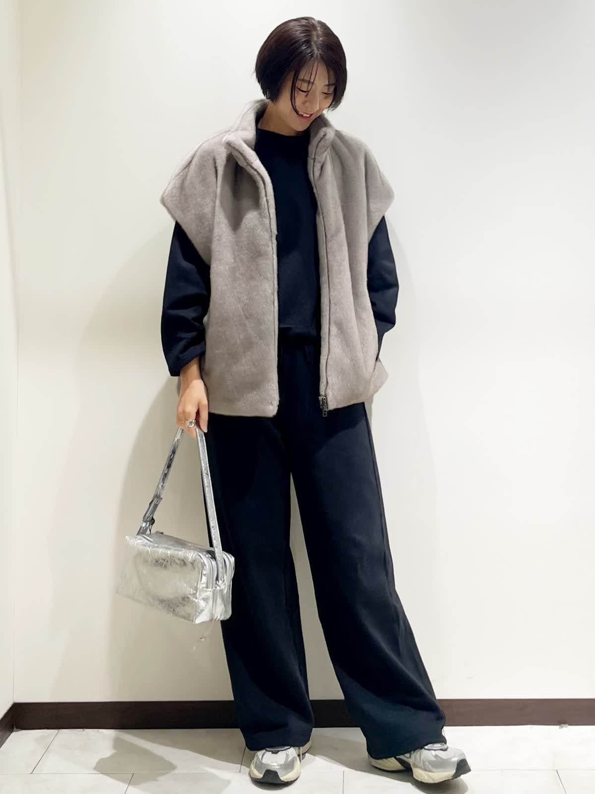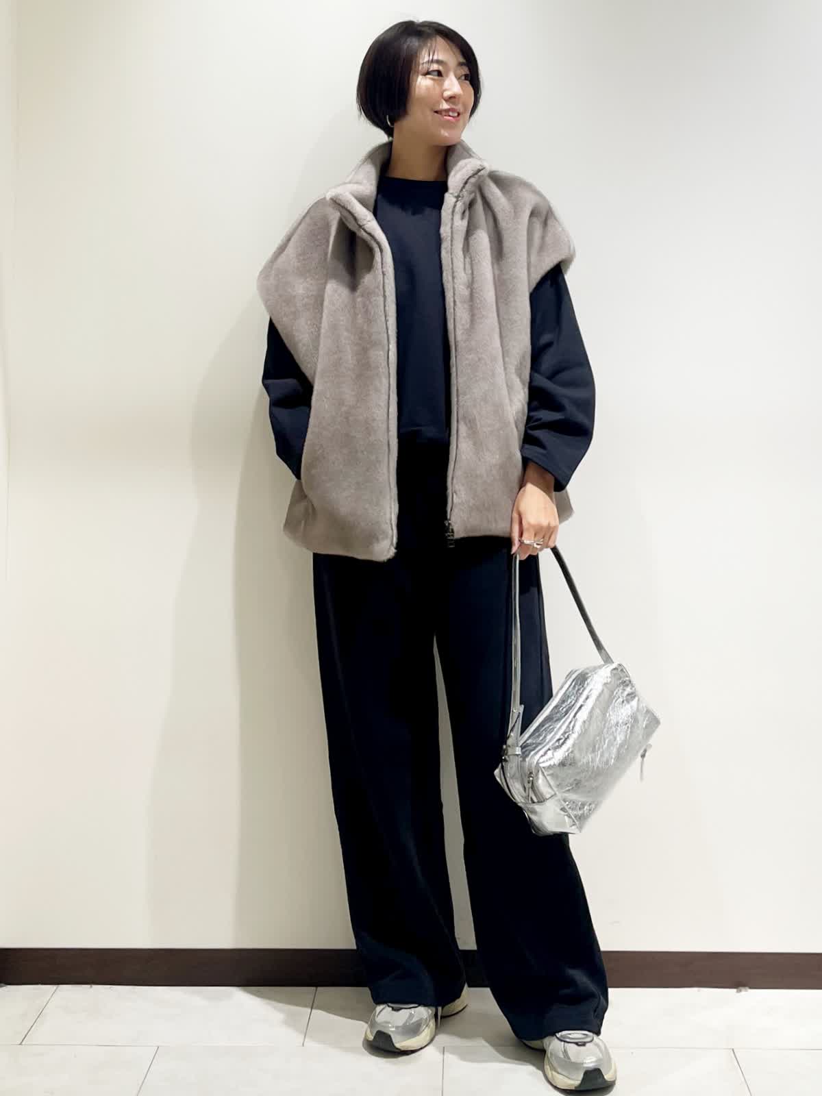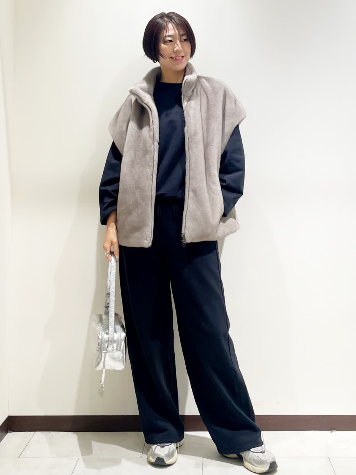 【着用サイズ】全て9号 【カラー】スウェット、パンツ ネイビー ファージレ グレージュ 【コーディネートテーマ】 大人の休日スポーティスタイル リラックス感がありつつエコファーのジレでオシャレに 【サイズ感】 163p 普段9号サイズ 骨格ウェーブで上半身に比べてヒップがやや大きい スウェットセットアップ やや緩め ファージレ 緩め エコファーのジレは羽織るだけでオシャレ見えします。 上質なスウェットセットアップでスポーティながらも大人のカジュアルスタイルに。 小物はシルバーでアクセントにしました。