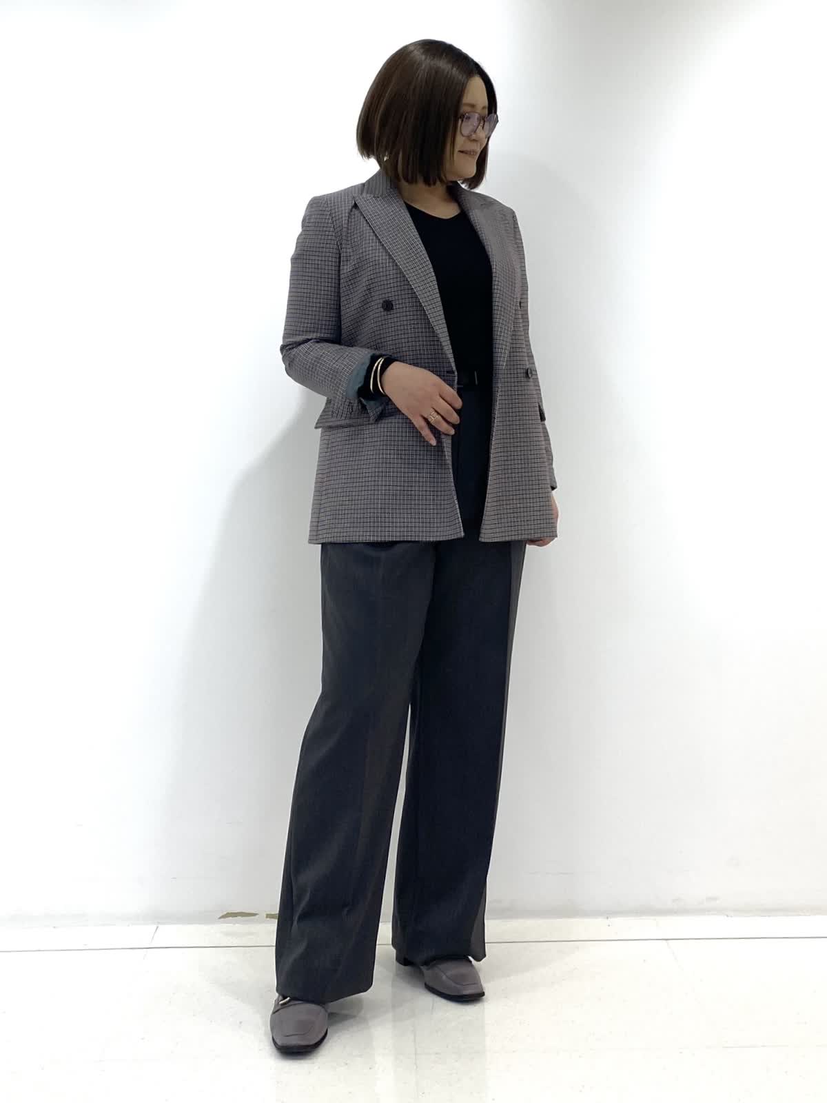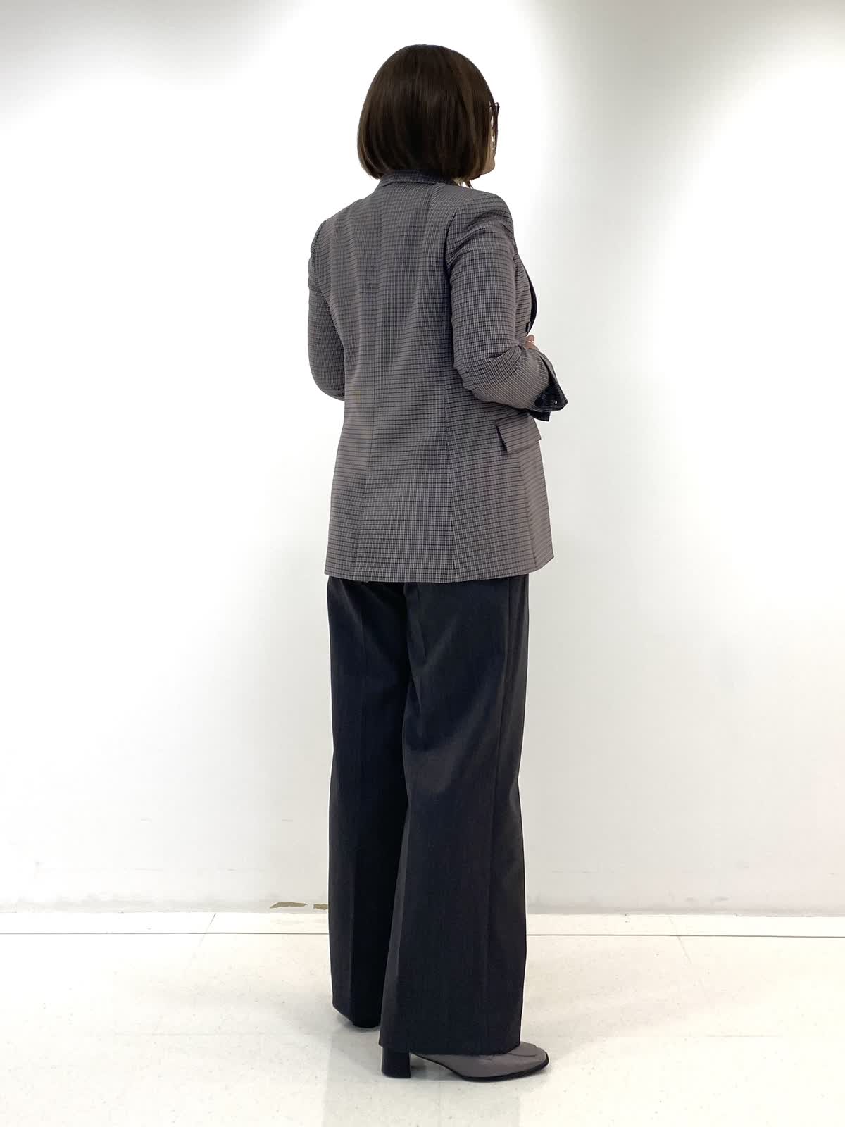 【着用サイズ・カラー】ジャケット:9号/グレンチェック ニット:9号/ブラック パンツ:9号/チャコールグレー 上品なシルエットがポイントのジャケットはシックなスタイリングでもグレンチェックの柄が引立ちます◎お仕事にも普段使いにも使いやすいデザイン。