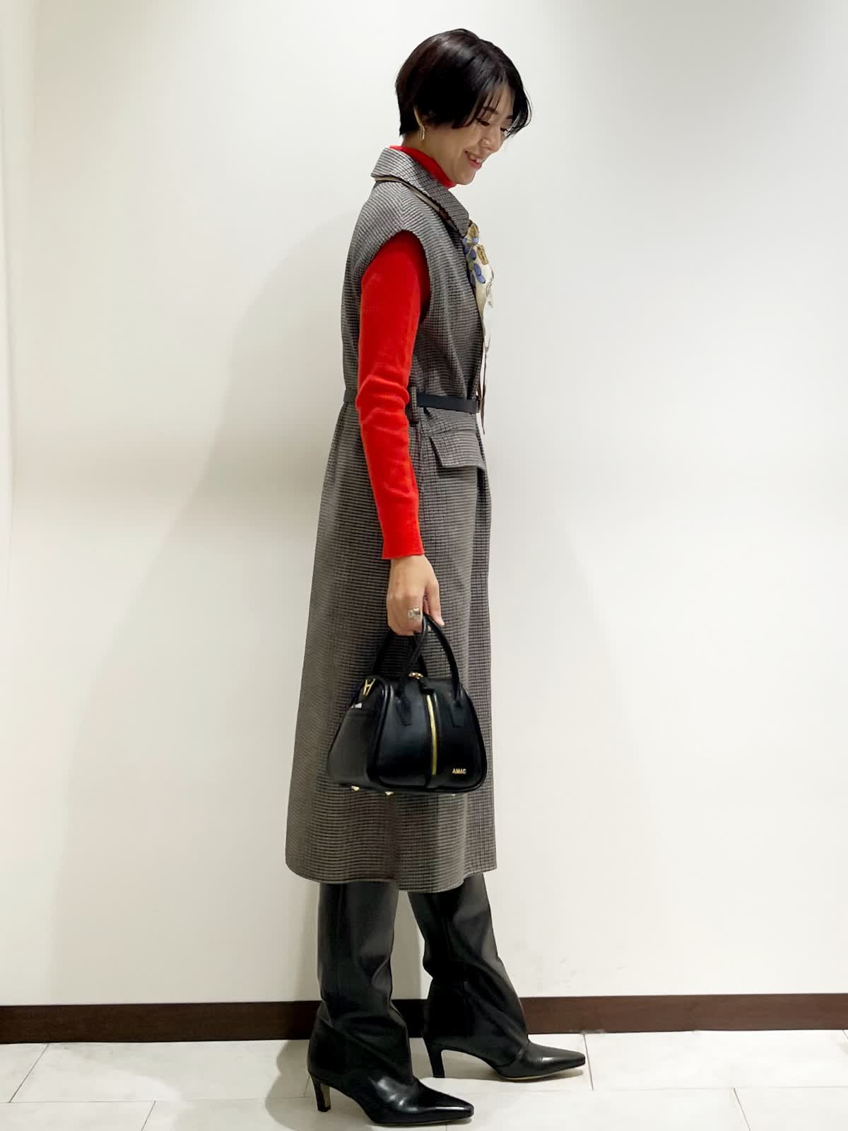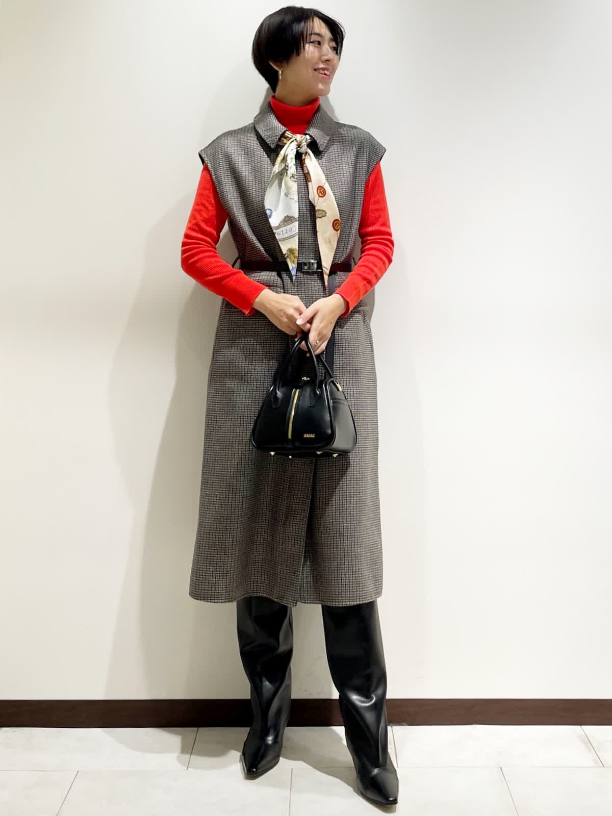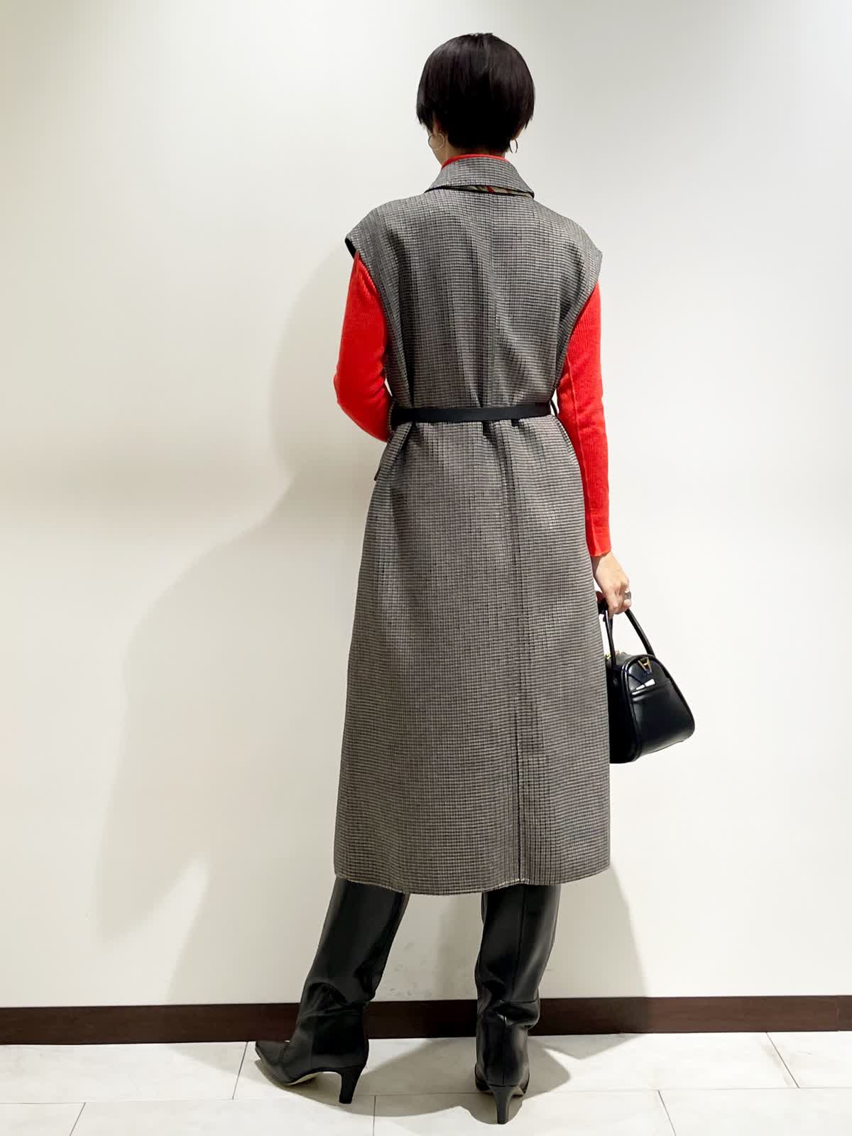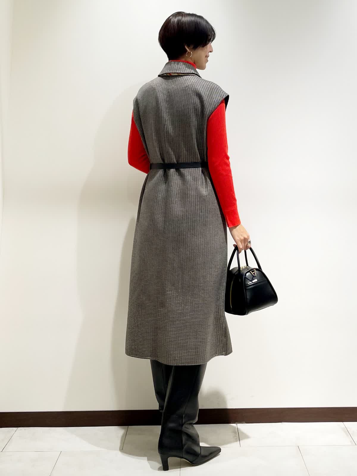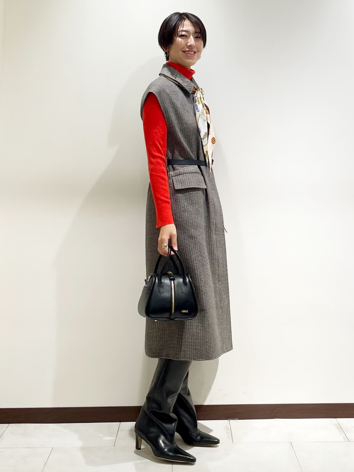 【着用サイズ】全て9号 【カラー】ジレ/ワンピース:小柄 ニット:アカ ベルト:ブラック スカーフ:キミドリ 【コーディネートテーマ】 お友達とランチやお出かけにピッタリなクラシカルコーデ 【サイズ感】 ワンピース:標準 ニット:標準 ジレでもワンピースとしても着れる着回し力が高いアイテムです。 秋はジレとして、冬はワンピースとして大活躍! リバー仕立てで軽くて暖かい1着です。インナーに合わせたタートルニットはINEDの名品。 一つはぜひ持っておきたいニットです。 163p 普段9号サイズ 骨格ウェーブで上半身に比べてヒップがやや大きい