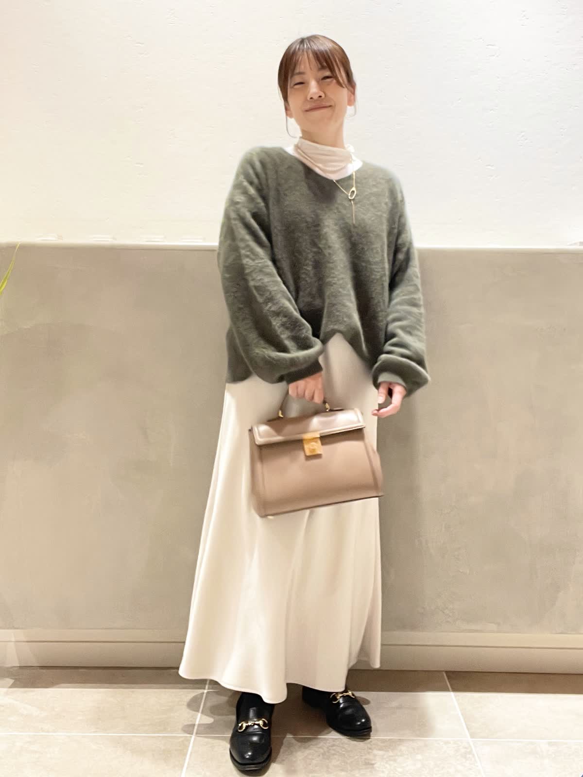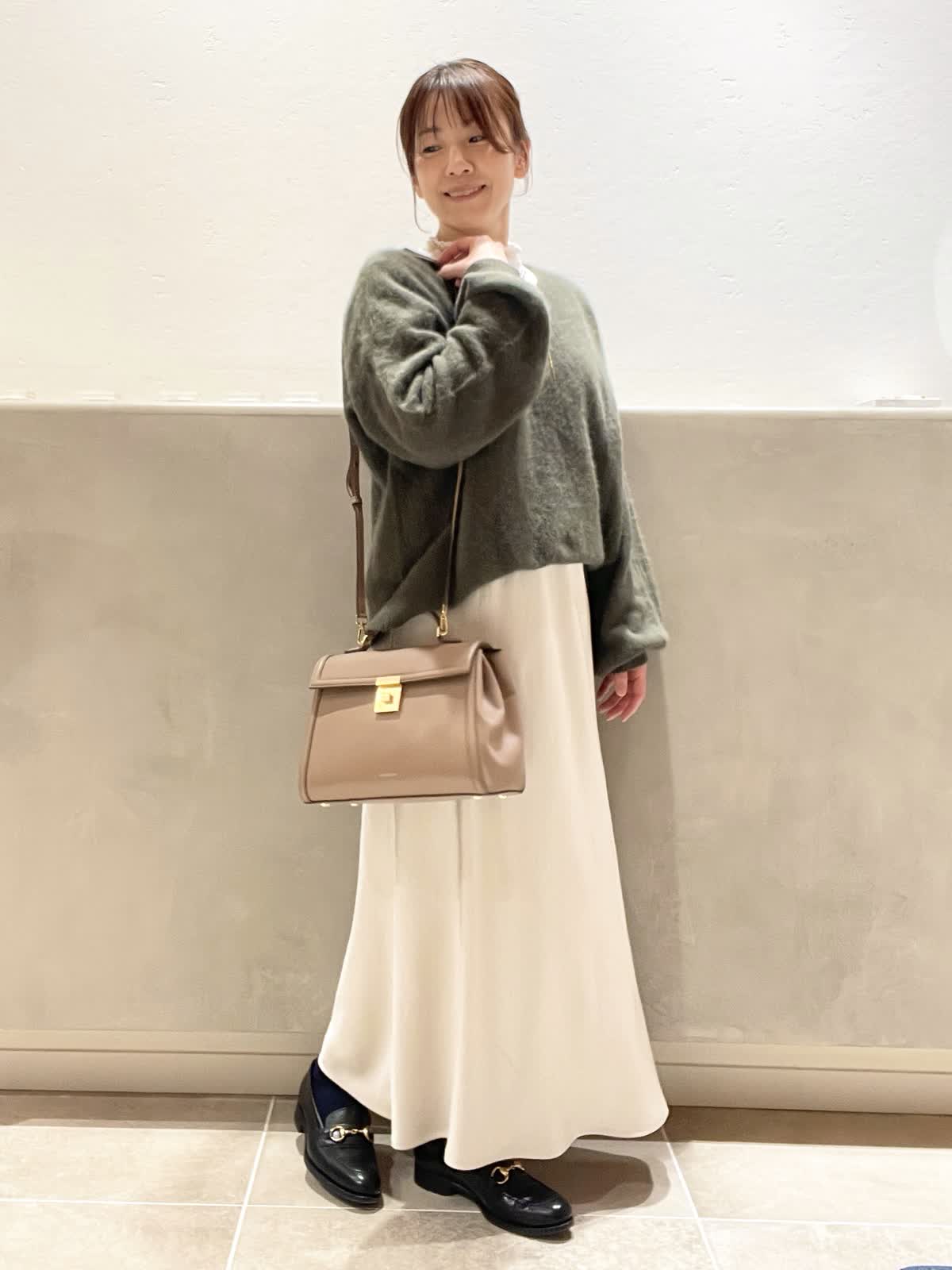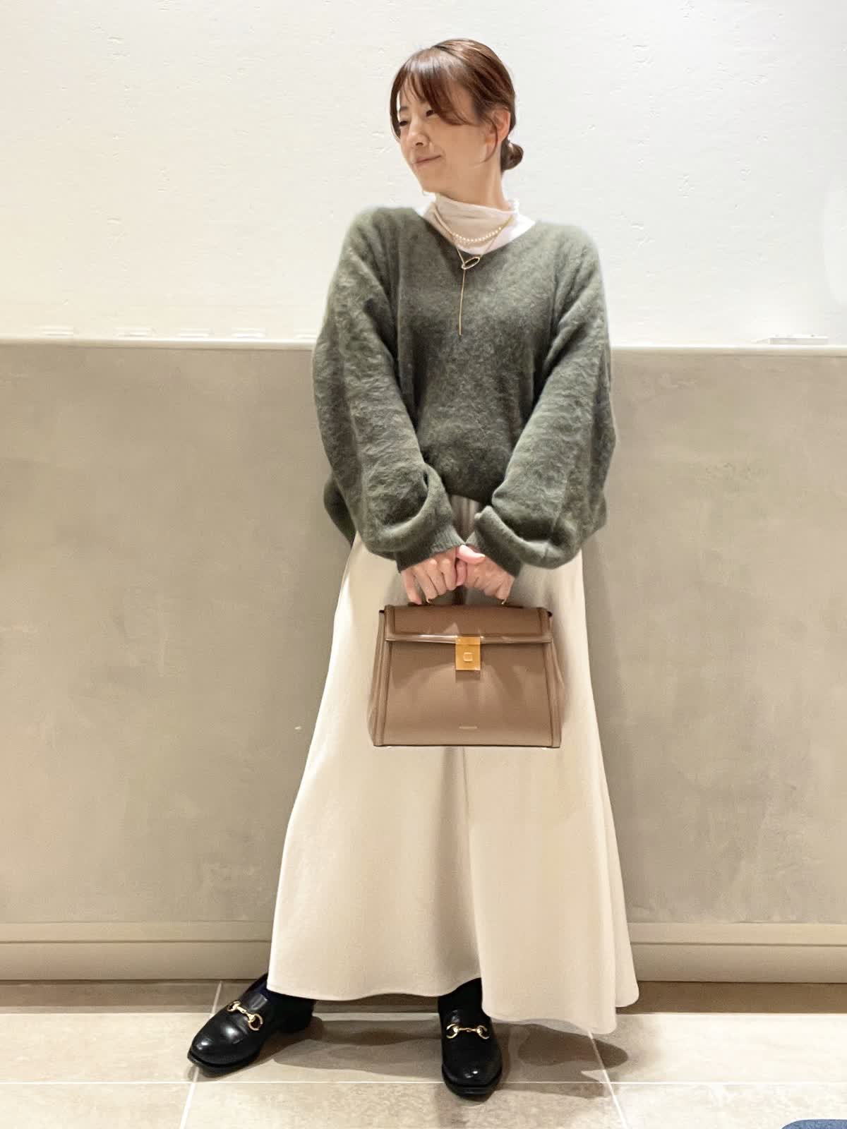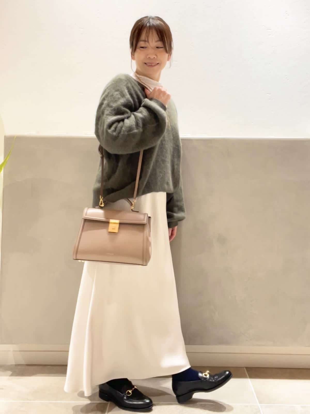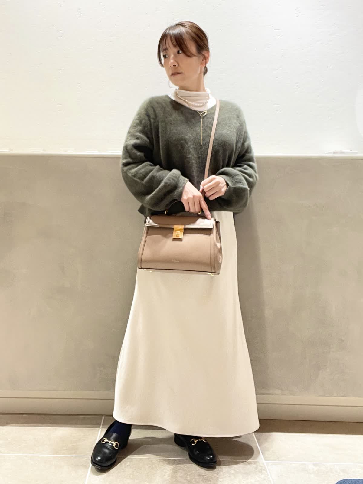 【着用アイテム:カラー/サイズ】 ハイネックカットソー:オフホワイト/9号 バッグ:ベージュ ラリエット:ゴールド DEMELLIERのThe Midi Paris はきちんと感がありながら、フェミニンなスタイリングにも合わせやすいデザイン。中は仕切りがあるので、沢山入れても取り出しやすいです。ショルダーベルト付きで、アウターの上からも肩掛けがスムーズです。