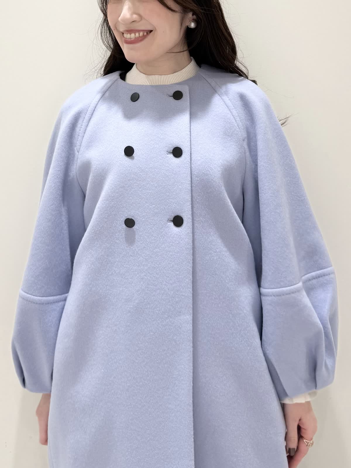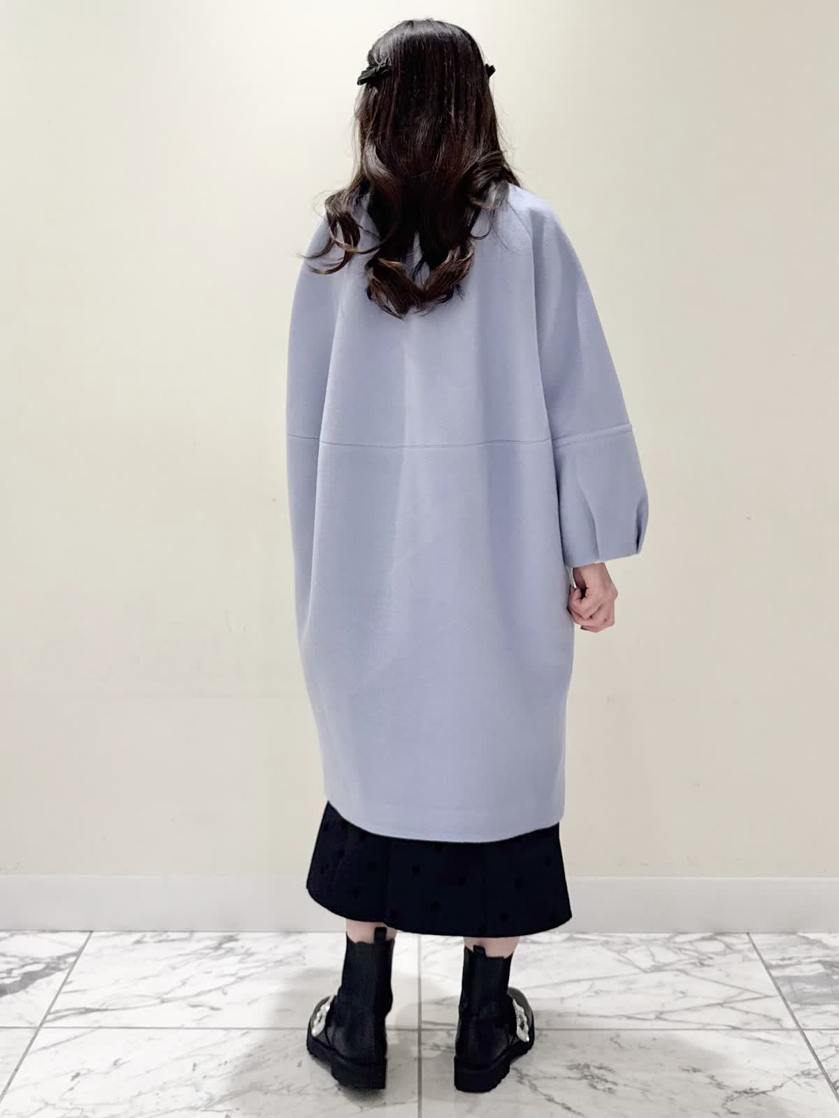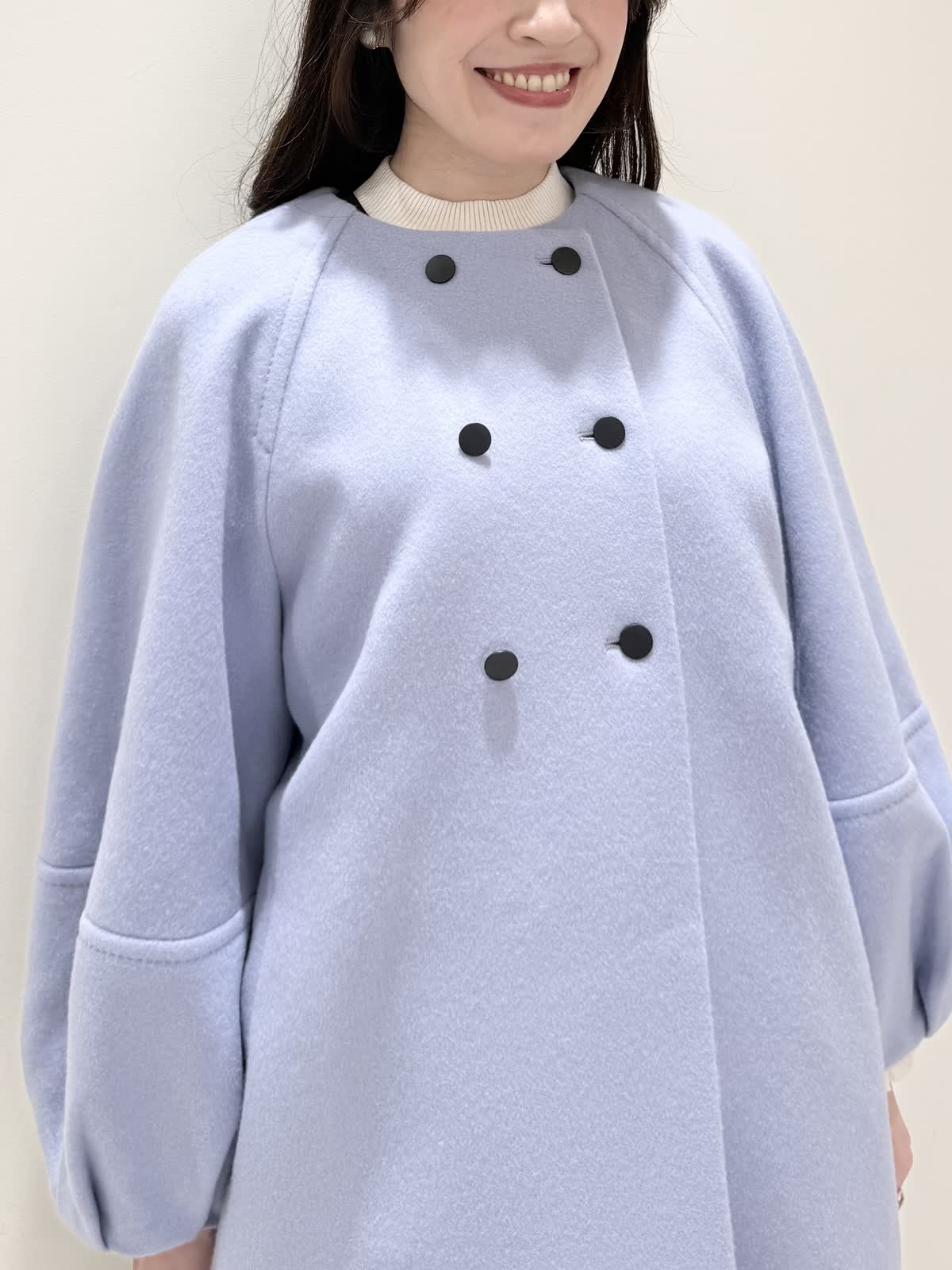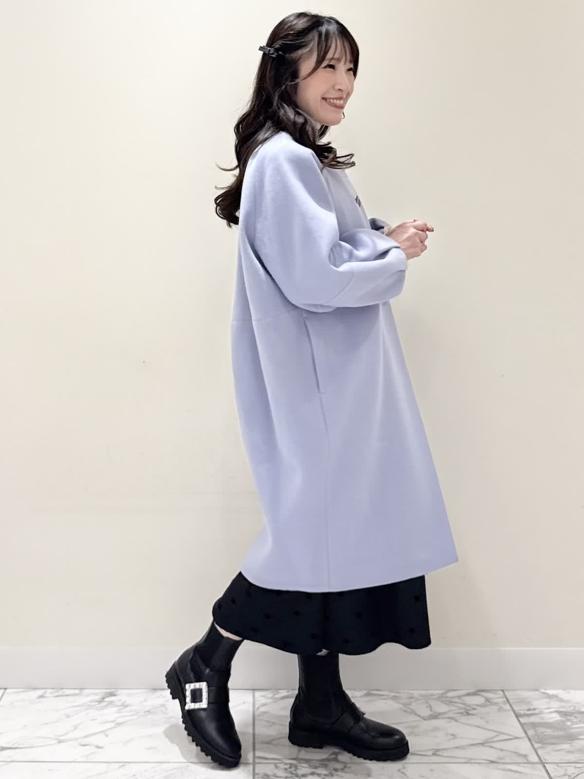 【着用サイズ/カラー】コート:7号/サックス ワンピース:5号/ブラック ニット:9号/アイボリー ブーツ:24.0cm/ブラック イベントシーズンに映えるカラーコートコーディネート♪カラーが綺麗なダブルボタンコートはボタンはブラック、ポワン袖がポイントのコートは袖はややスッキリとした手首が見える袖丈。アームホール、身幅共にゆったりし、裾にいくにつれてつぼまるバルーンシルエットが可愛いです。小柄な方でもバランス良く着られる膝下丈。すっきり着たい方は1サイズ小さめでも◯。合わせは切り替え高めからのフィット&フレアのシルエットのジャンスカ。アームホールはコンパクトめなので、今までのジャンスカに比べるとコンパクトに感じるかと思います。伸びる生地ではないので、程よいゆとりが欲しい方は1サイズ大きめで、ピッタリ着たい方はいつものサイズで◯とても軽い生地なので着心地◎インナーには大人気シリーズの今季バージョン♪柔らかいリブなので、ネックライン、見頃共に窮屈感なく、ノンウール生地なので肌あたり優しくとても着やすいので色違いでおすすめです。