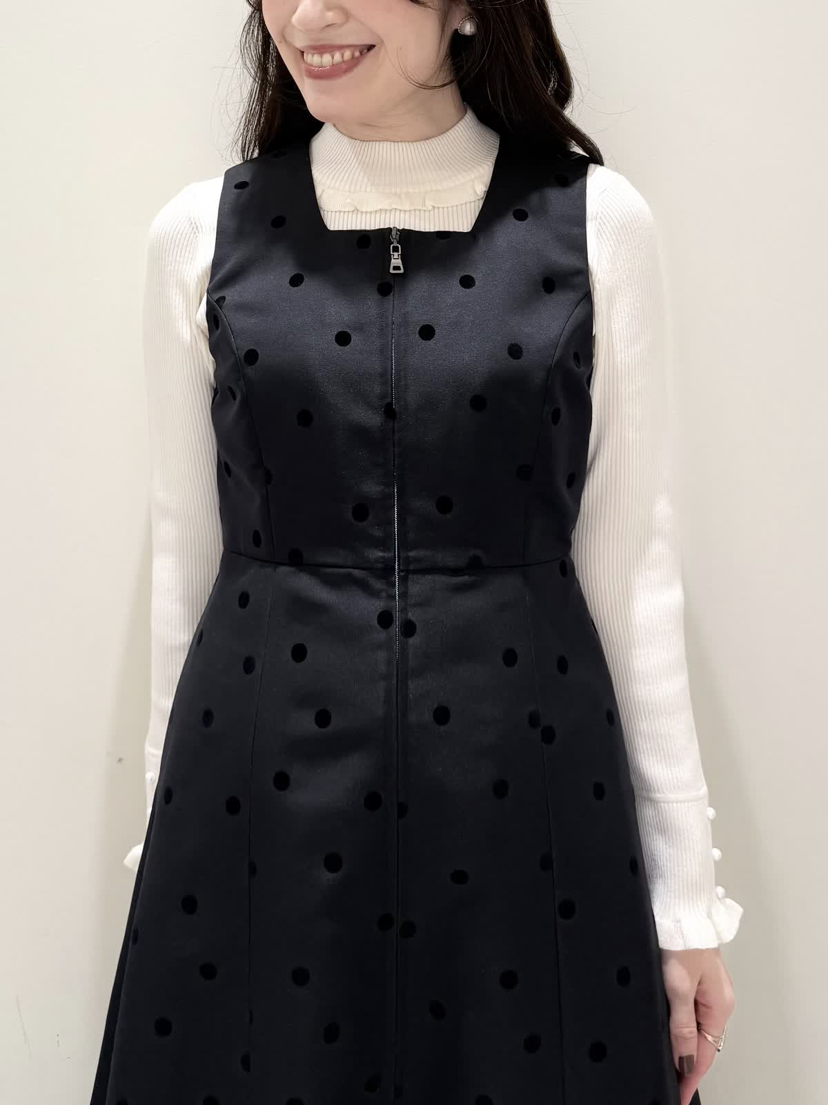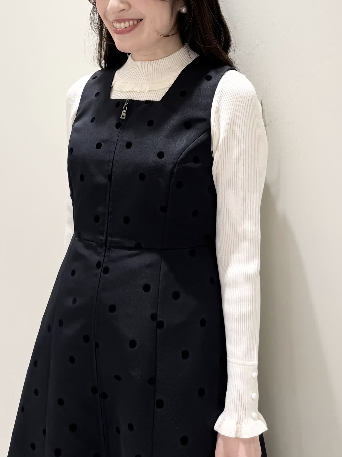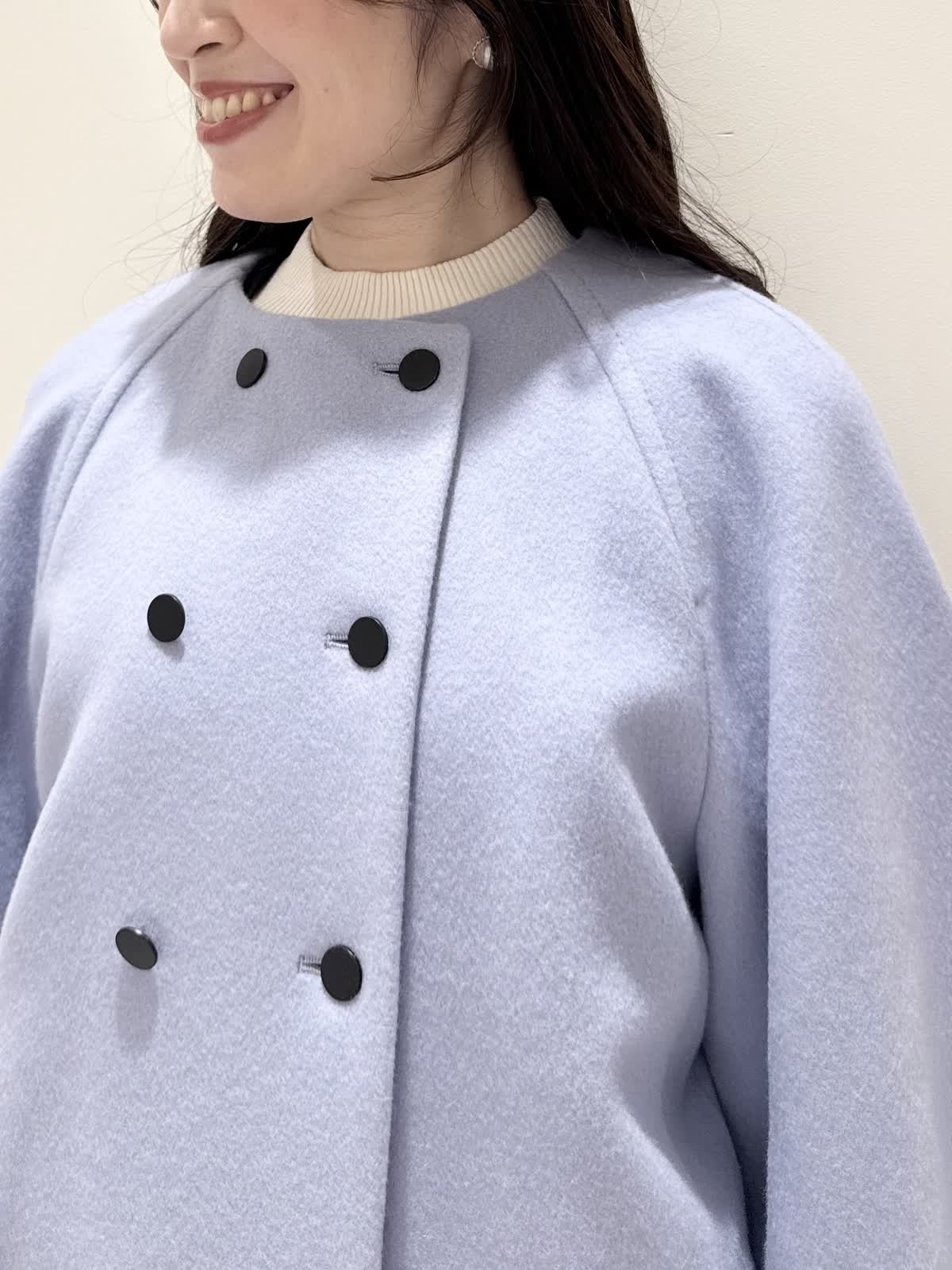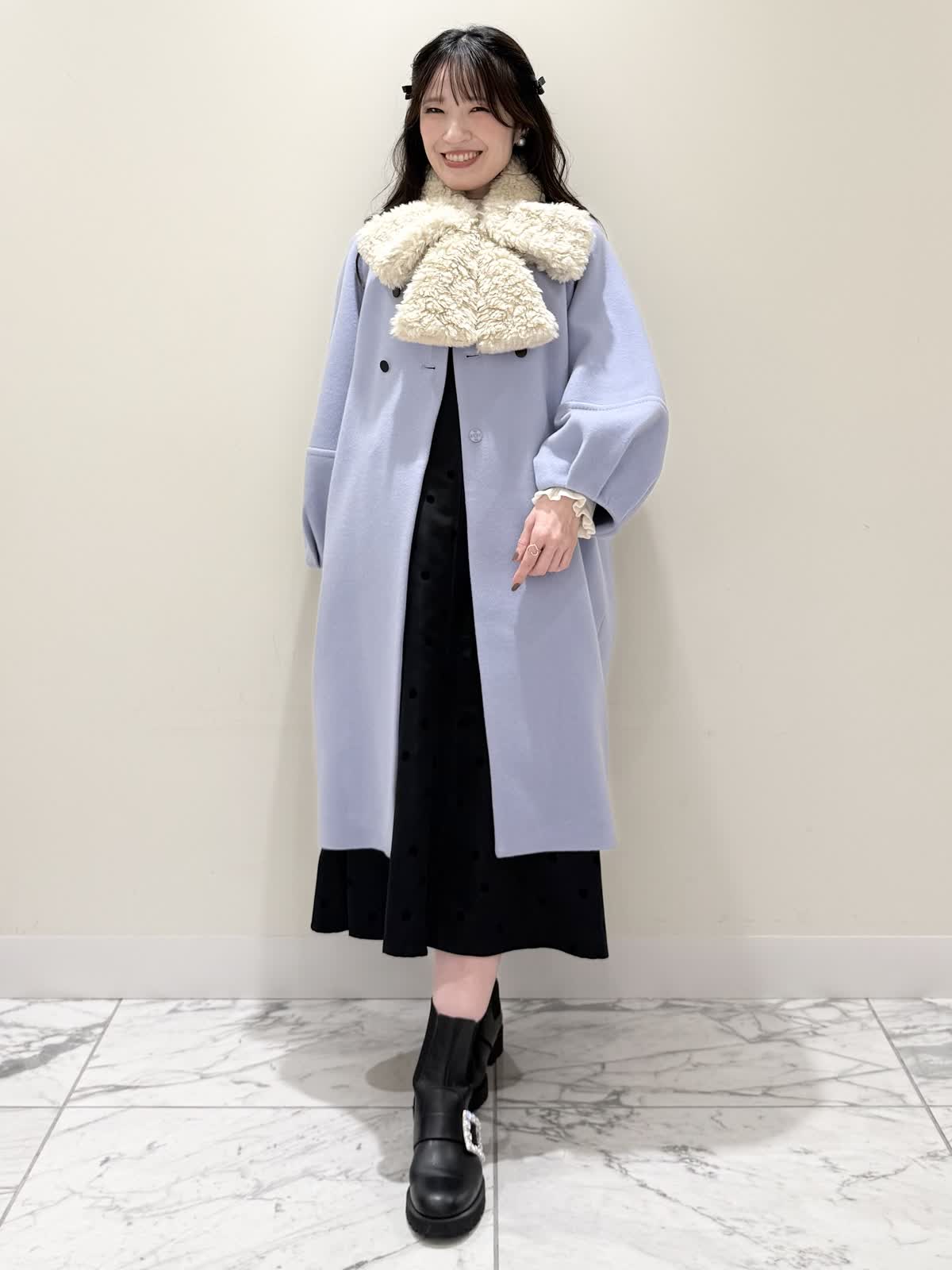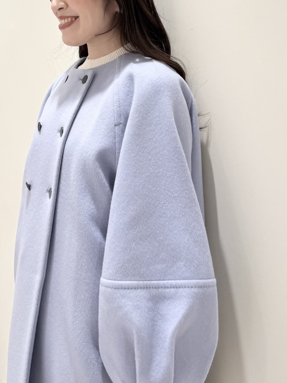 【着用サイズ/カラー】コート:7号/サックス ワンピース:5号/ブラック ニット:9号/アイボリー ブーツ:24.0cm/ブラック イベントシーズンに映えるカラーコートコーディネート♪カラーが綺麗なダブルボタンコートはボタンはブラック、ポワン袖がポイントのコートは袖はややスッキリとした手首が見える袖丈。アームホール、身幅共にゆったりし、裾にいくにつれてつぼまるバルーンシルエットが可愛いです。小柄な方でもバランス良く着られる膝下丈。すっきり着たい方は1サイズ小さめでも◯。合わせは切り替え高めからのフィット&フレアのシルエットのジャンスカ。アームホールはコンパクトめなので、今までのジャンスカに比べるとコンパクトに感じるかと思います。伸びる生地ではないので、程よいゆとりが欲しい方は1サイズ大きめで、ピッタリ着たい方はいつものサイズで◯とても軽い生地なので着心地◎インナーには大人気シリーズの今季バージョン♪柔らかいリブなので、ネックライン、見頃共に窮屈感なく、ノンウール生地なので肌あたり優しくとても着やすいので色違いでおすすめです。