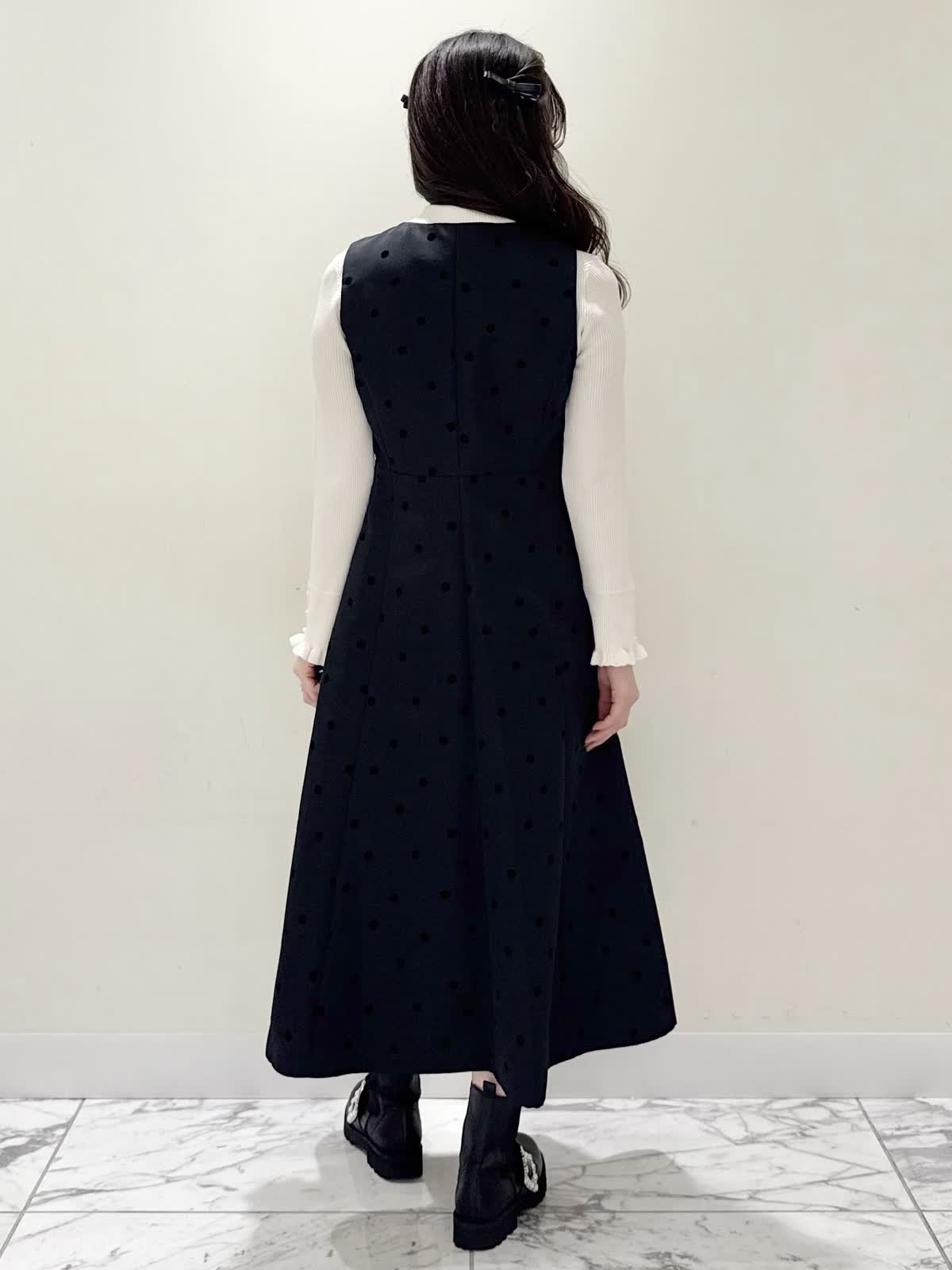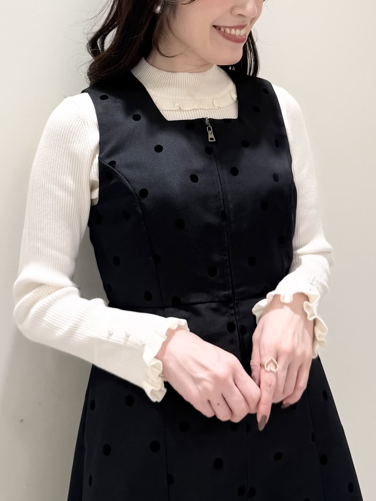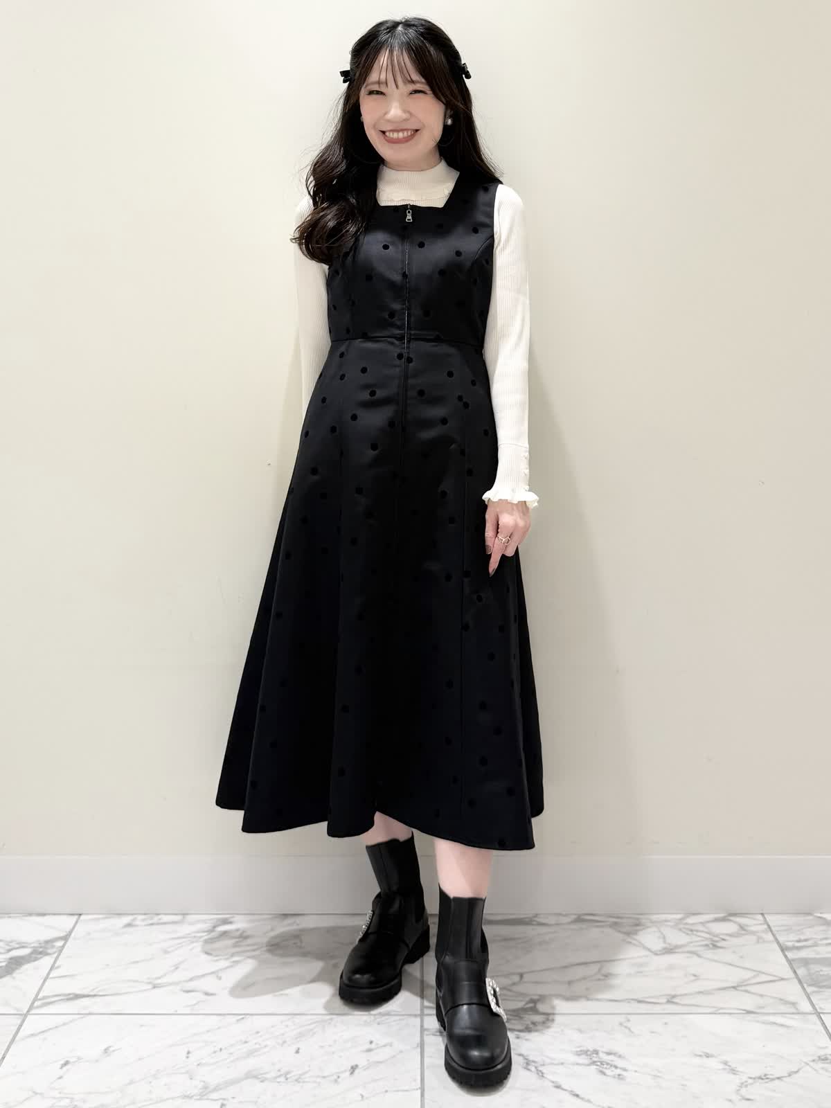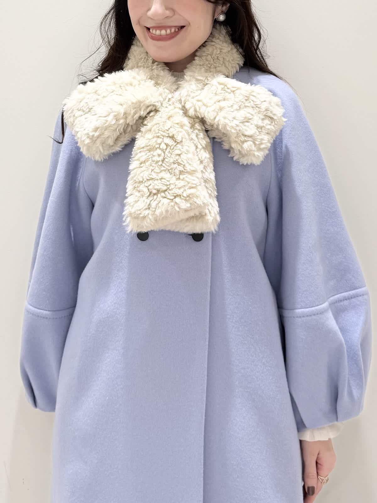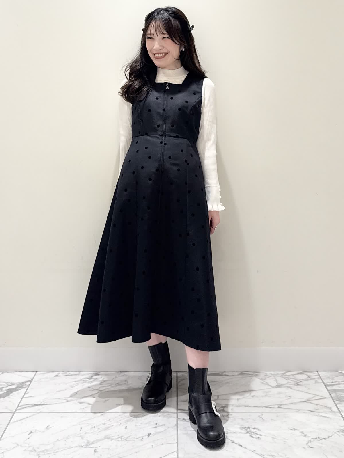 【着用サイズ/カラー】コート:7号/サックス ワンピース:5号/ブラック ニット:9号/アイボリー ブーツ:24.0cm/ブラック イベントシーズンに映えるカラーコートコーディネート♪カラーが綺麗なダブルボタンコートはボタンはブラック、ポワン袖がポイントのコートは袖はややスッキリとした手首が見える袖丈。アームホール、身幅共にゆったりし、裾にいくにつれてつぼまるバルーンシルエットが可愛いです。小柄な方でもバランス良く着られる膝下丈。すっきり着たい方は1サイズ小さめでも◯。合わせは切り替え高めからのフィット&フレアのシルエットのジャンスカ。アームホールはコンパクトめなので、今までのジャンスカに比べるとコンパクトに感じるかと思います。伸びる生地ではないので、程よいゆとりが欲しい方は1サイズ大きめで、ピッタリ着たい方はいつものサイズで◯とても軽い生地なので着心地◎インナーには大人気シリーズの今季バージョン♪柔らかいリブなので、ネックライン、見頃共に窮屈感なく、ノンウール生地なので肌あたり優しくとても着やすいので色違いでおすすめです。