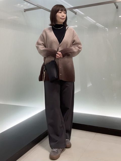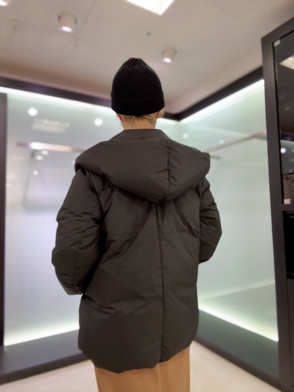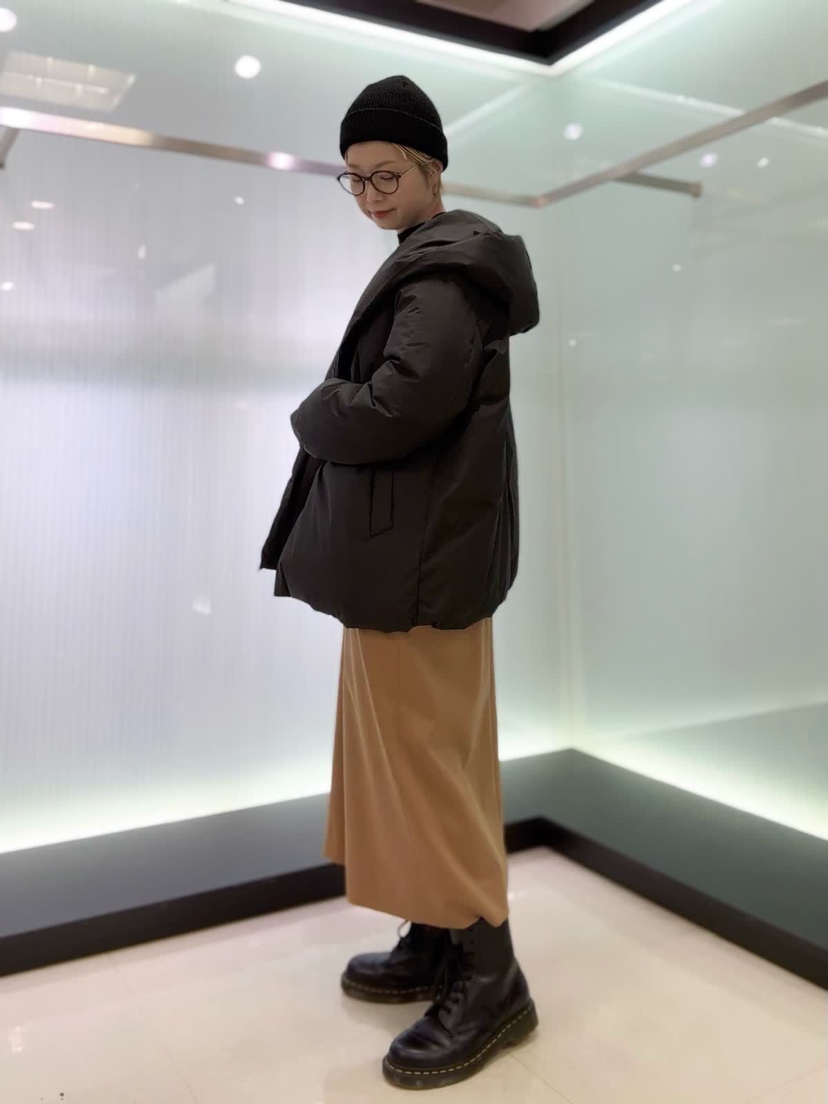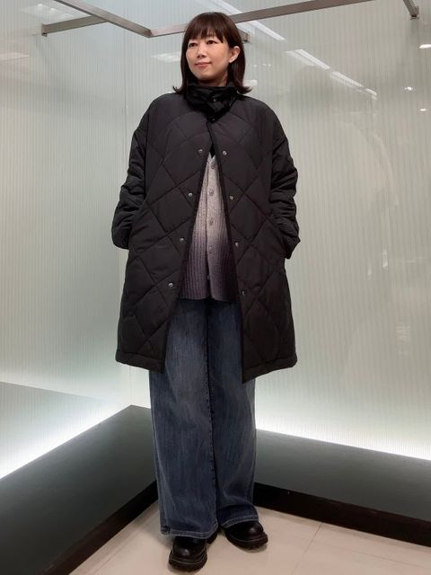 【着用サイズ】アウター・ニット : ブラック/9号 ワンピース : キャメル/9号 軽くて温かいダウンコート♪大きめのショールカラーが上品な印象です。ゆったりとしたサイズ感なので厚手のニットも着られますよ♪パーツ毎にダウンの分量を変えているので着ぶくれして見えないのが嬉しいポイント!