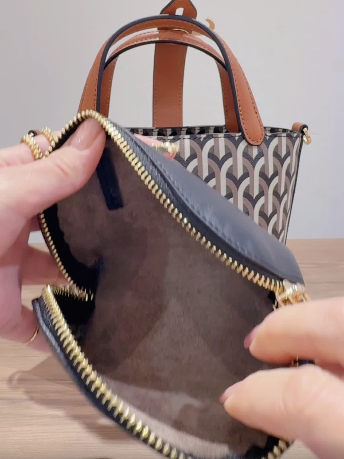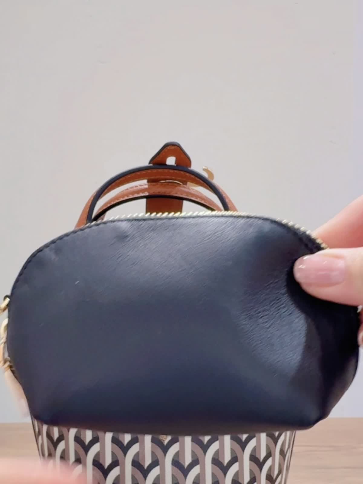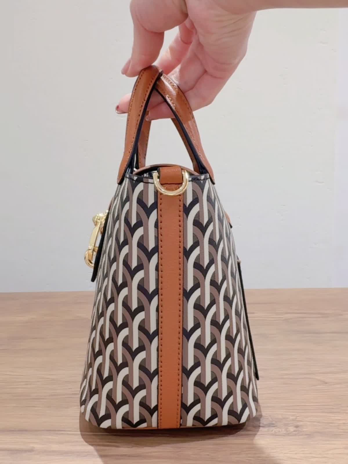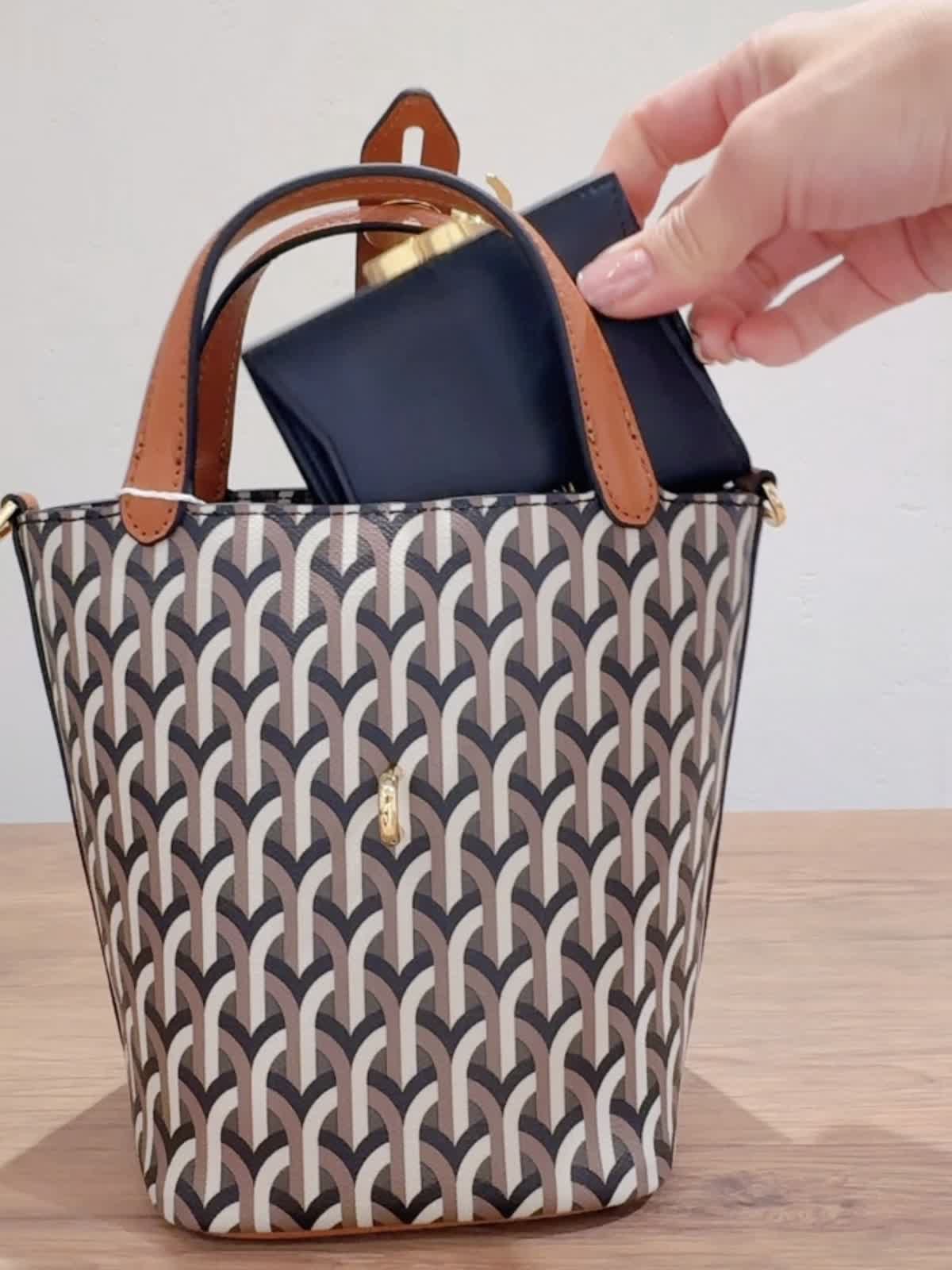 《DELL’EST/デルエスト》GLINDA BAG SMALLハンドバッグ バッグ:キャメル 【着用サイズ】全て11号 【着用カラー】ニット:チャコールグレー パンツ:キャメル イタリアミラノ発のとってもオシャレなバケツ型バッグ。 フックが角度によってキラリとします。コンパクトながらもマチが広いので、スリムな水筒やペットボトルでしたらお財布とスマートフォンと一緒に収納可能です。ショルダーストラップは取り外しできるのでいろんなコーディネートに合わせられます!
