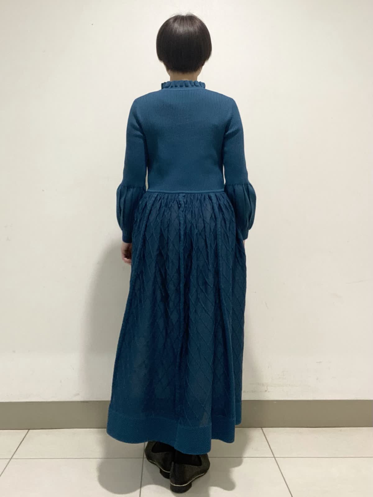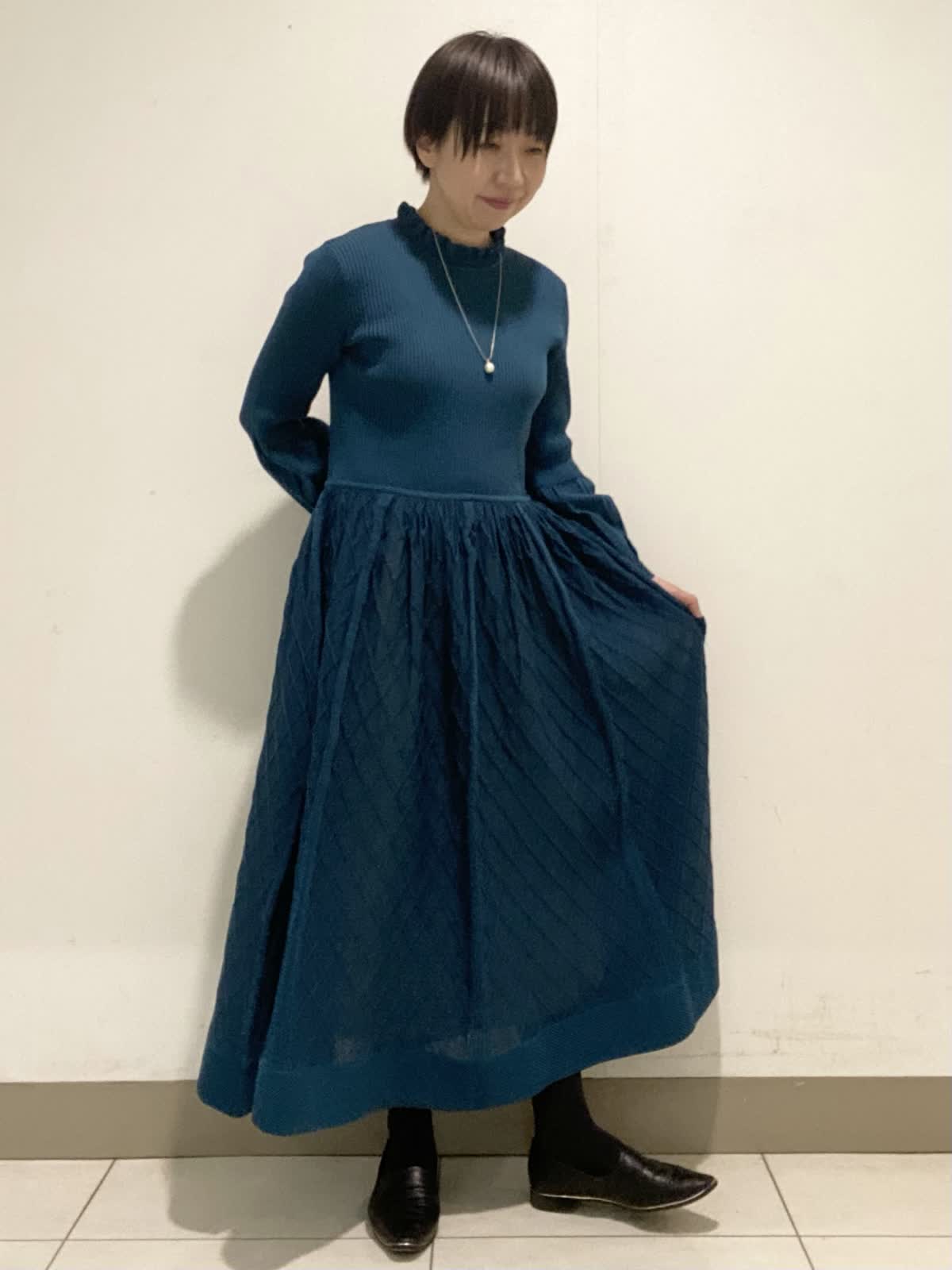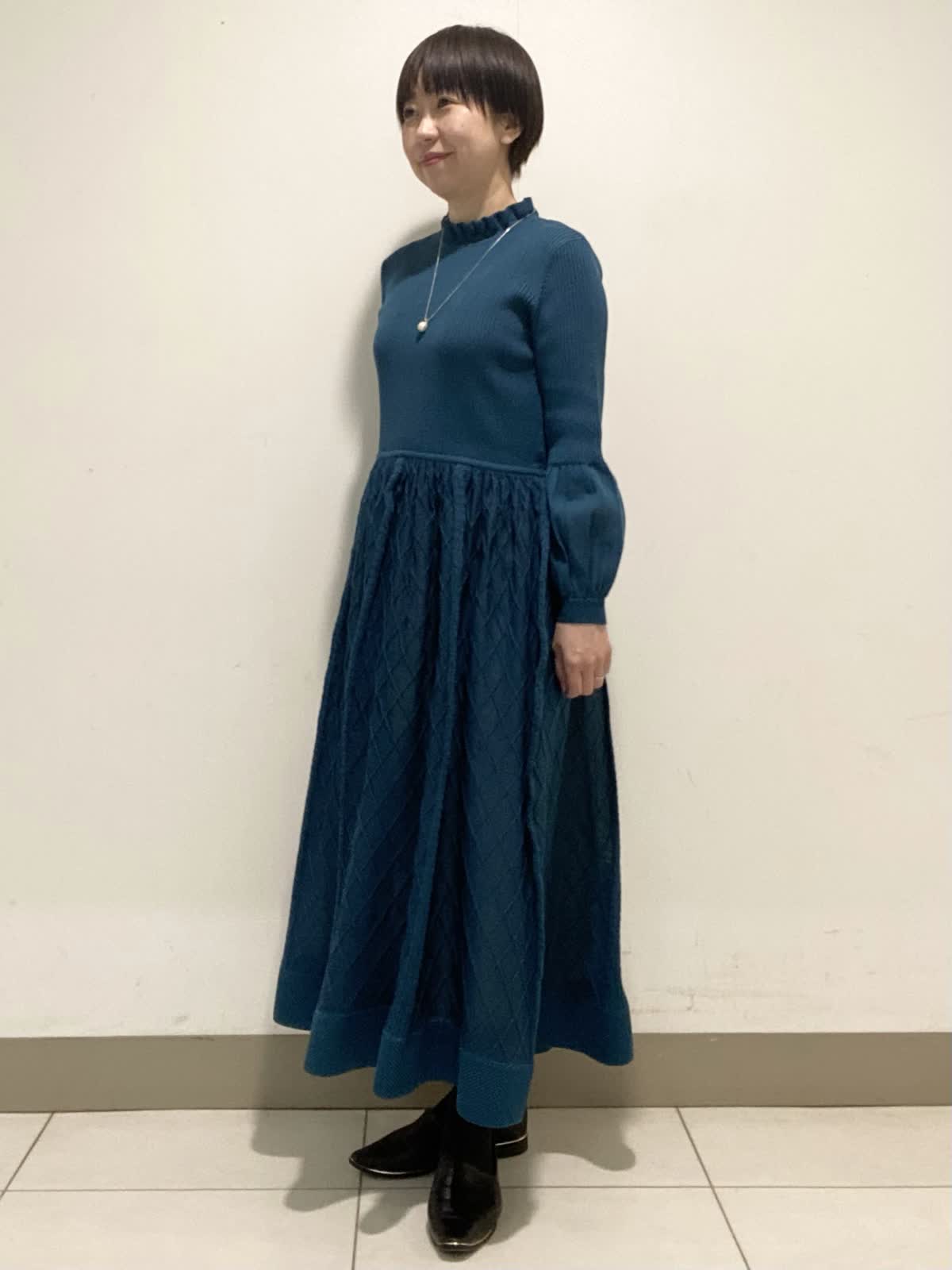 【着用サイズ】ワンピース:9号 シアー感が軽やかな印象のニットワンピース。ウエストのギャザーがお腹周りもカバー出来ます◎。襟元のフリルや膨らみのあるスリーブが華やかさを引き立てます。年末年始のお食事会やお出かけに使いやすいワンピースです。