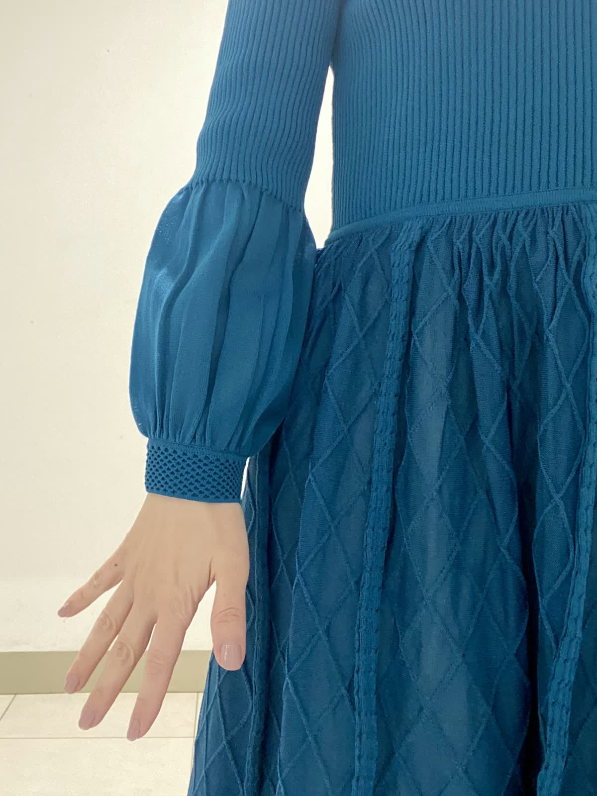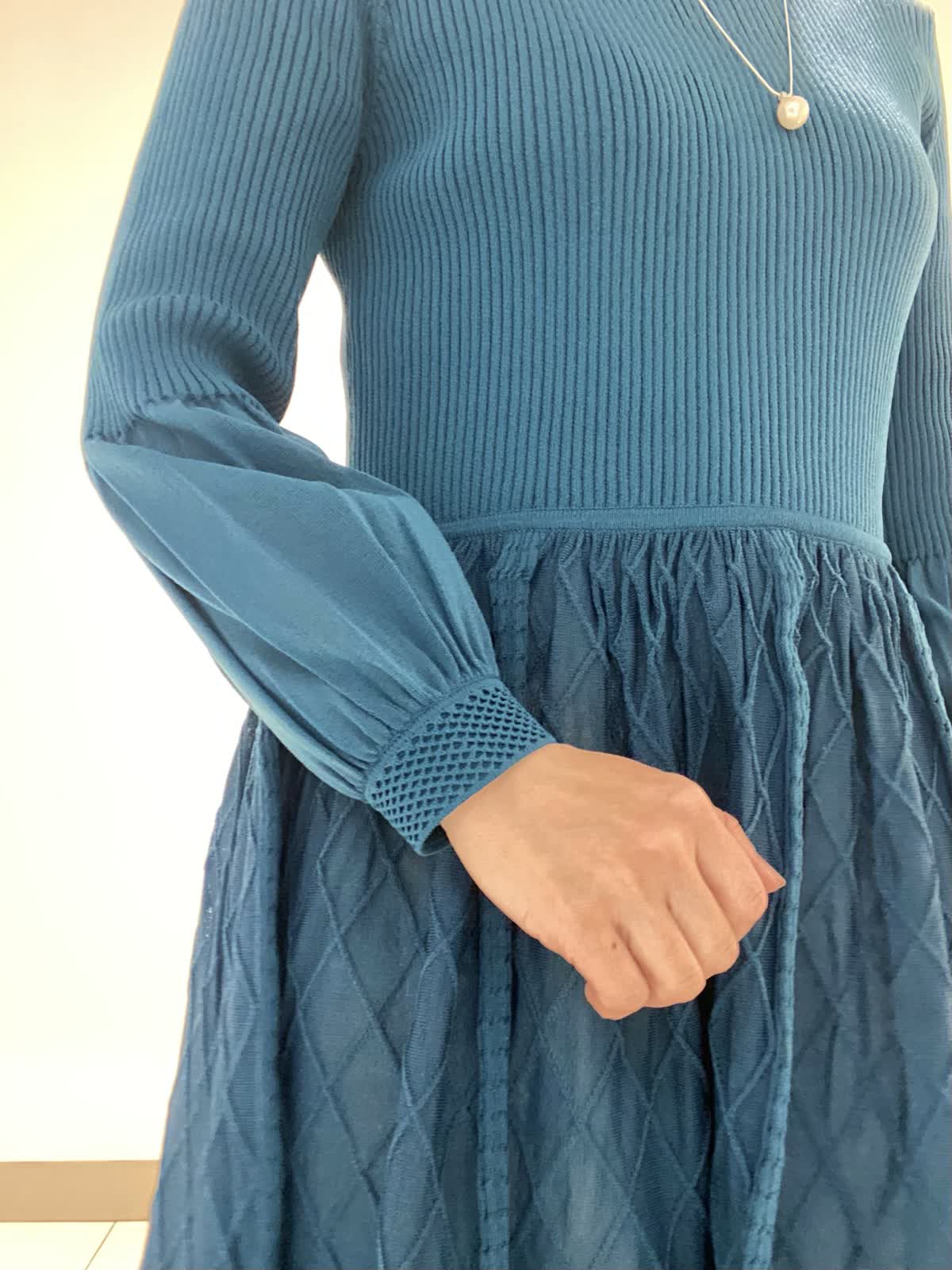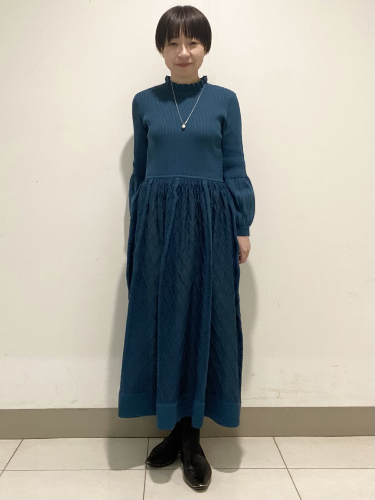 【着用サイズ】ワンピース:9号 シアー感が軽やかな印象のニットワンピース。ウエストのギャザーがお腹周りもカバー出来ます◎。襟元のフリルや膨らみのあるスリーブが華やかさを引き立てます。年末年始のお食事会やお出かけに使いやすいワンピースです。