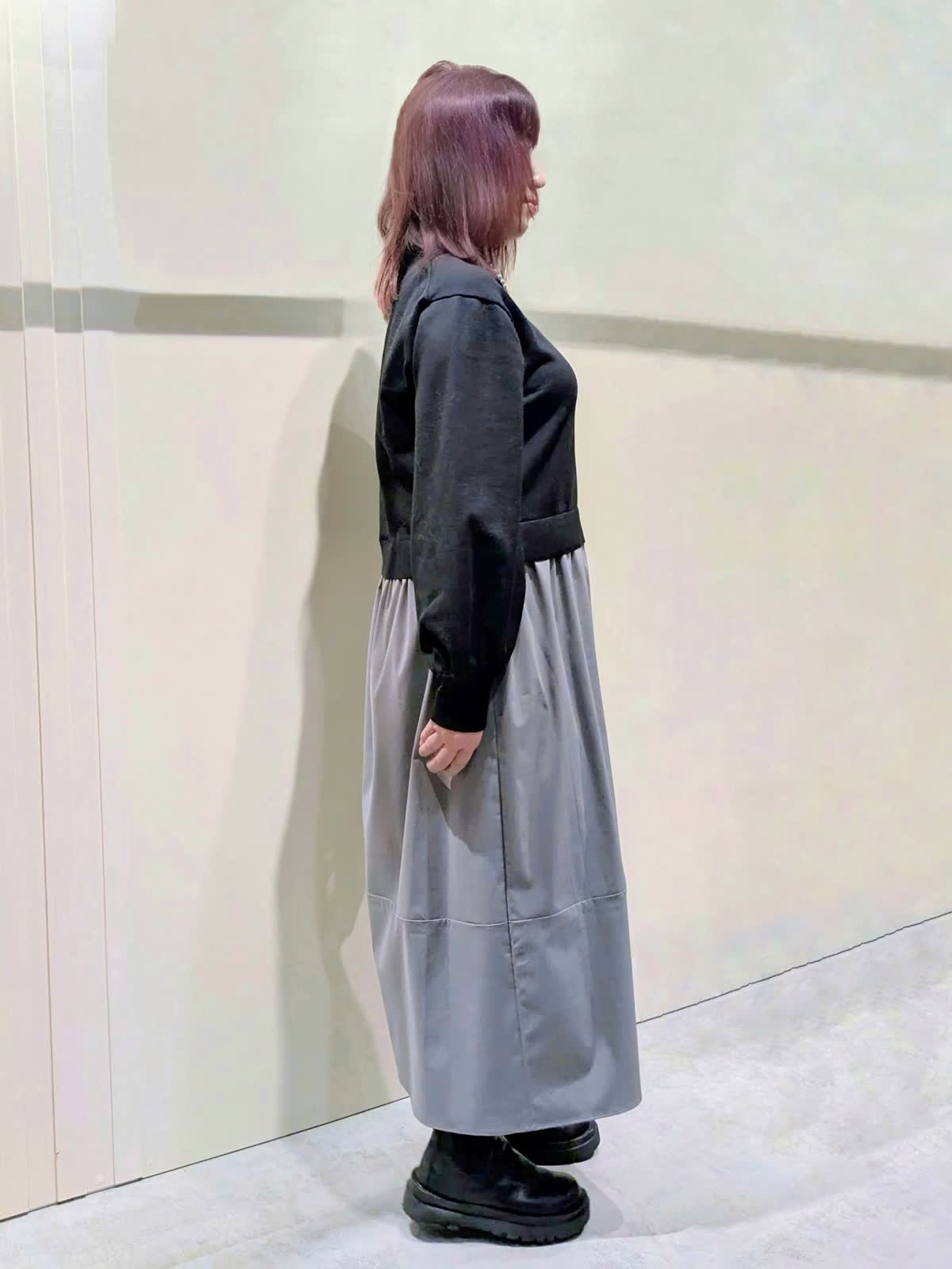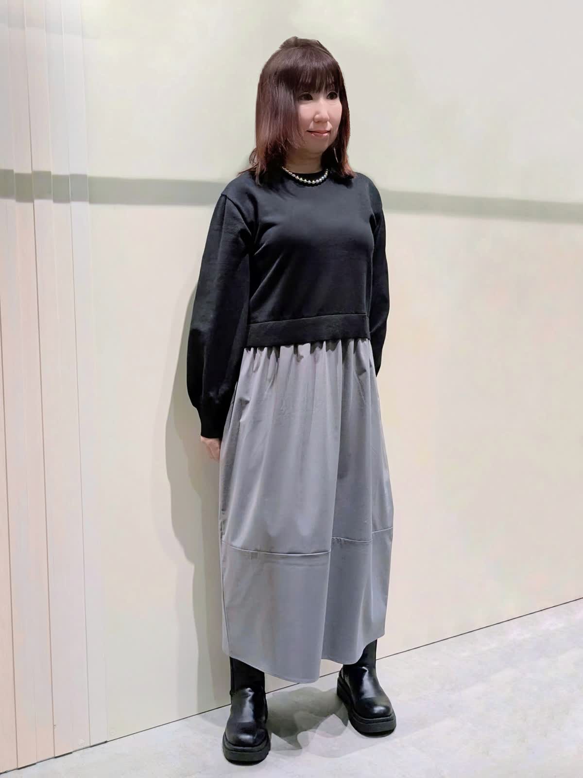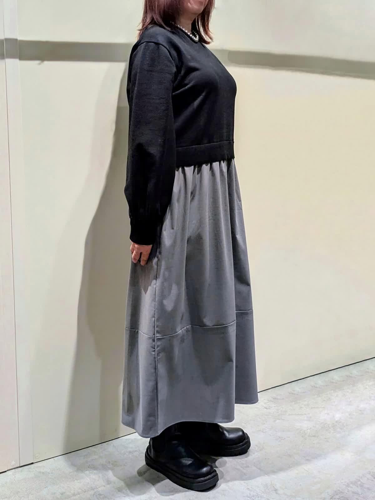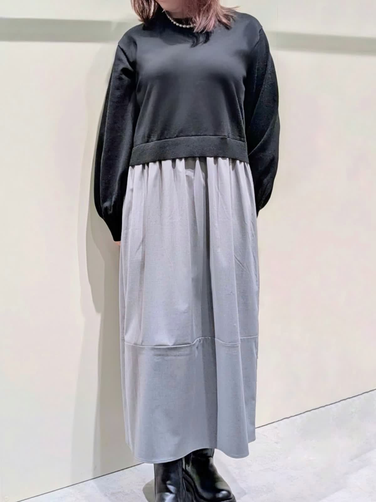 【着用サイズ】フェイクファーブルゾン:フリーサイズ ワンピース:9号【着用カラー】フェイクファーブルゾン、ワンピース:グレー 冬の楽ちんコーディネート 程良くゆとりのあるスタンドカラーのフェイクファーブルゾンは、裾のドロスト仕様でシルエットの変化を楽しんで頂けます。袖口はゴムギャザー仕様でボリューム感が可愛いぃです。ボトムを選ばず着映えするアイテムです。異素材のコンビネーションワンピースは、ふんわりと立体感のあるコクーンシルエットで、ストレスフリーな着心地です。