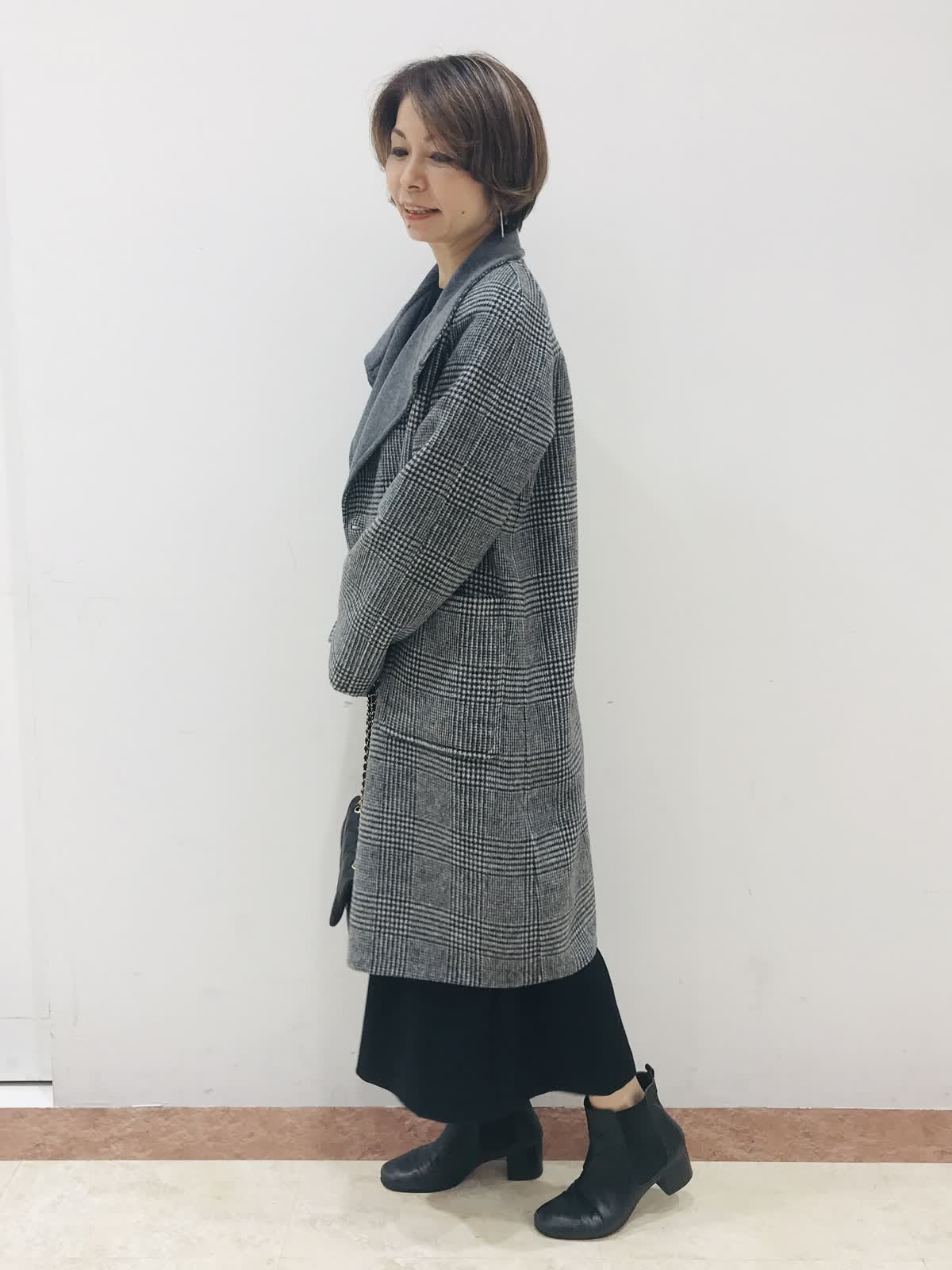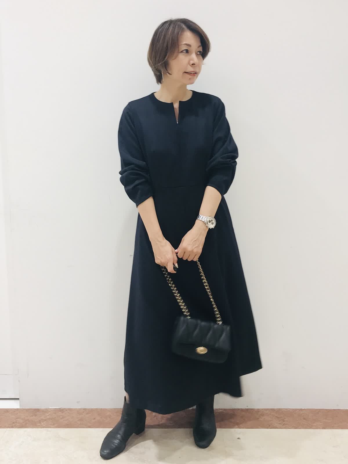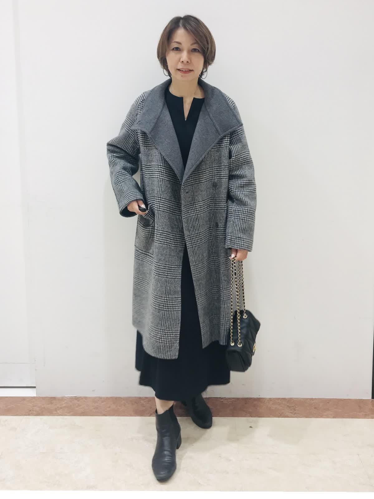 【着用カラー】コート:チャコールグレー ワンピース:ネイビー 忘年会コーデ