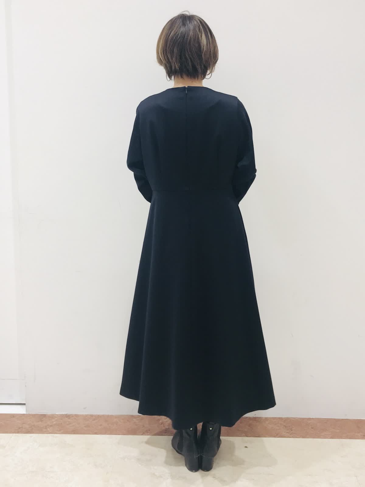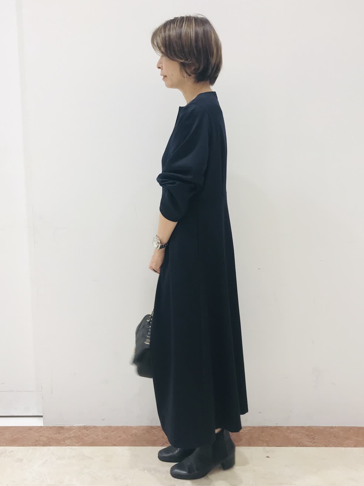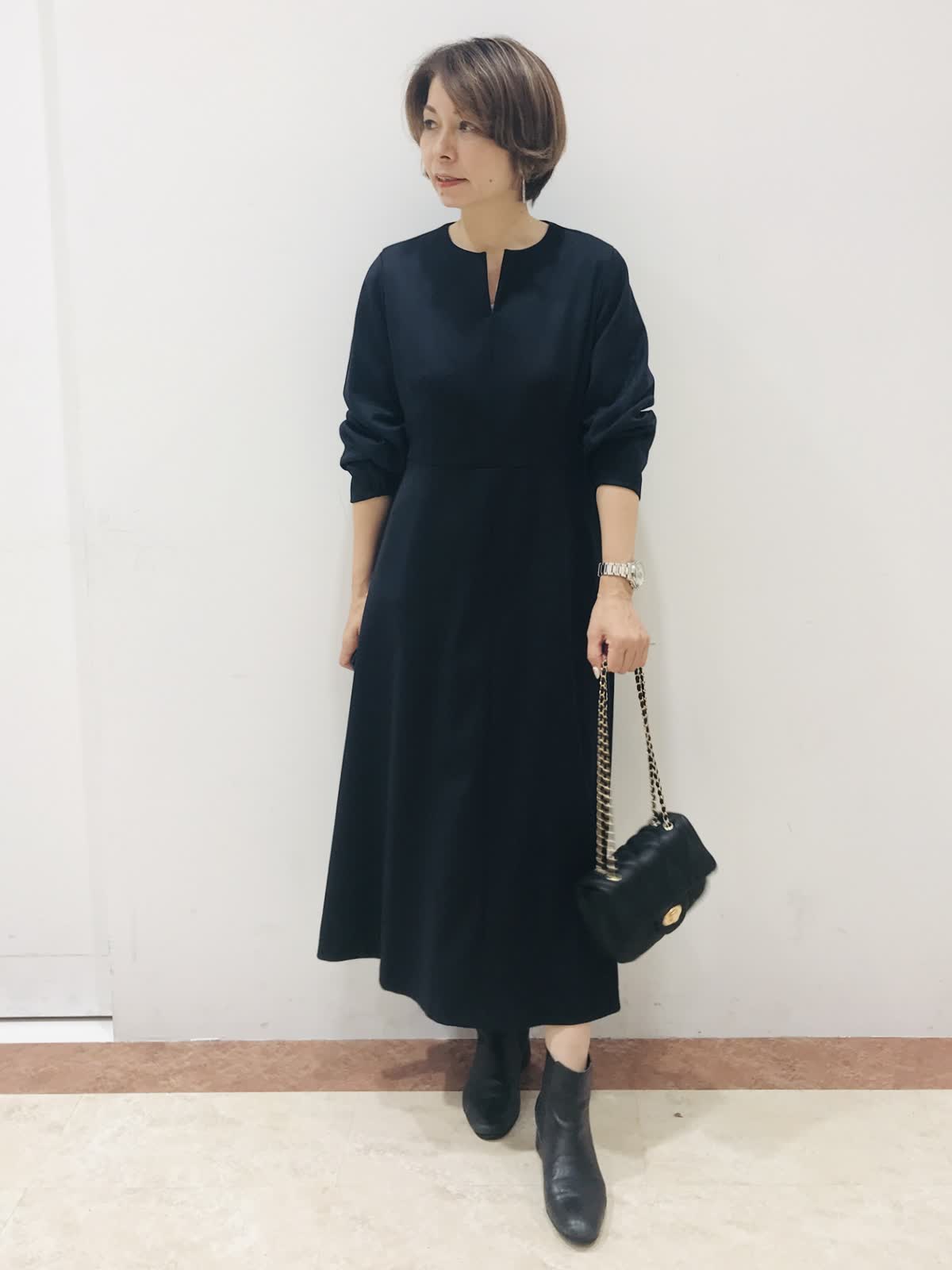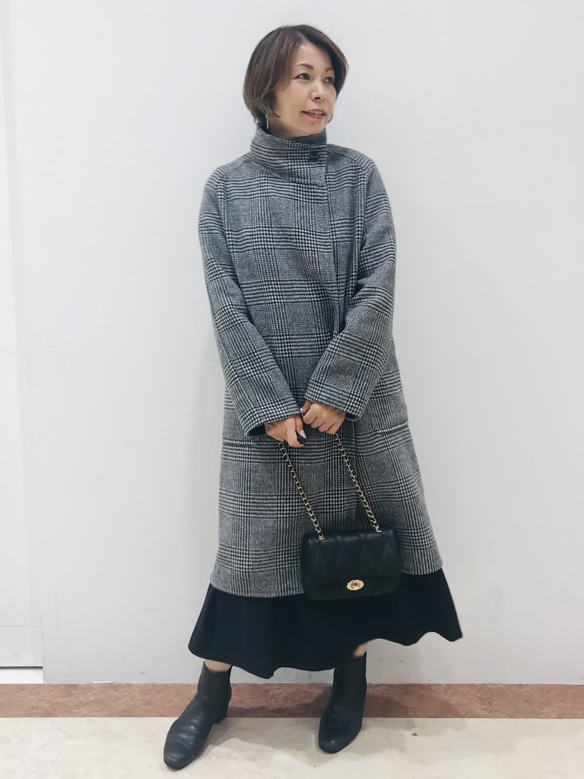 【着用カラー】コート:チャコールグレー ワンピース:ネイビー 忘年会コーデ
