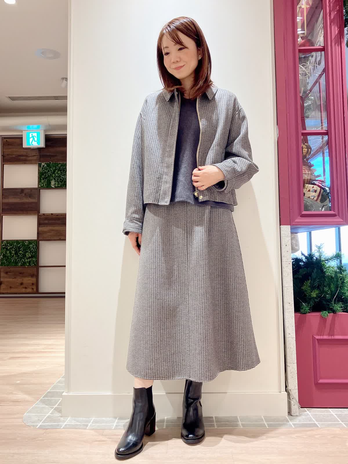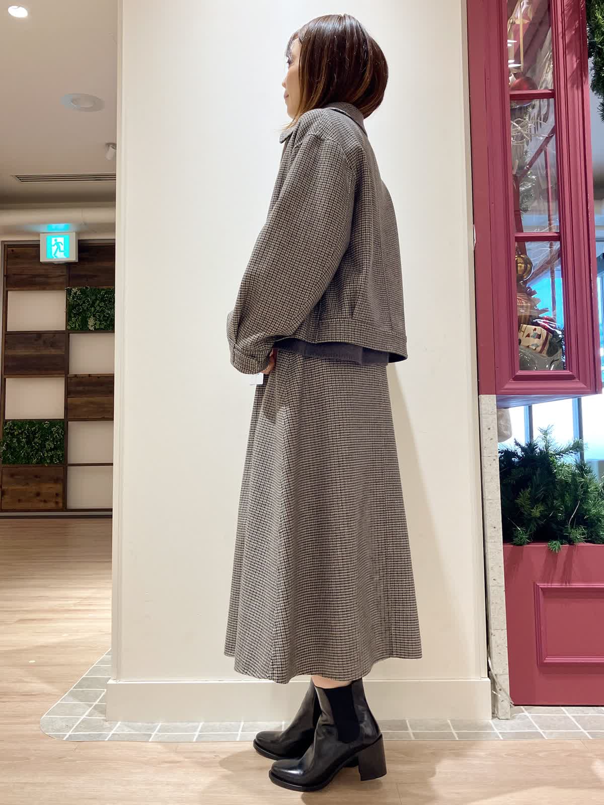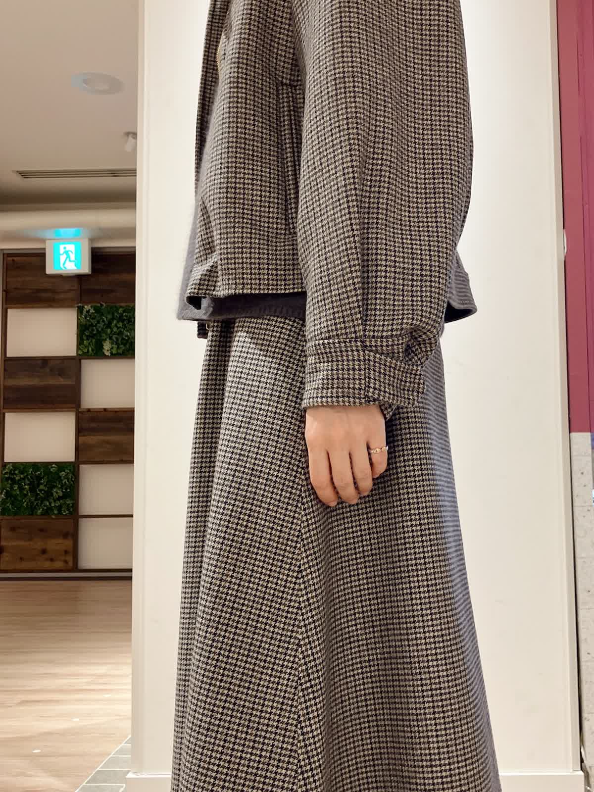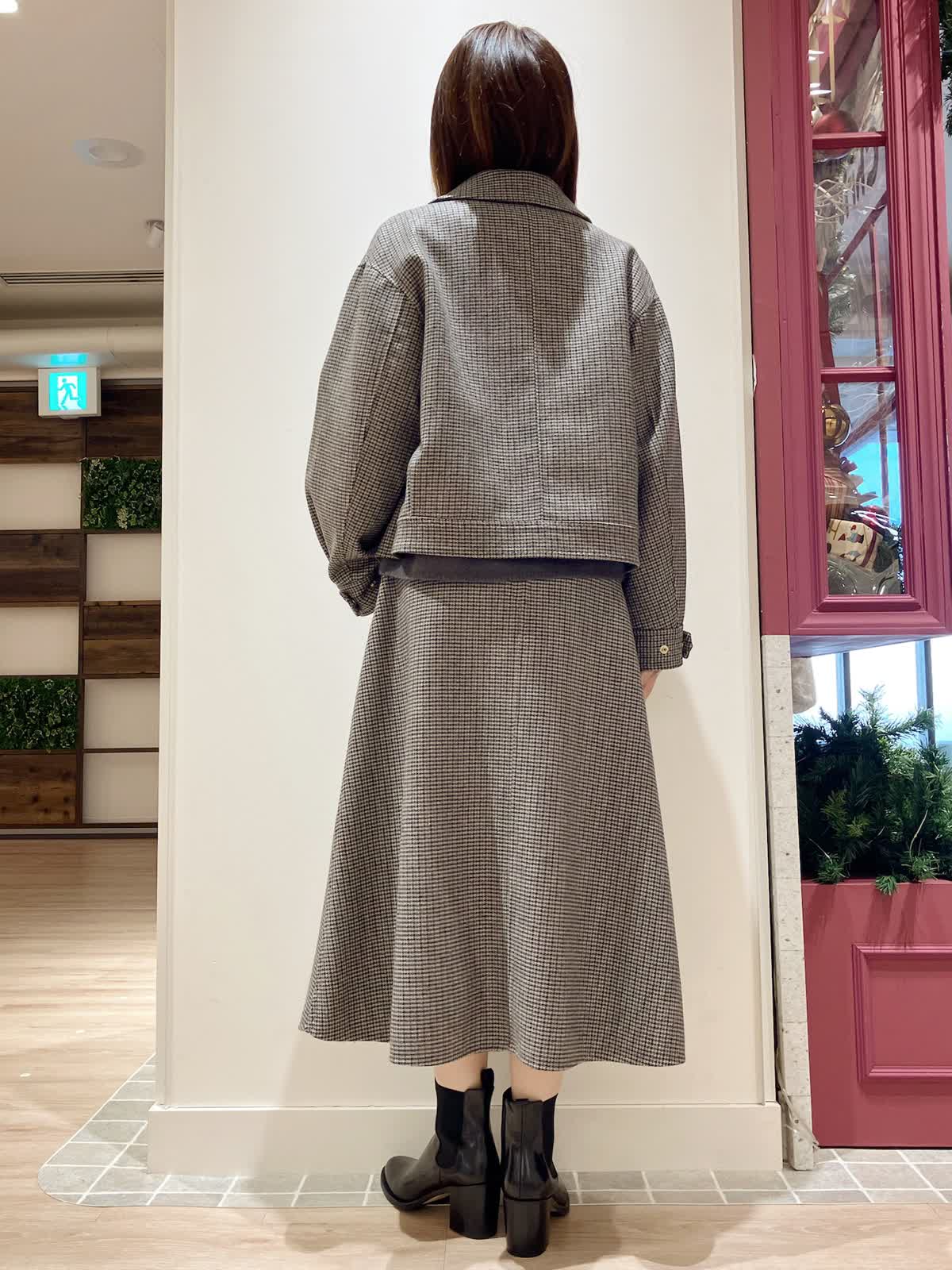 【着用サイズ】ジャケット:9号 ニット:9号 スカート:7号 【着用カラー】ジャケット:柄小 ニット:チャコールグレー スカート:柄小 コーディネートのテーマは忘年会スタイリングです。 スーツを少し着崩したセットアップコーデで、かしこまりすぎないけどきちんと感があるので、忘年会や新年会などのちょっとした会食におすすめ。スカートのフレア感もおしゃれで上品にまとまります。