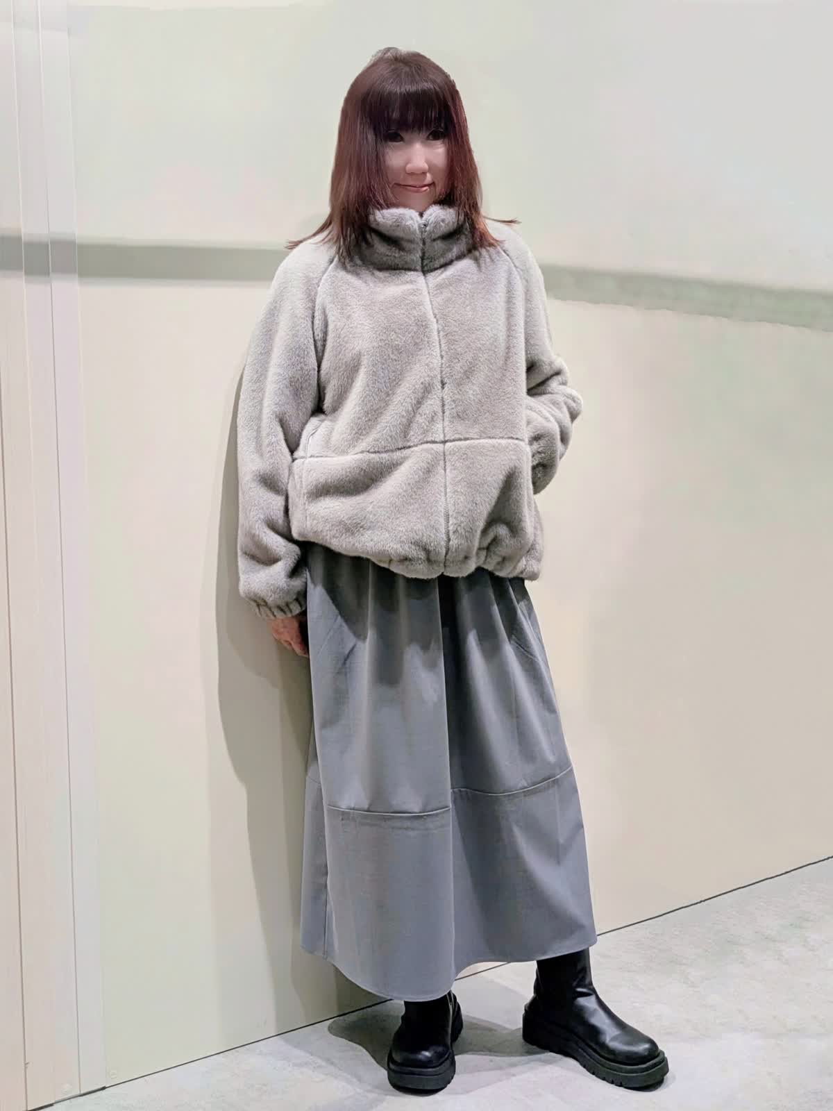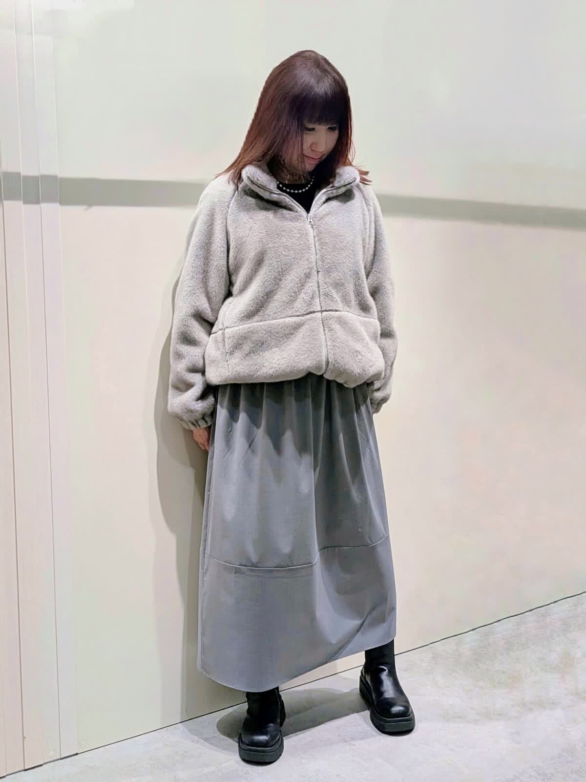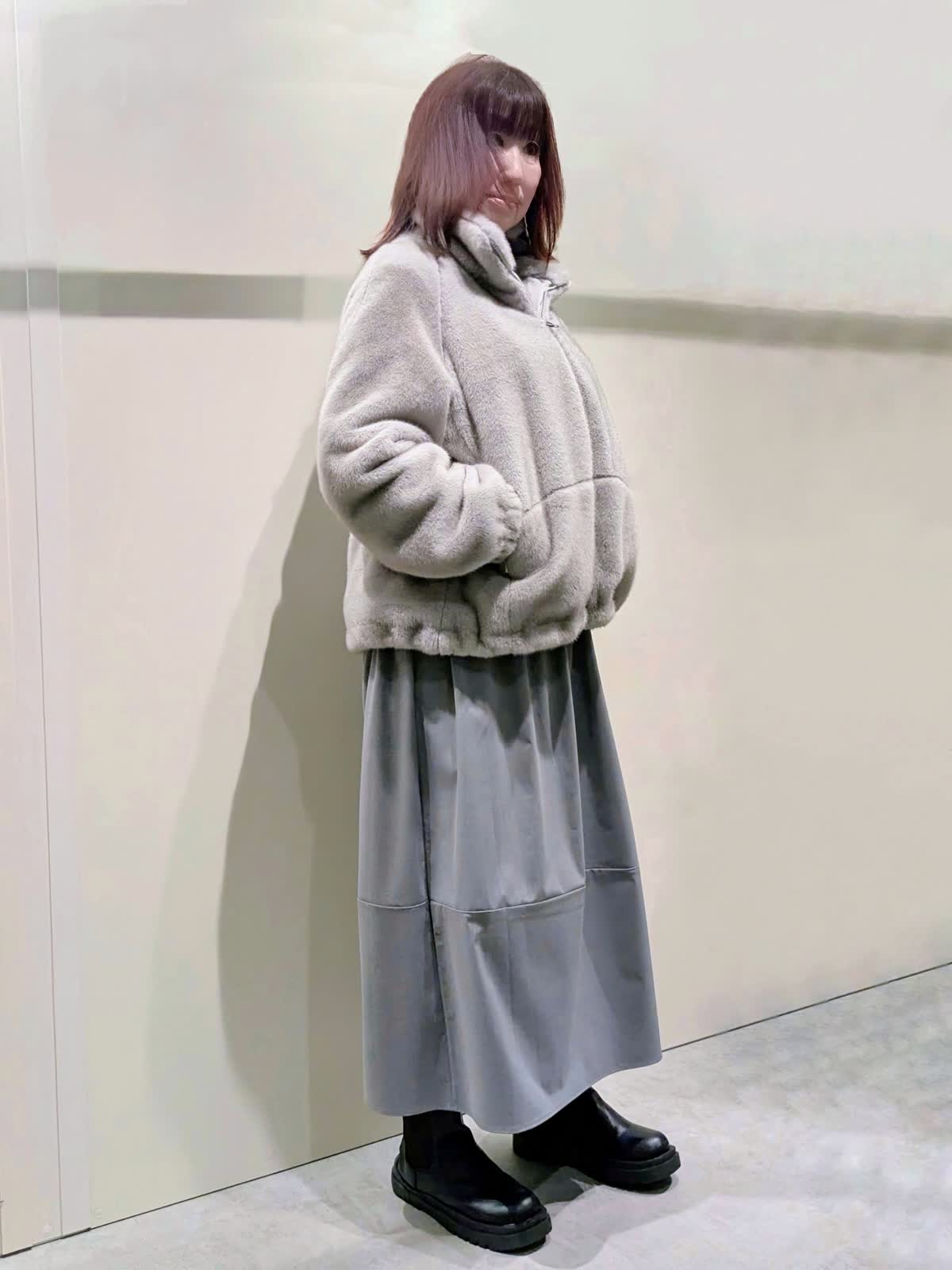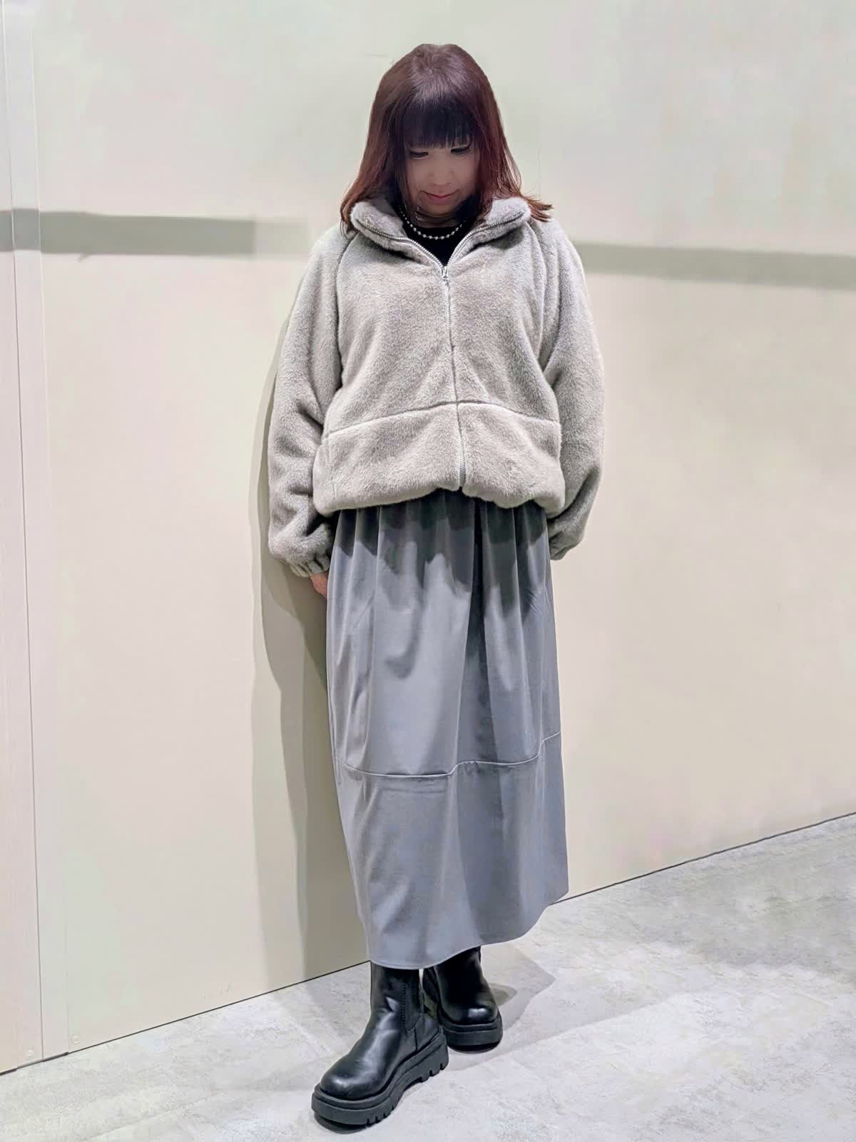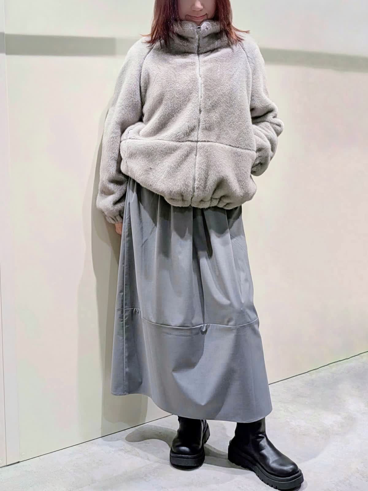 【着用サイズ】フェイクファーブルゾン:フリーサイズ ワンピース:9号【着用カラー】フェイクファーブルゾン、ワンピース:グレー 冬の楽ちんコーディネート 程良くゆとりのあるスタンドカラーのフェイクファーブルゾンは、裾のドロスト仕様でシルエットの変化を楽しんで頂けます。袖口はゴムギャザー仕様でボリューム感が可愛いぃです。ボトムを選ばず着映えするアイテムです。異素材のコンビネーションワンピースは、ふんわりと立体感のあるコクーンシルエットで、ストレスフリーな着心地です。