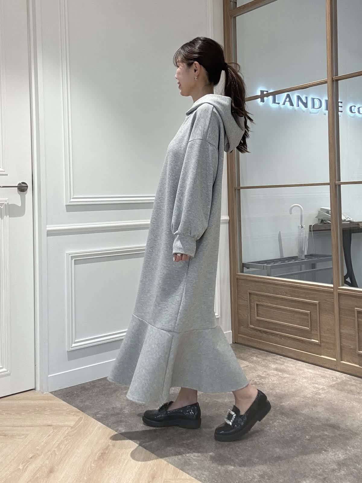 【着用アイテム】 ワンピース7号 去年も大人気だったパーカーワンピース。 身体のラインを拾わないのでリラックスして過ごしたい日にピッタリです。 一枚ではもちろん、インナーにタートルを重ねてもおしゃれに着ていただけます。